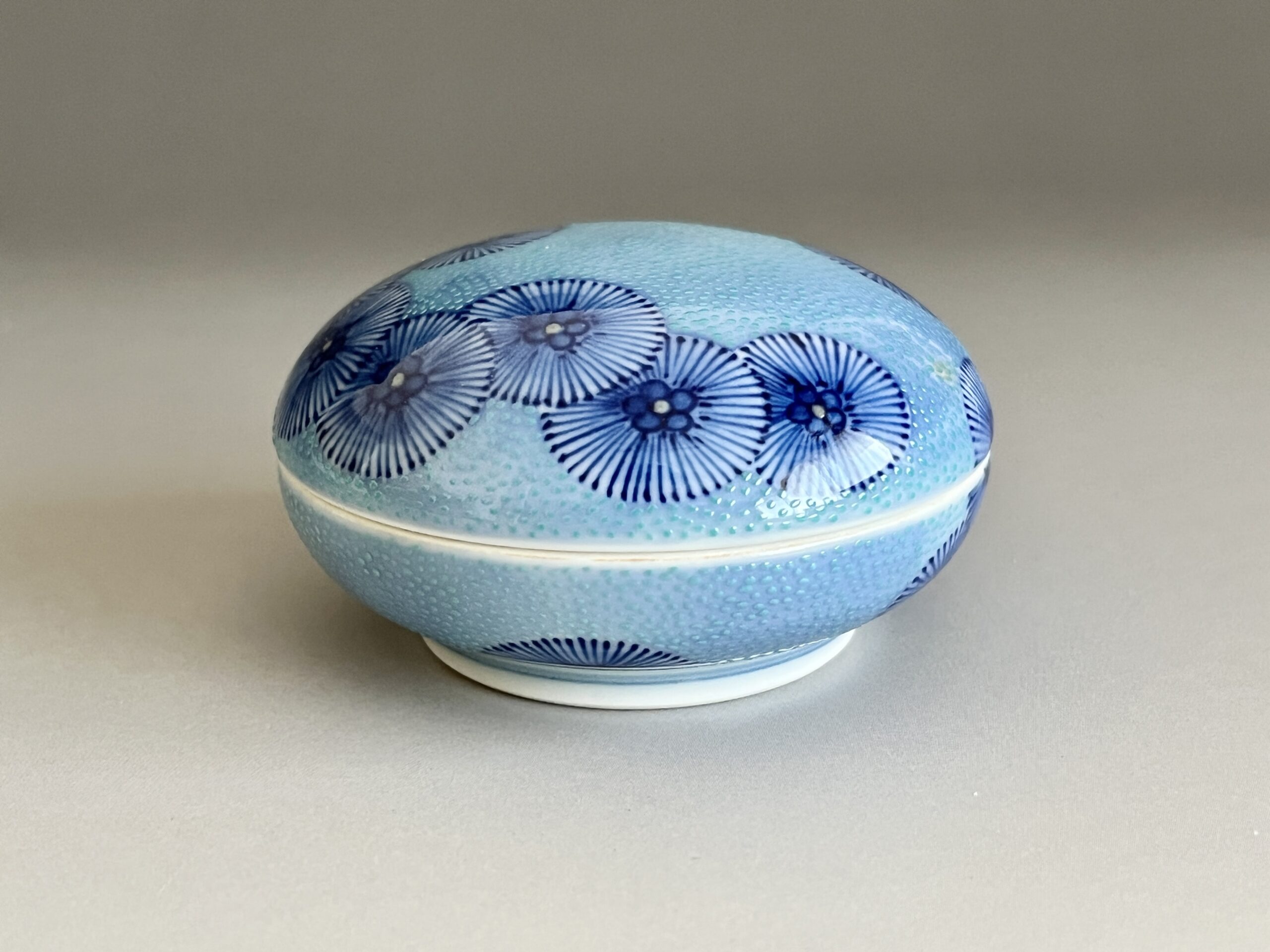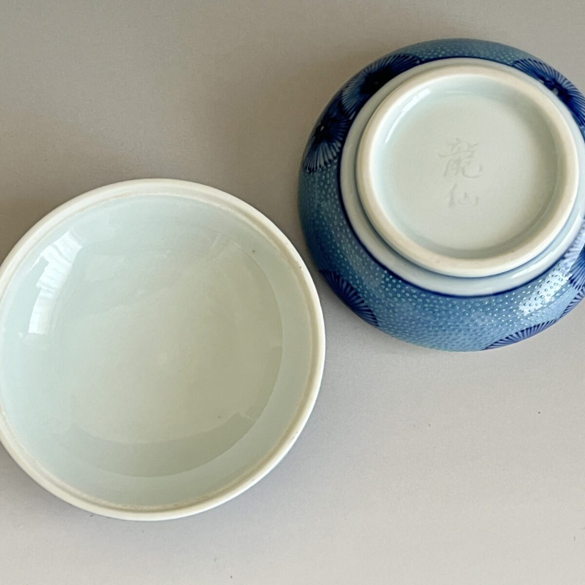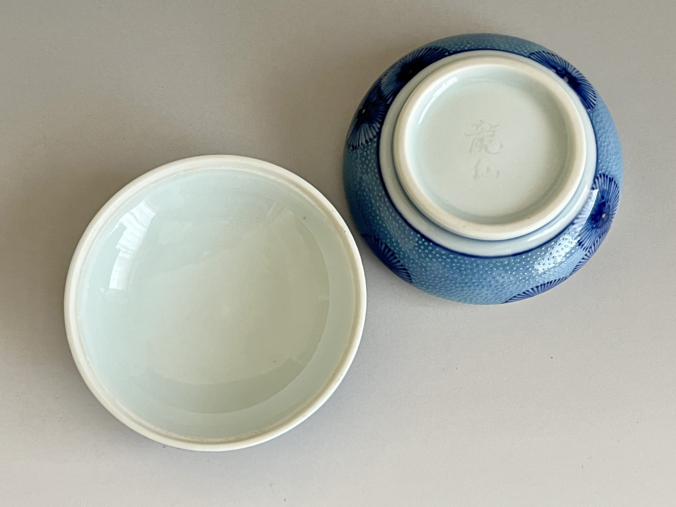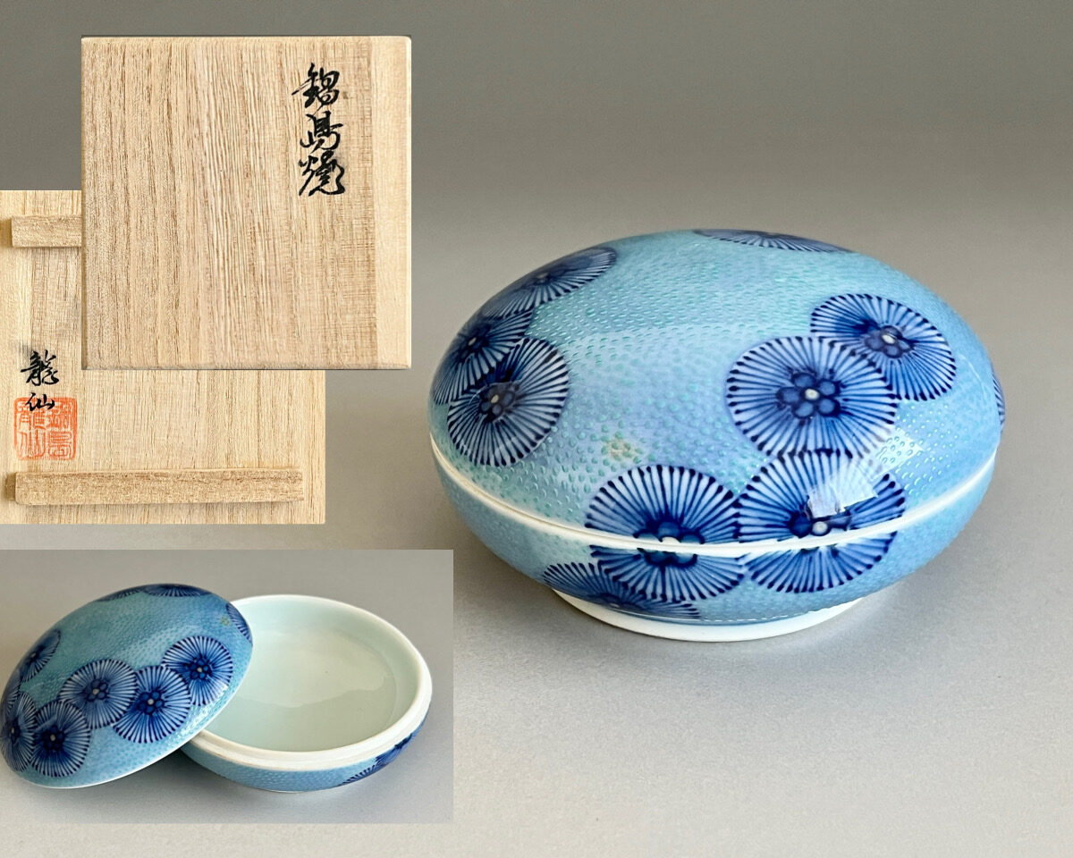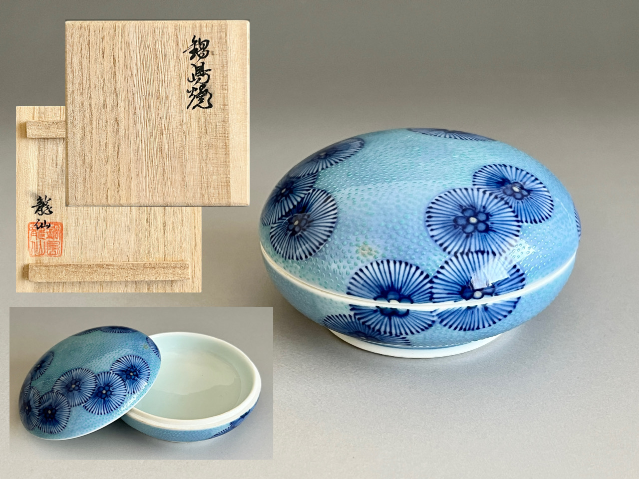市川龍仙 (龍男) 鍋島焼 菊花紋 香合 蓋物 茶道具の陶印