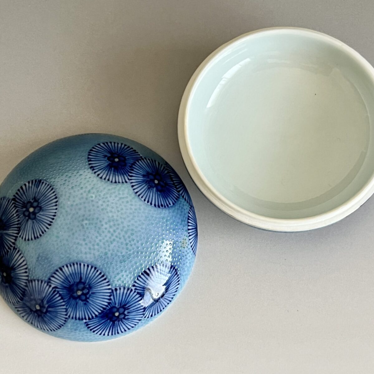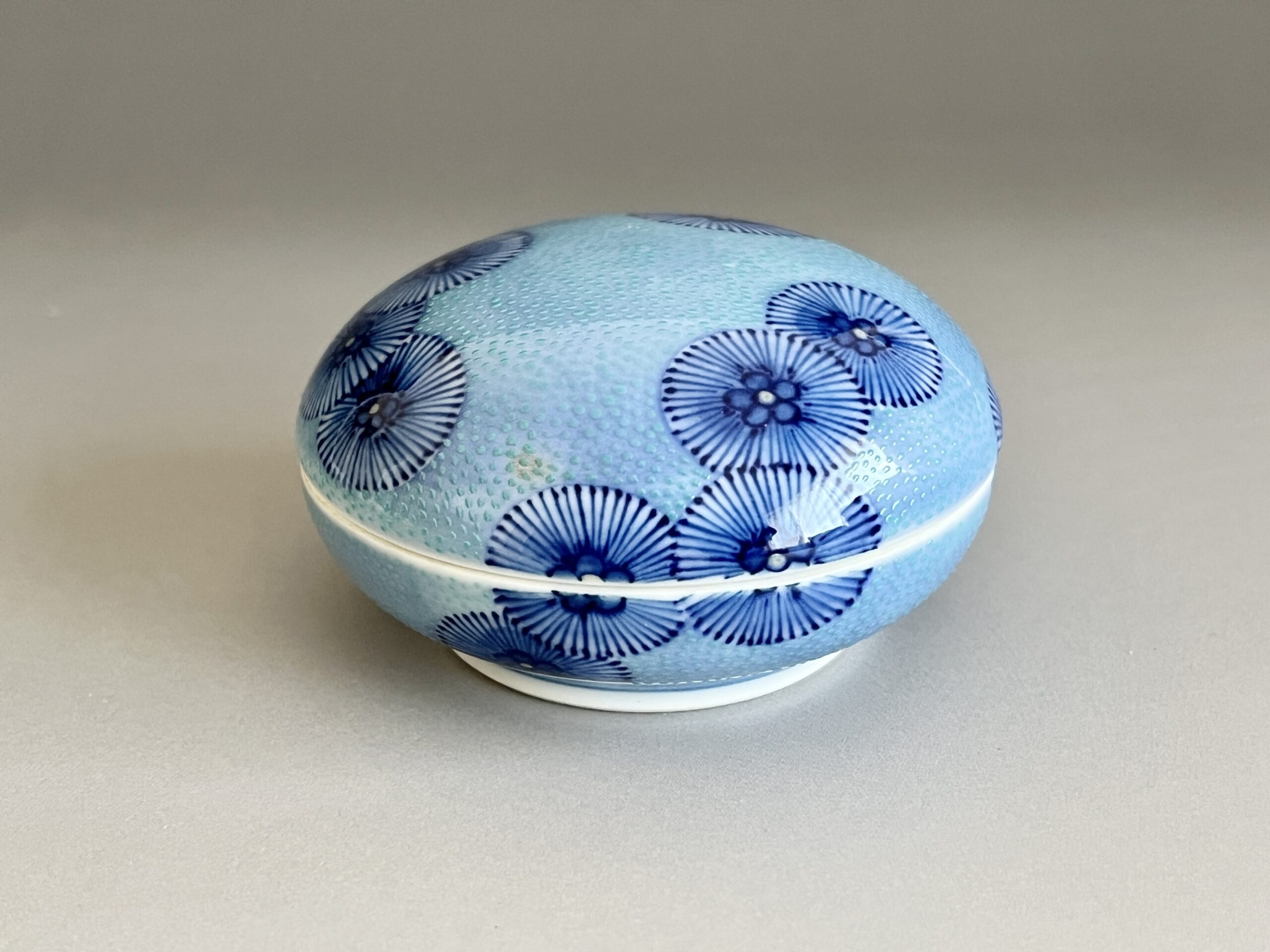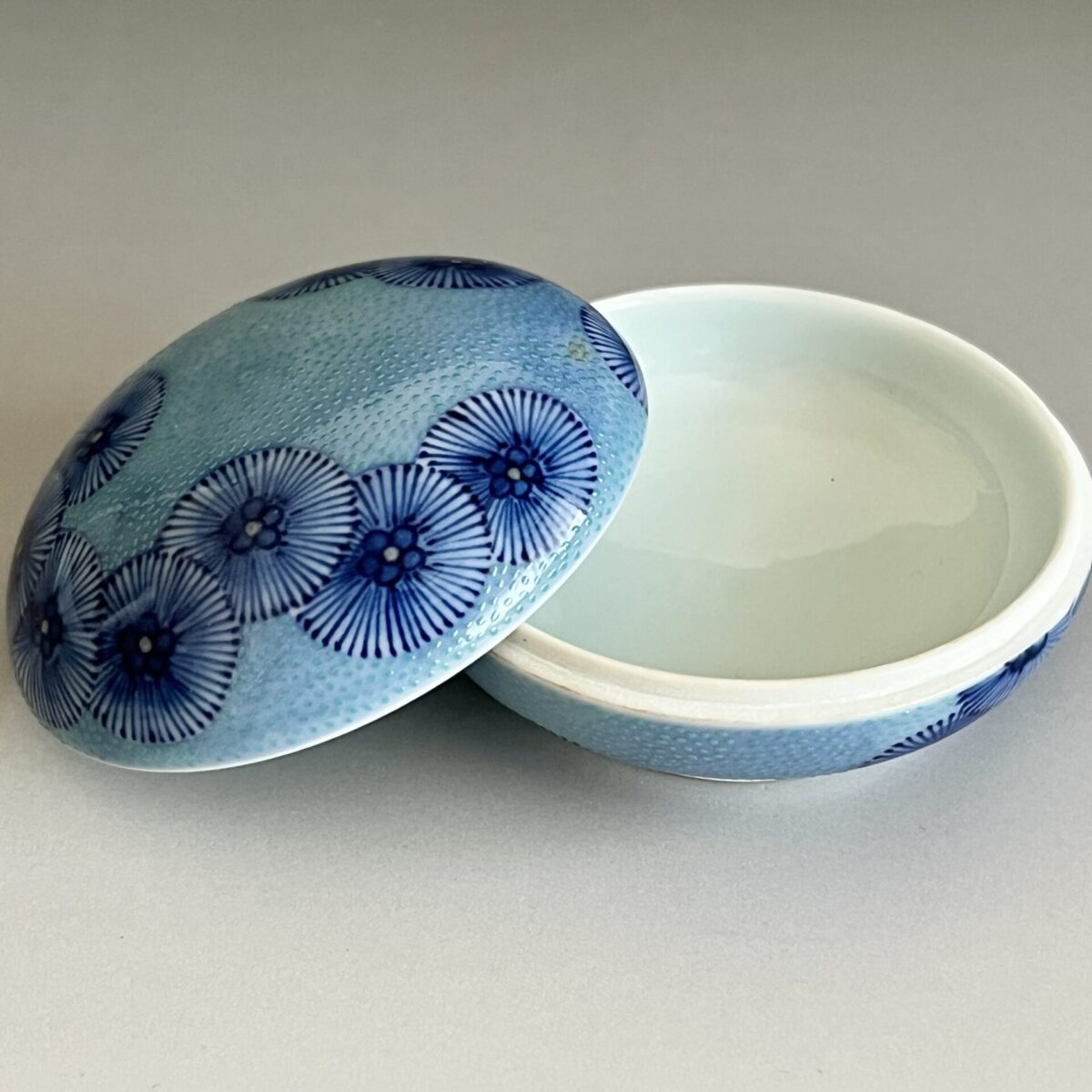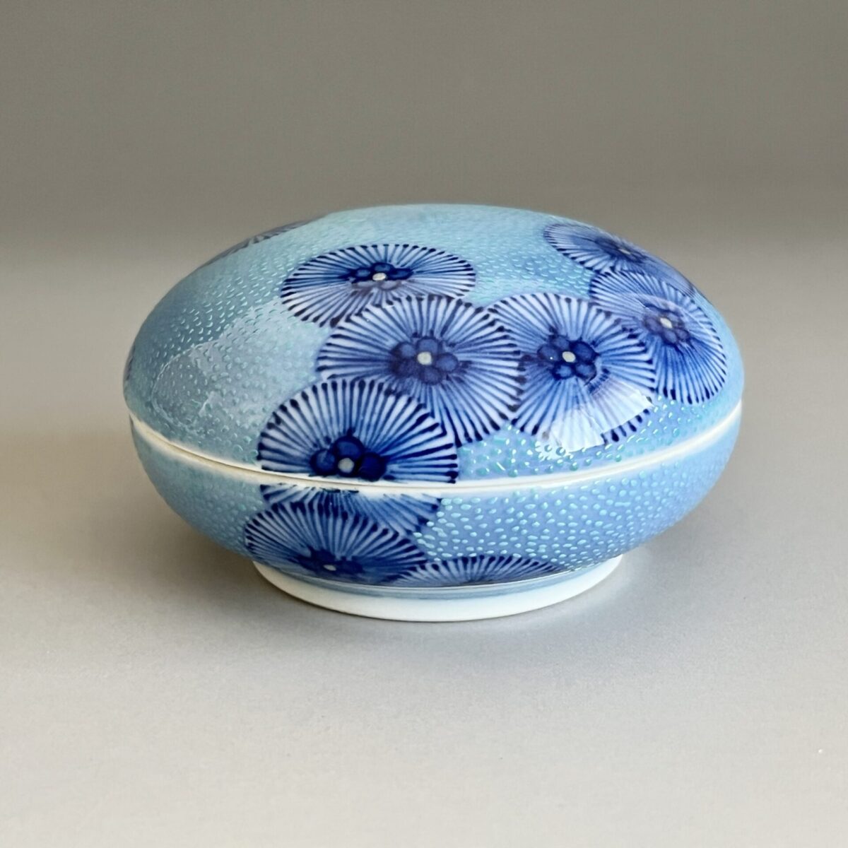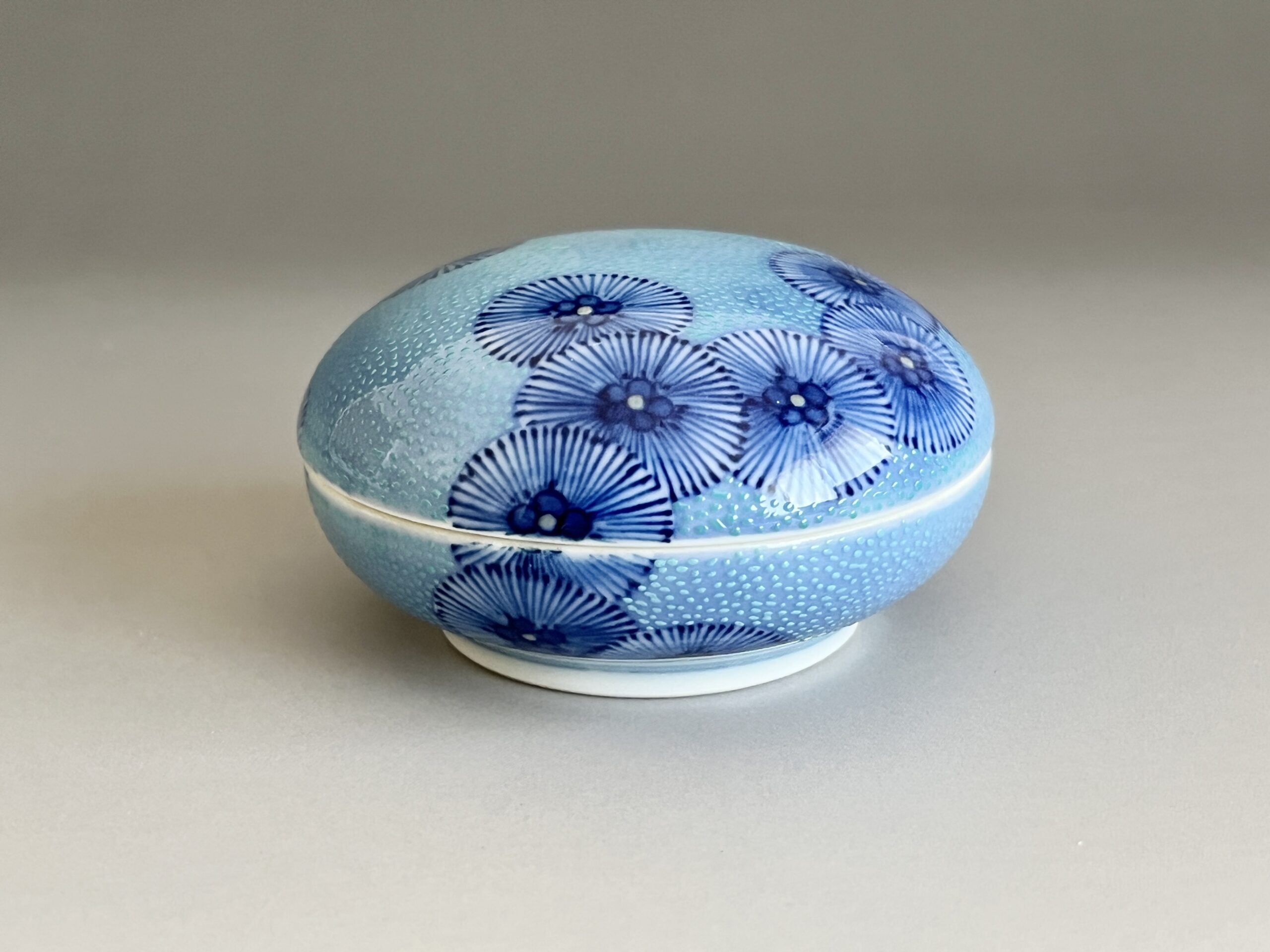 市川龍仙 (龍男) 鍋島焼 菊花紋 香合 蓋物 茶道具の陶印