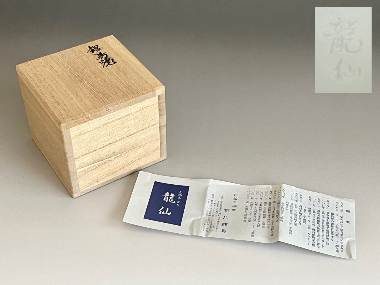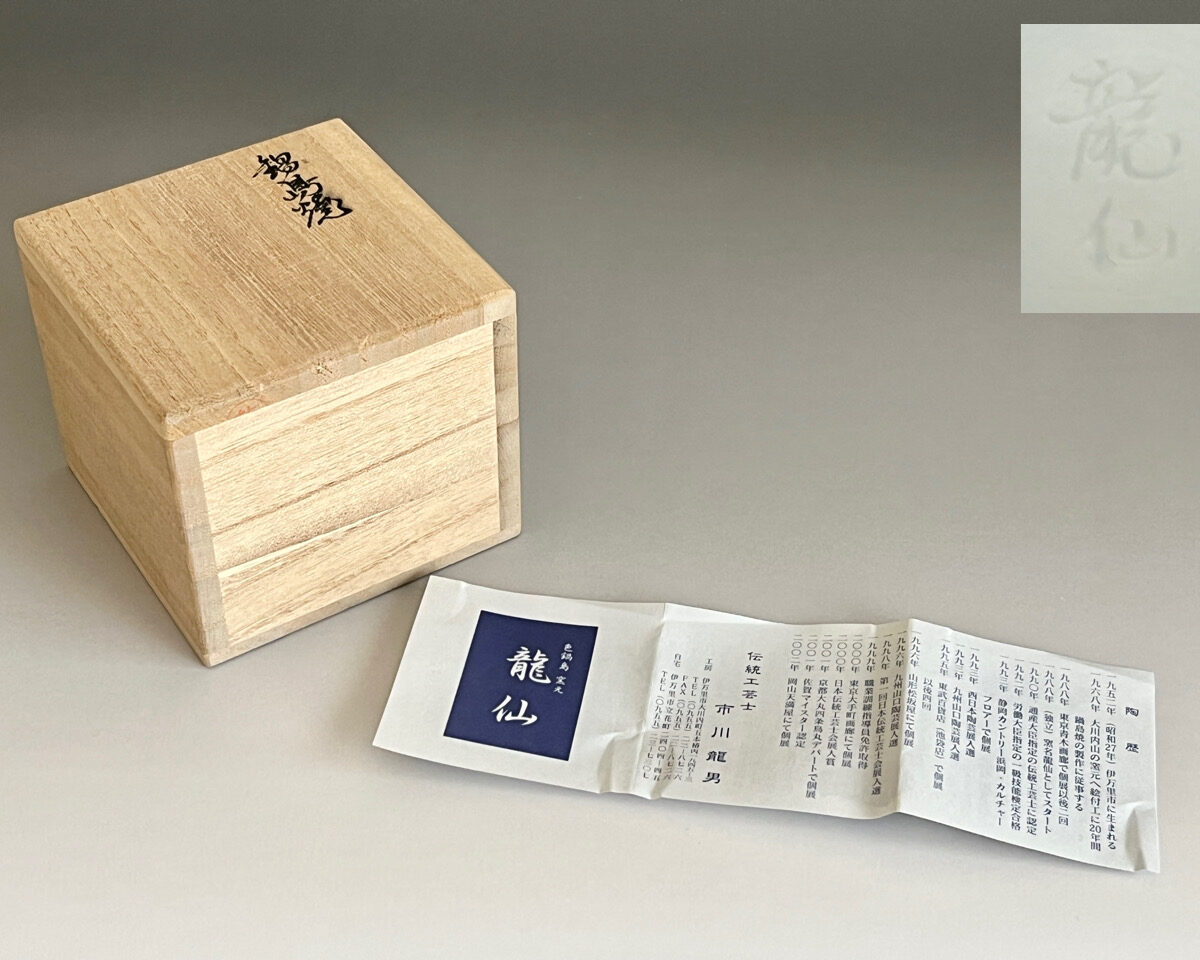 市川龍仙 (龍男) 鍋島焼 菊花紋 香合 蓋物 茶道具の落款