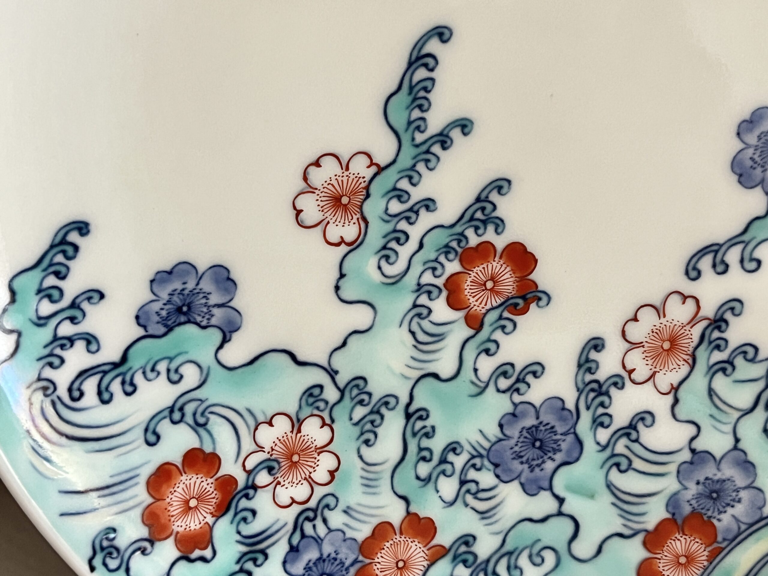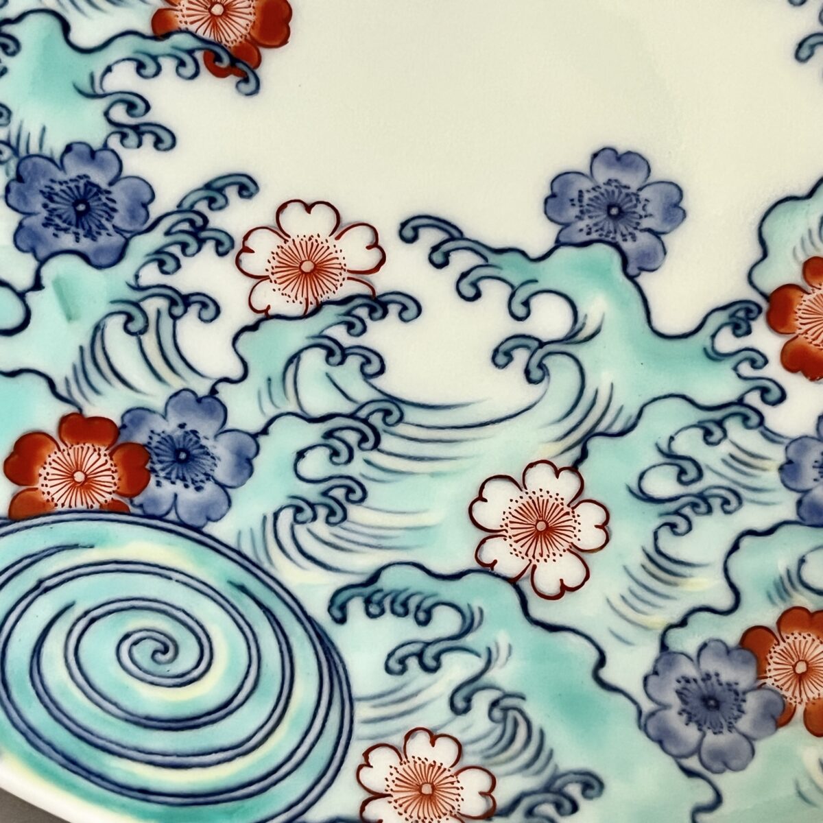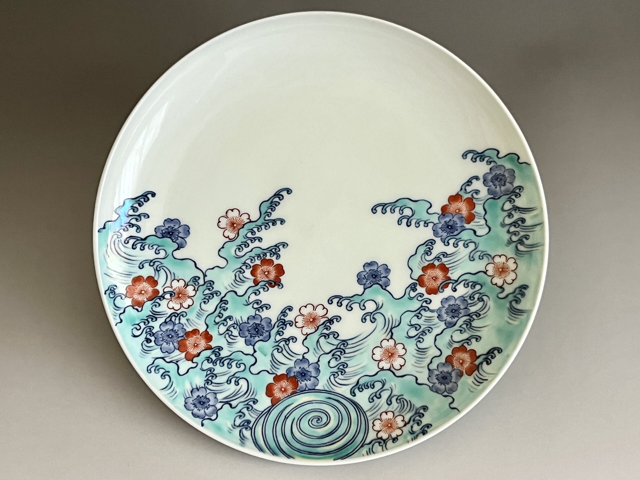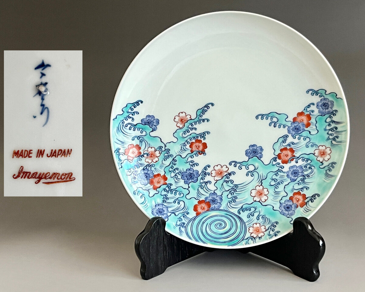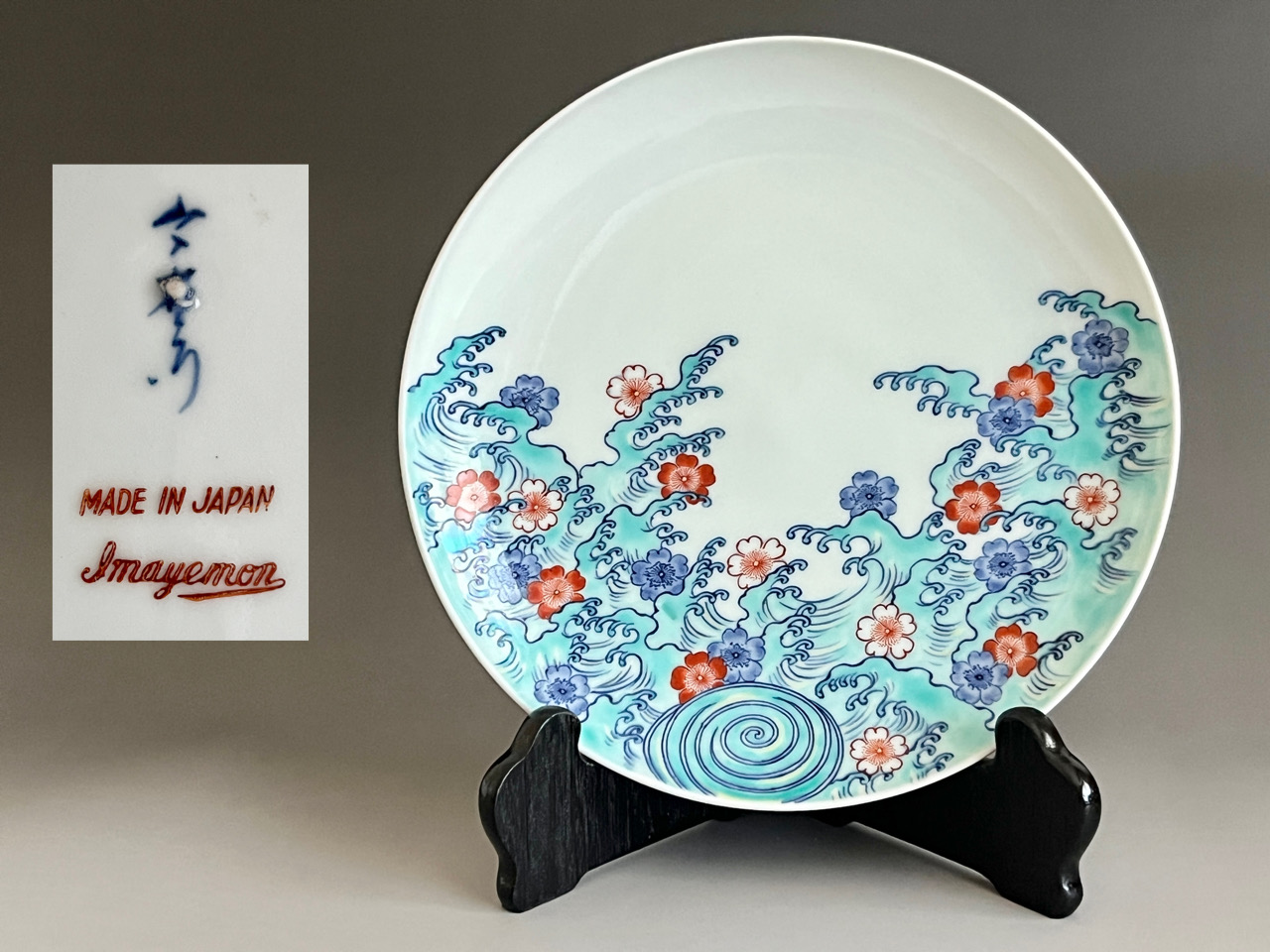 ⚫︎ 明治 大正期 肥前有田 十代 今泉今右衛門 渦波絵皿 胴径22.0㎝ 飾り皿 輸出品 里帰り品の陶印