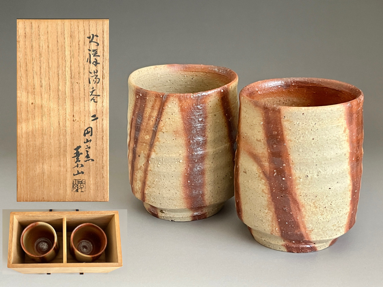 岡山県の備前焼 金重素山 氏の作品です 一客、口縁に窯傷がございます その他特筆すべき目立つ割れ、カケ、傷はございません