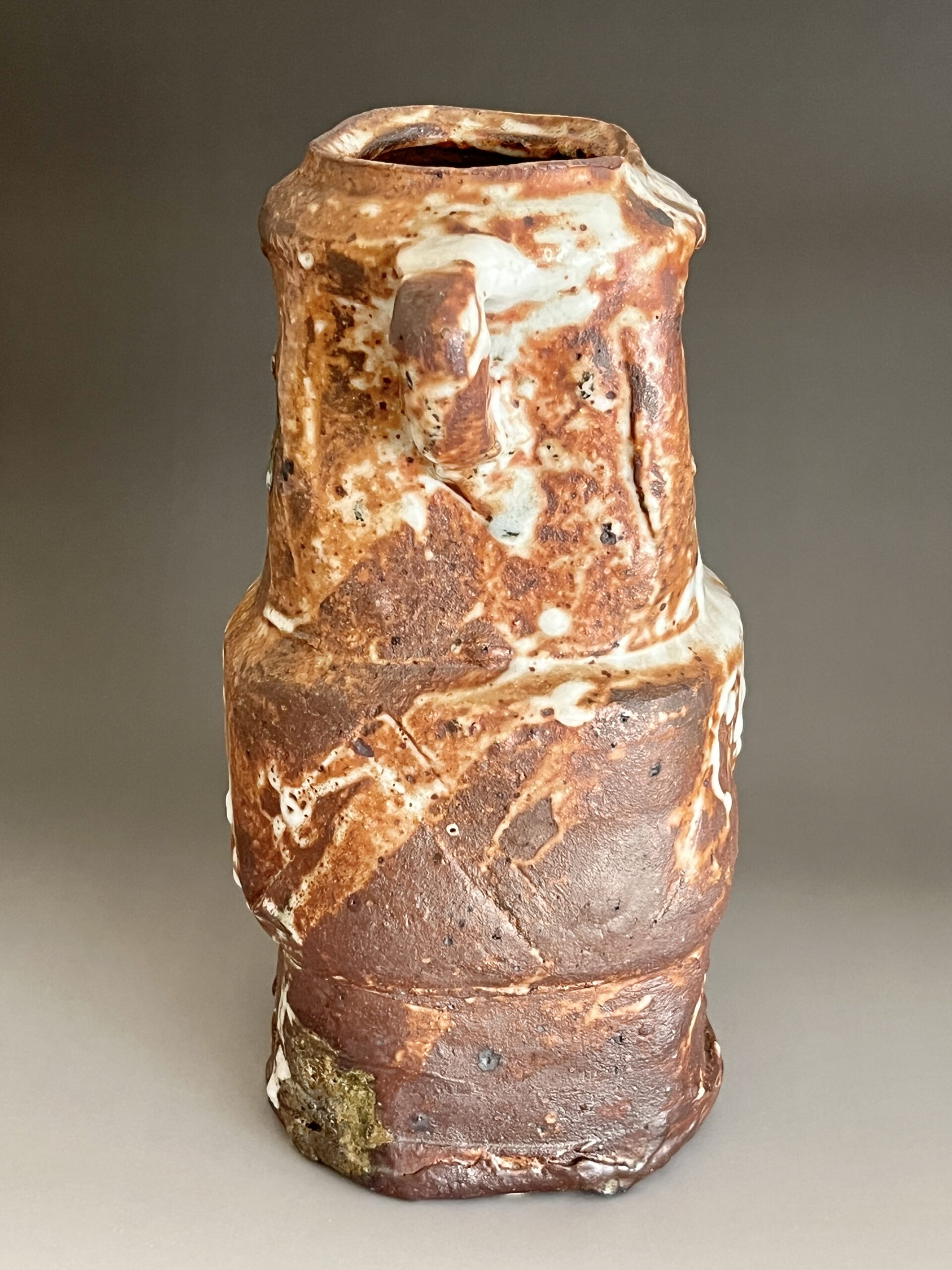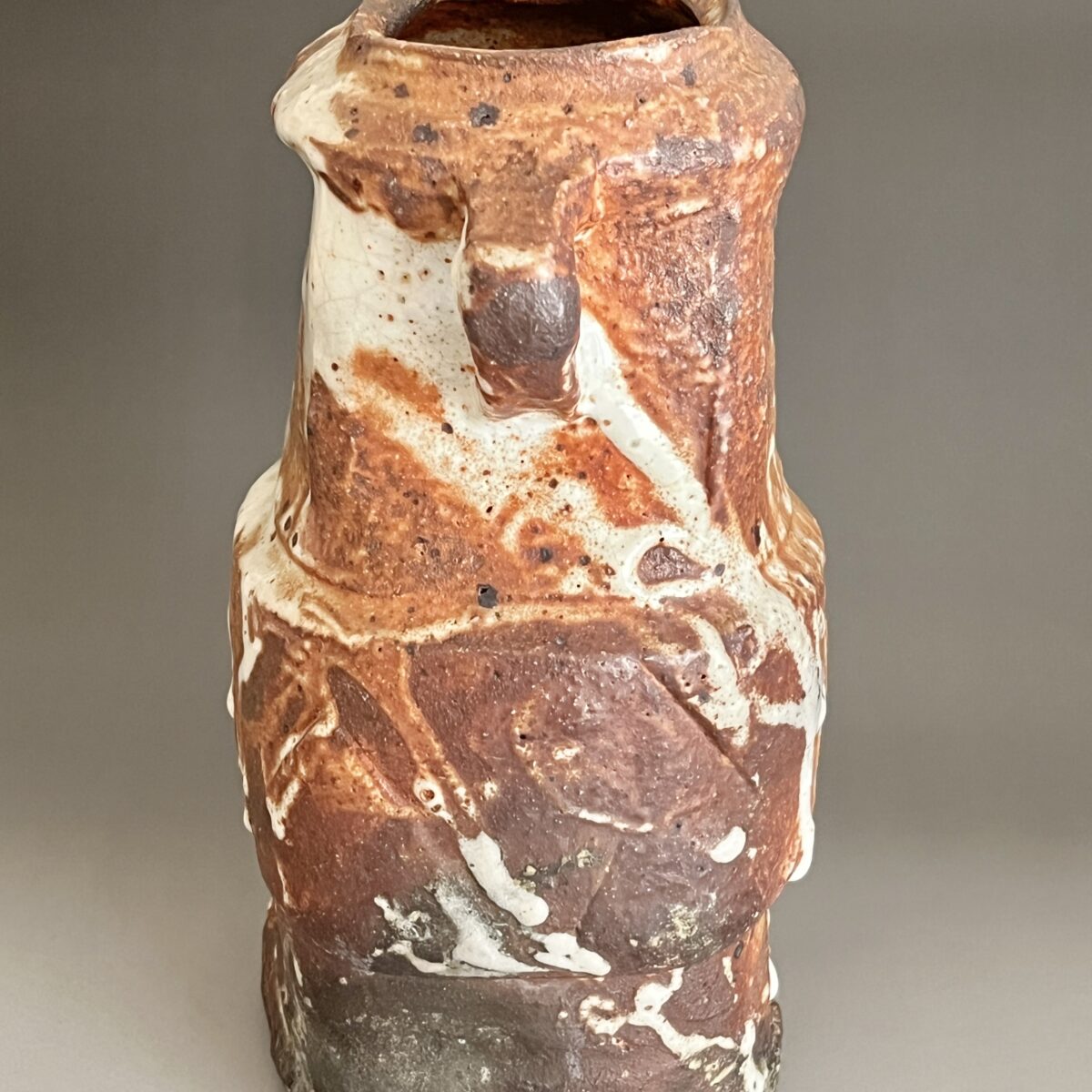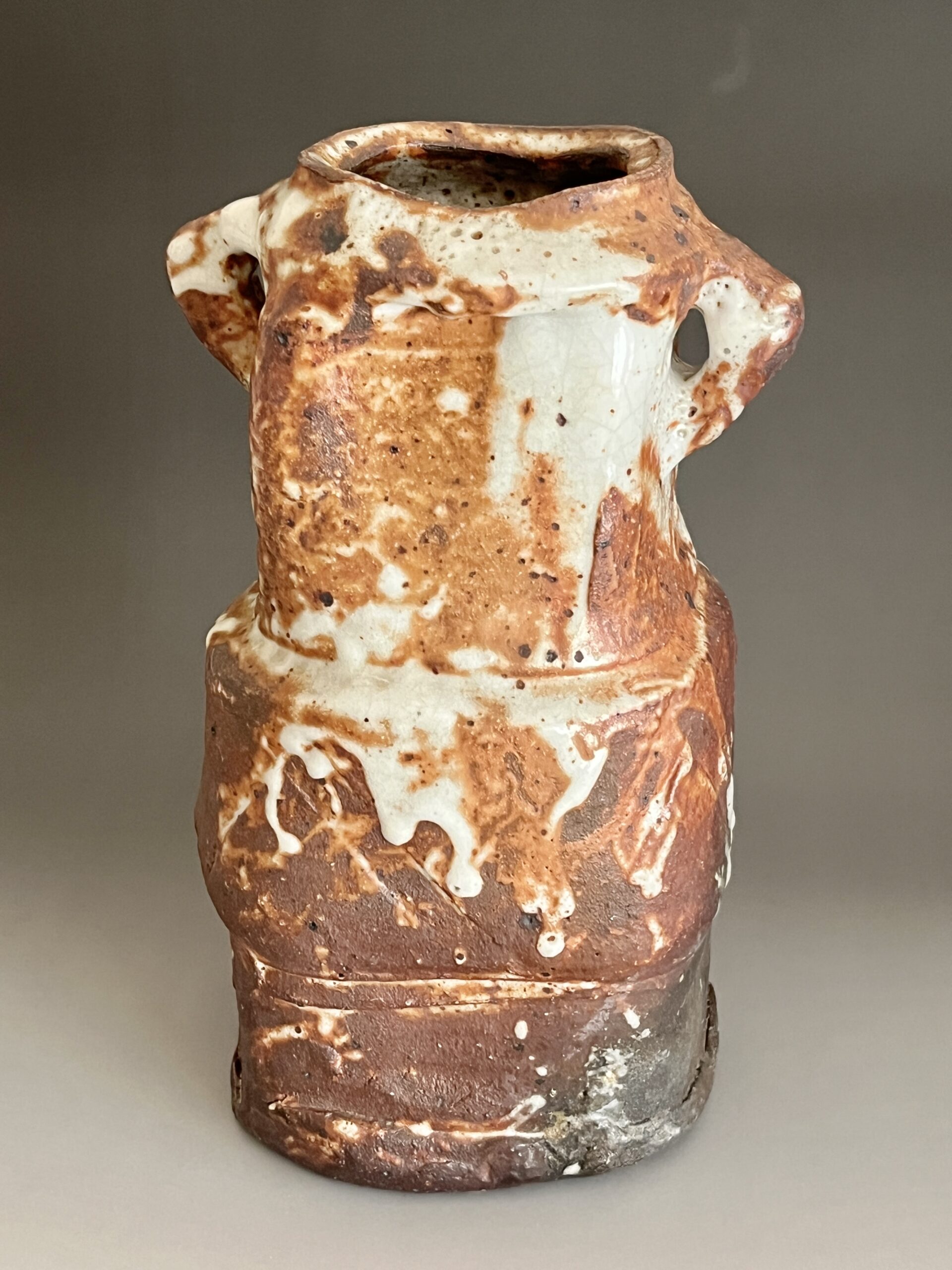 ★ 坪島土平 (師 川喜田半泥子) 廣永窯 わび志野花入耳付き 高さ25.0㎝ 百貨店出展作 花瓶 花器 茶道具の陶印