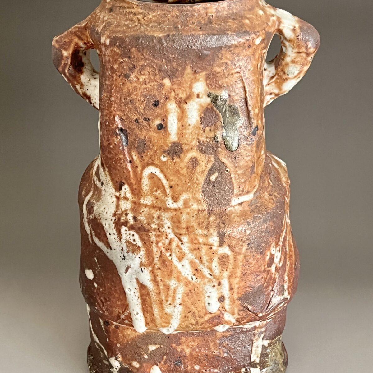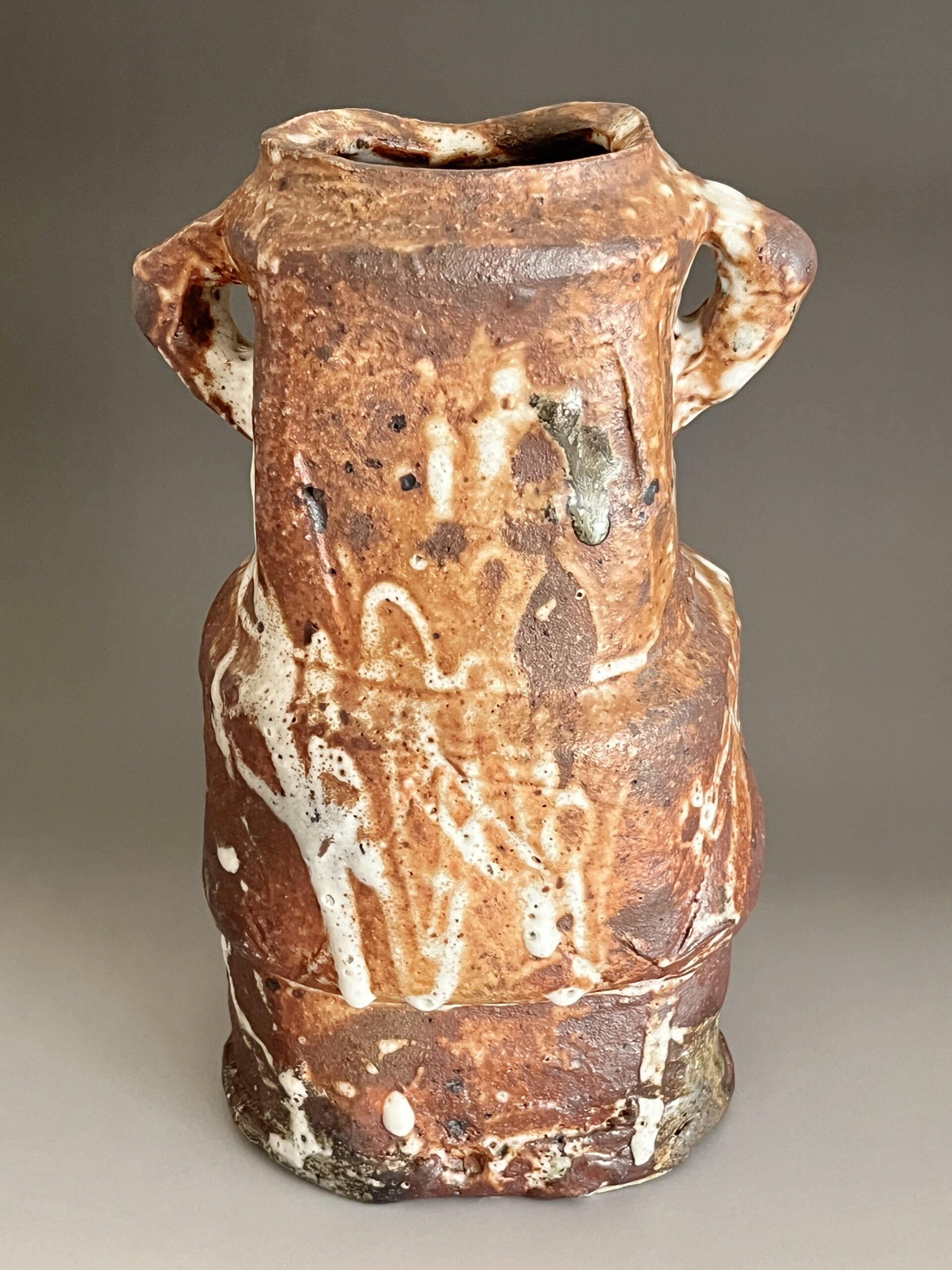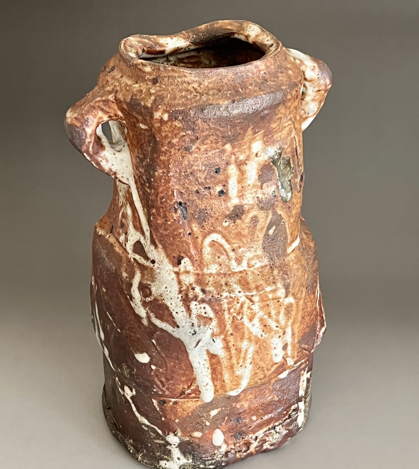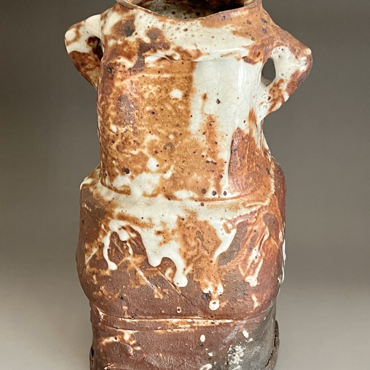 ★ 坪島土平 (師 川喜田半泥子) 廣永窯 わび志野花入耳付き 高さ25.0㎝ 百貨店出展作 花瓶 花器 茶道具の陶印
