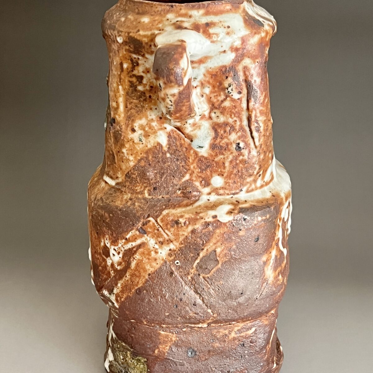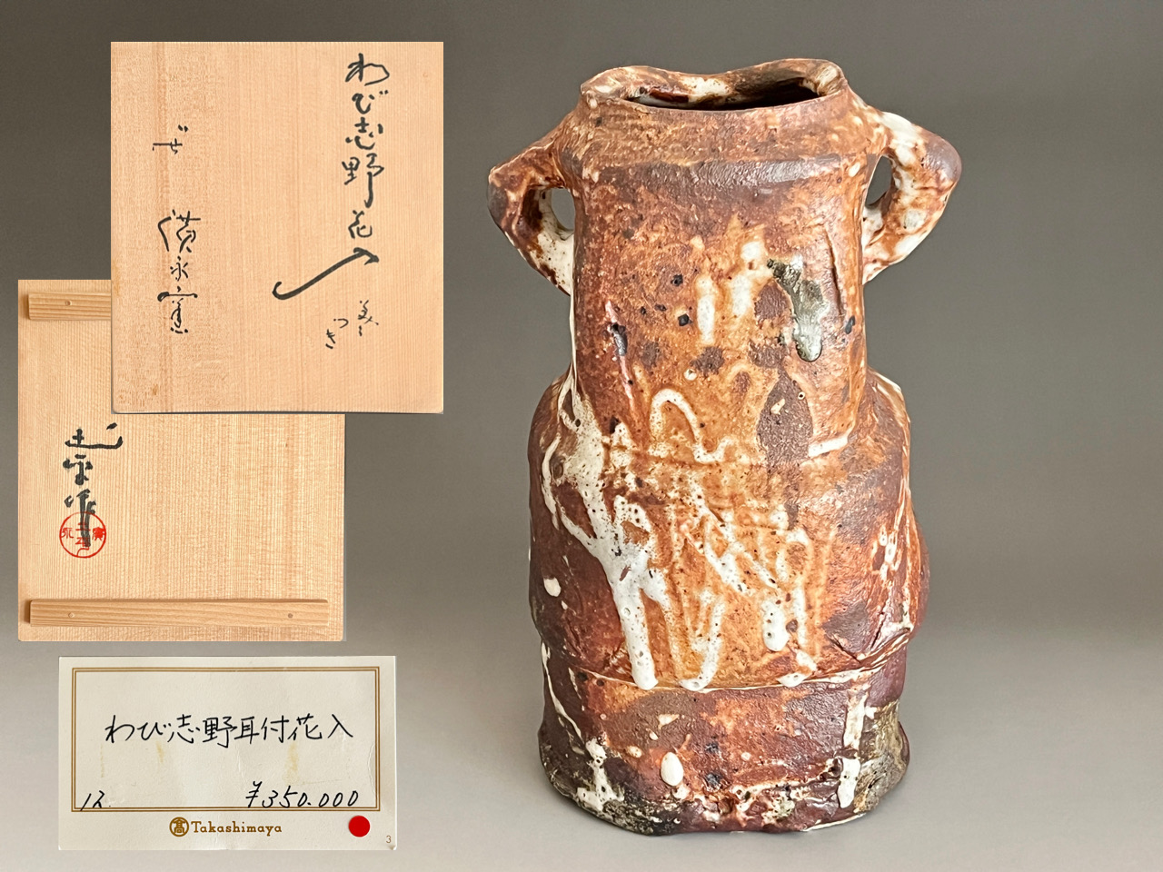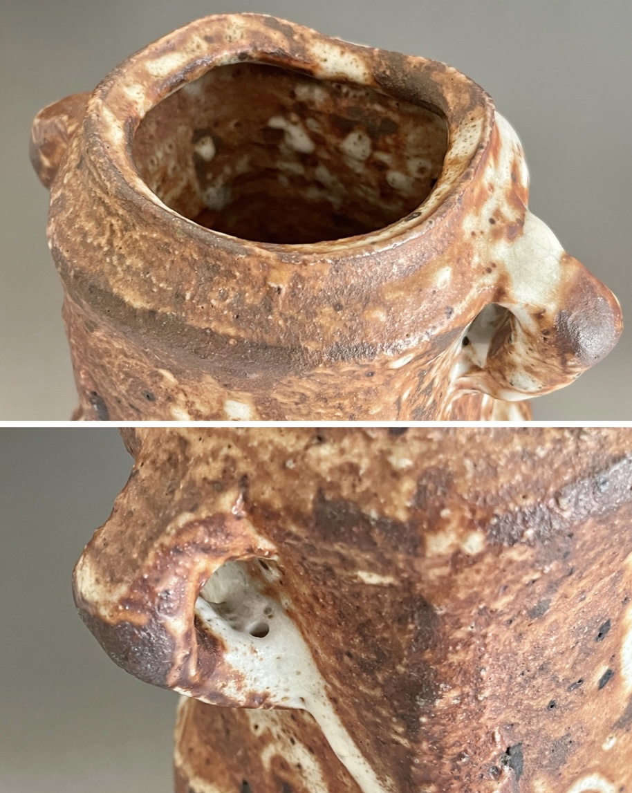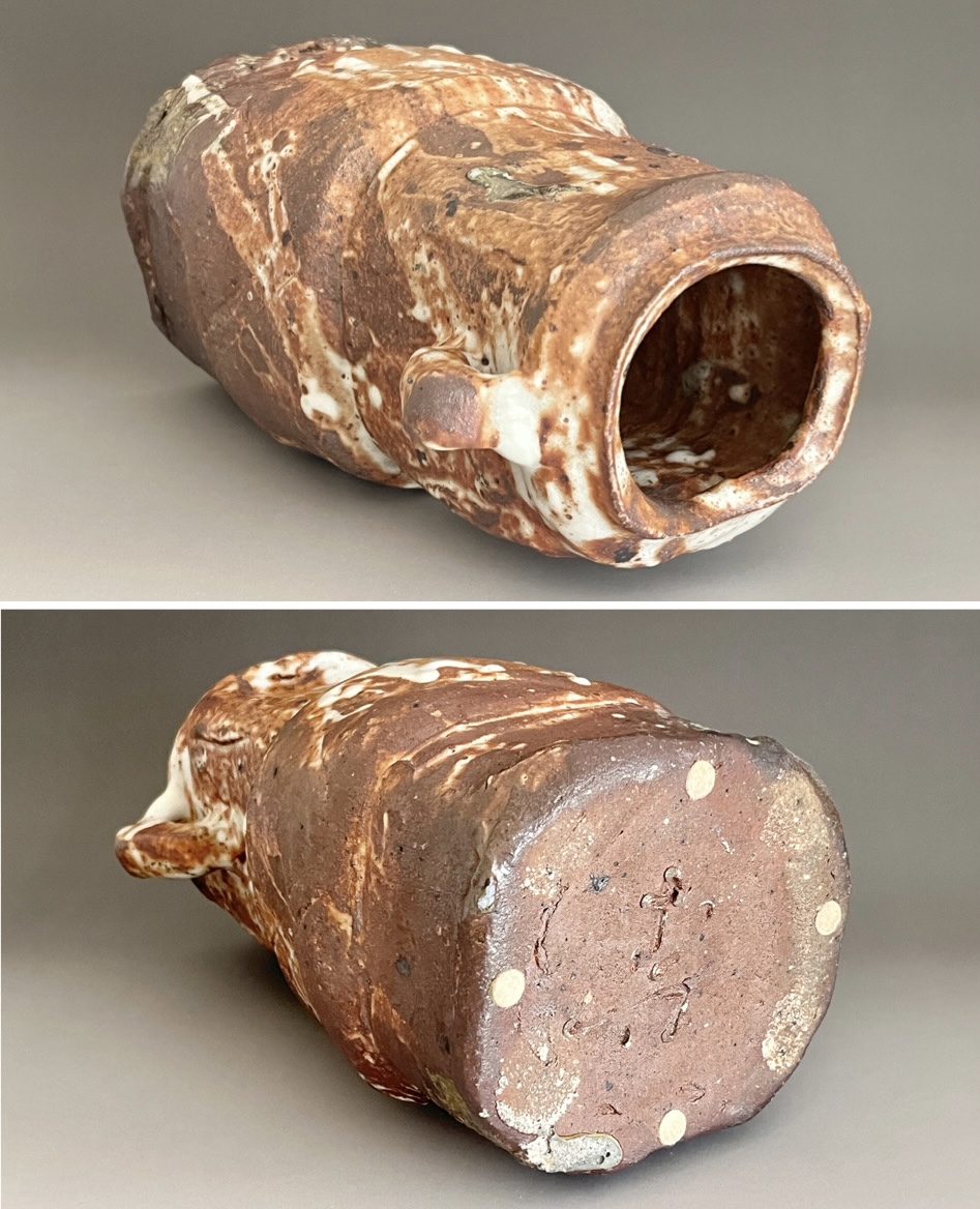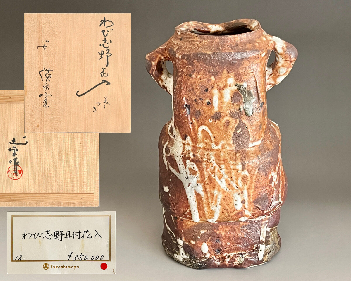 ★ 坪島土平 (師 川喜田半泥子) 廣永窯 わび志野花入耳付き 高さ25.0㎝ 百貨店出展作 花瓶 花器 茶道具の落款
