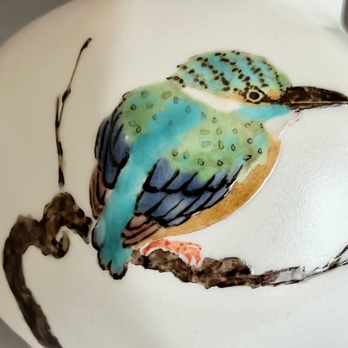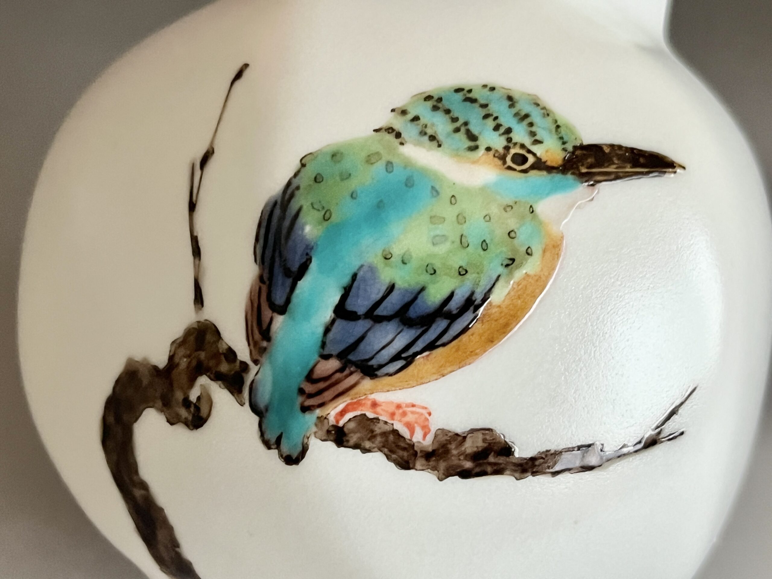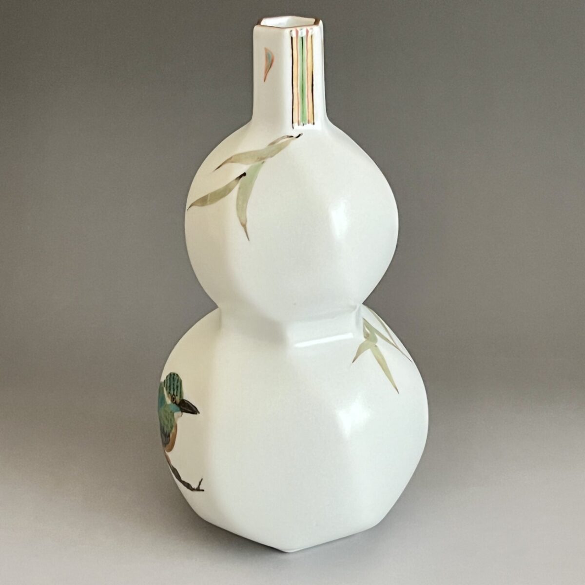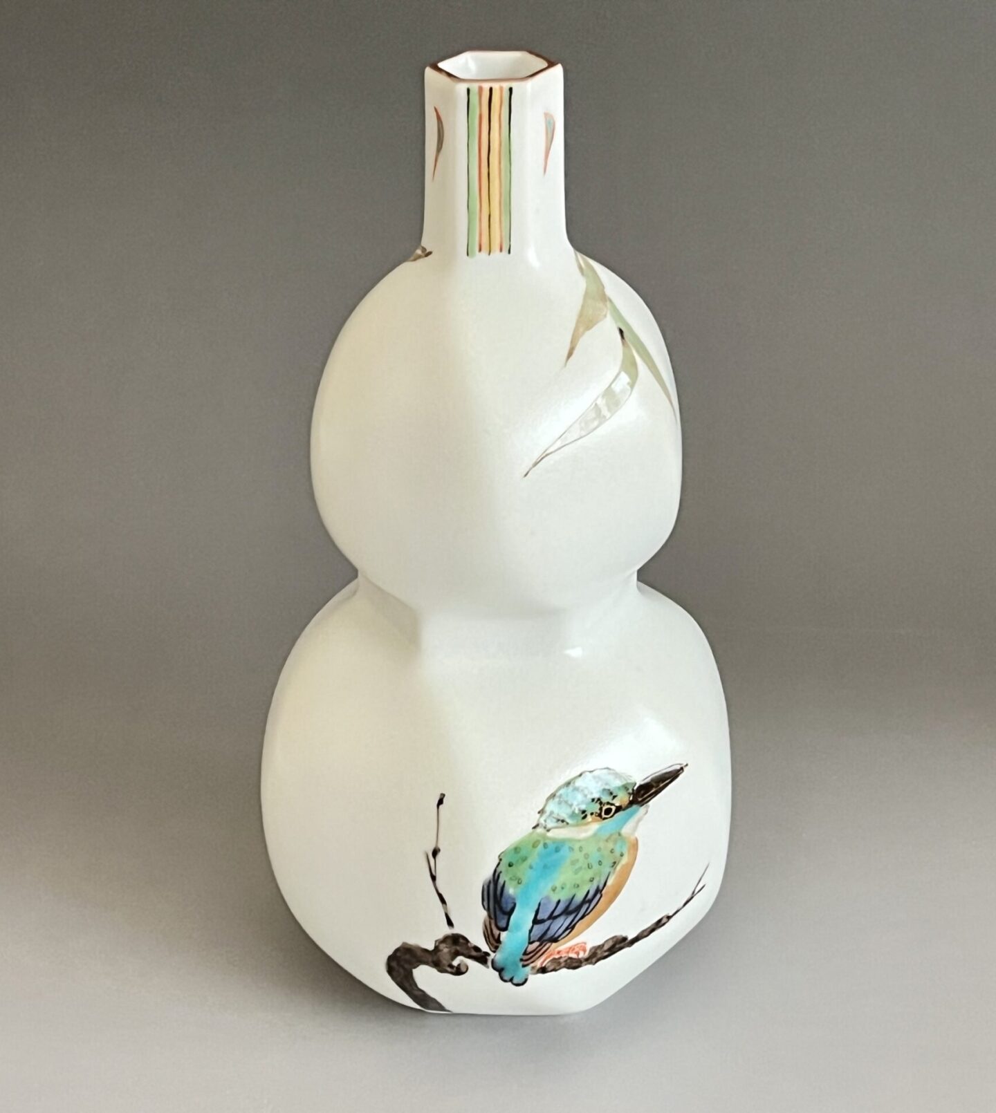 影山明志 (師 人間国宝 藤本能道) 色絵 翡翠図 瓢形徳利 カワセミ 酒器 ①