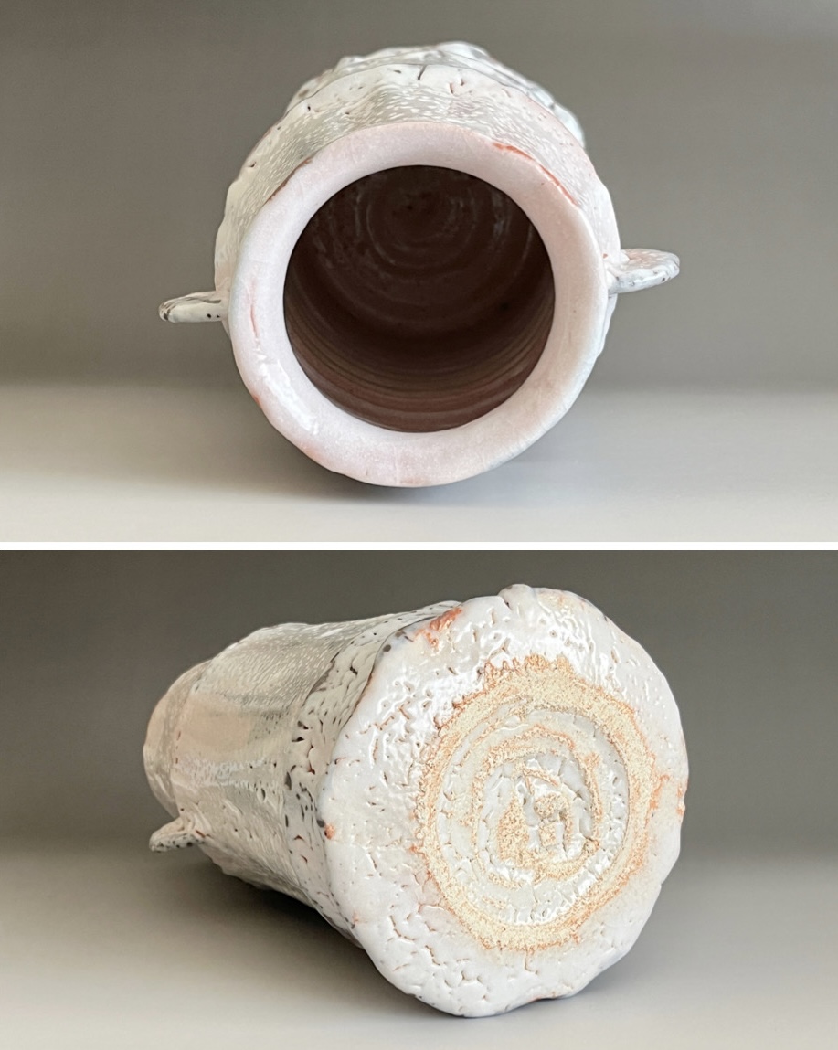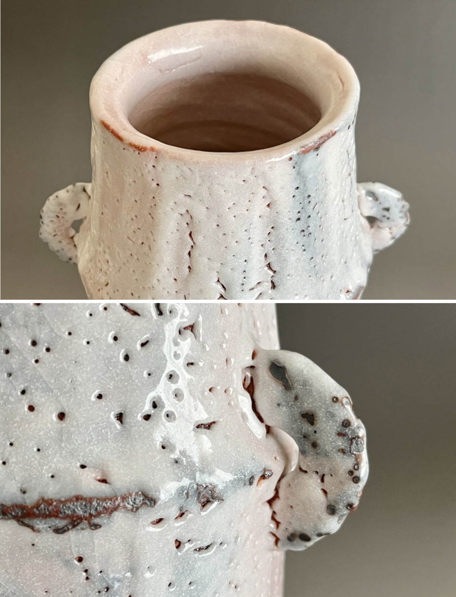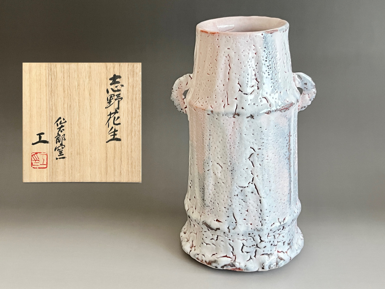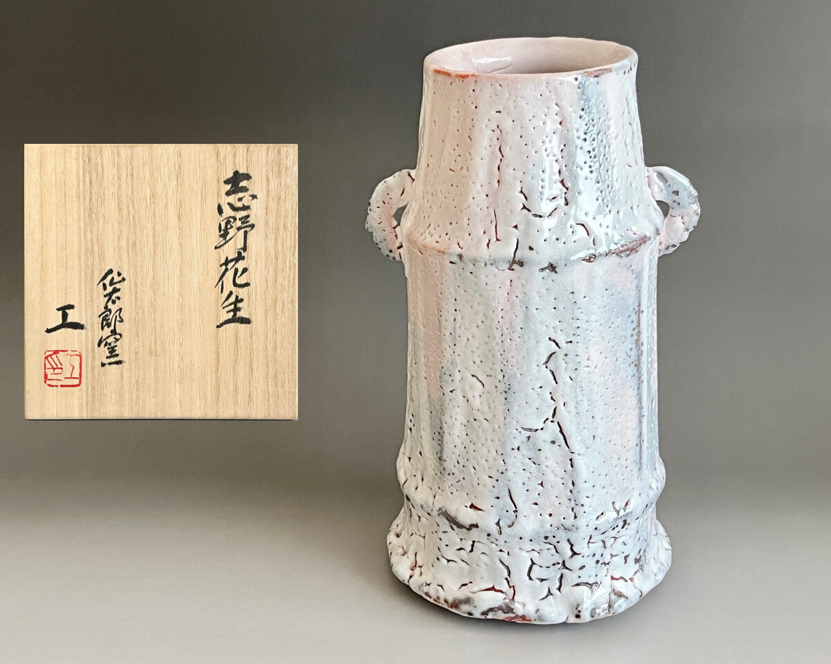 ★ 安藤工 (父 安藤日出武) 仙太郎窯 志野 耳付花生 高さ26.5㎝ 花入 花瓶 花器 茶道具