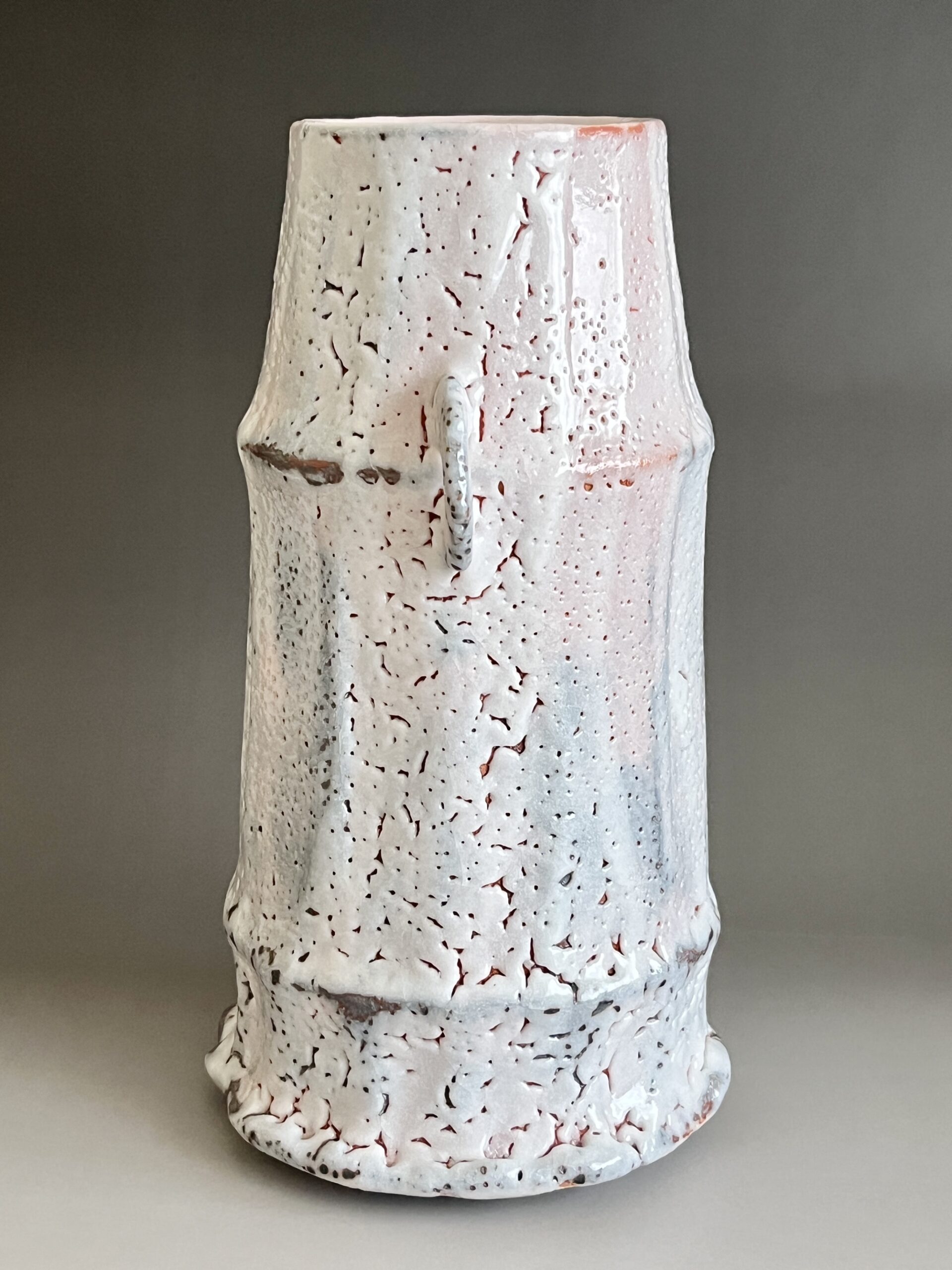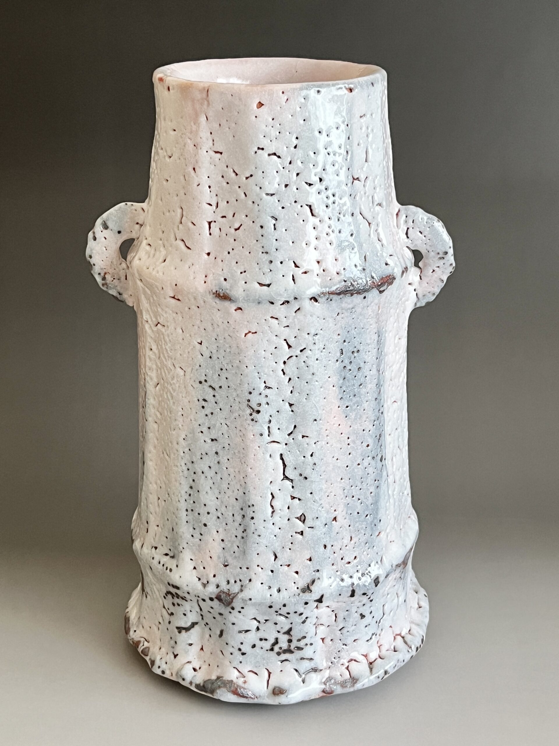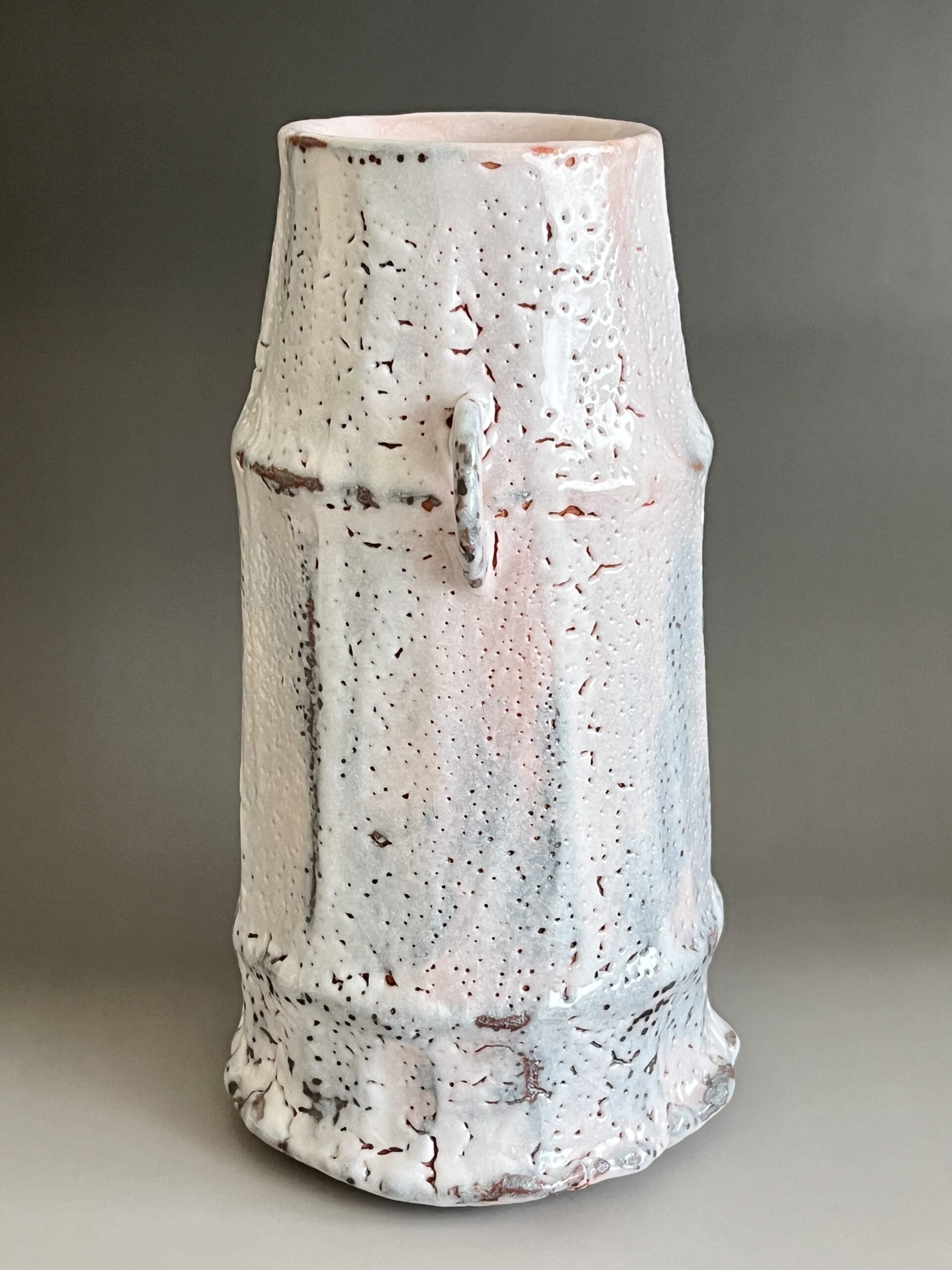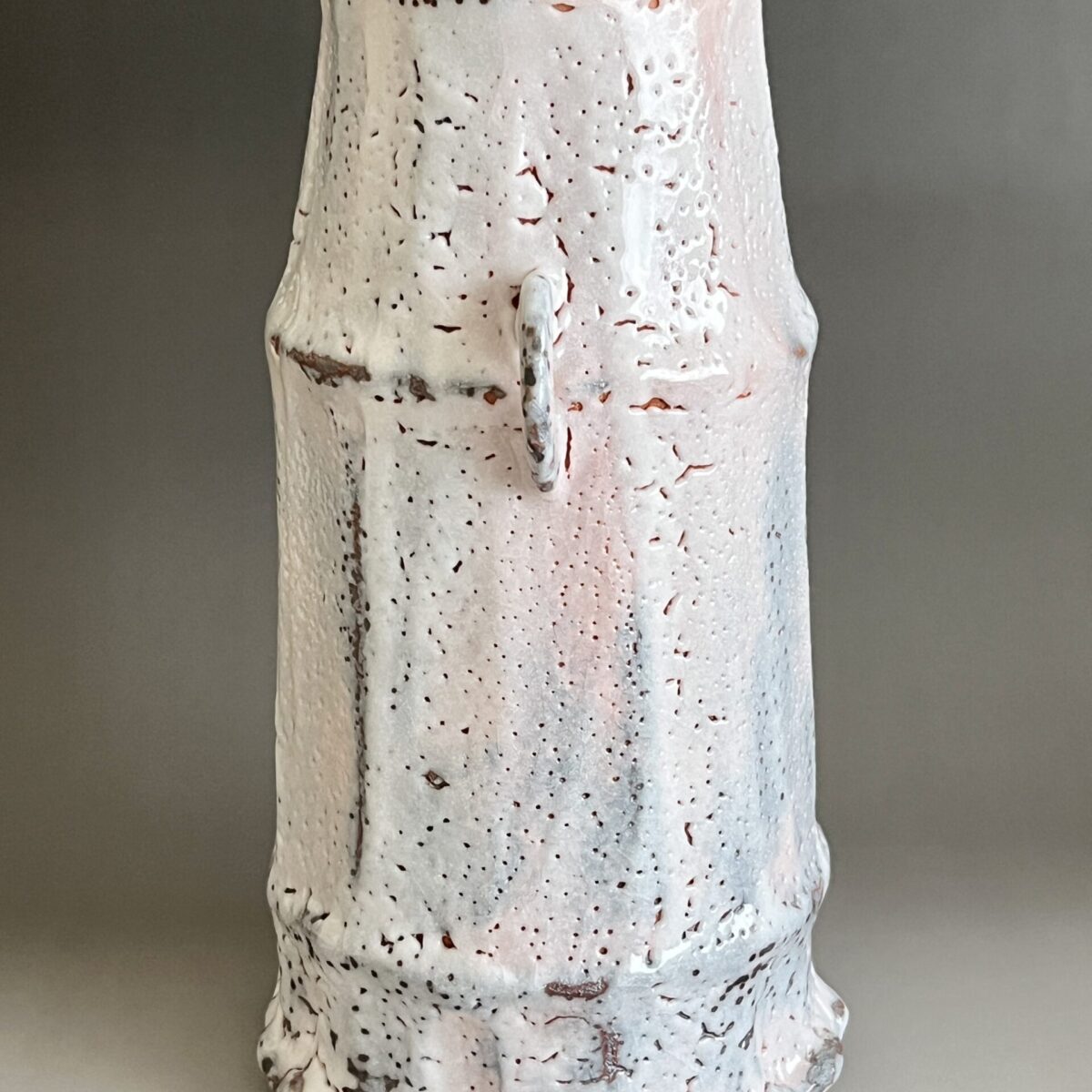 ★ 安藤工 (父 安藤日出武) 仙太郎窯 志野 耳付花生 高さ26.5㎝ 花入 花瓶 花器 茶道具