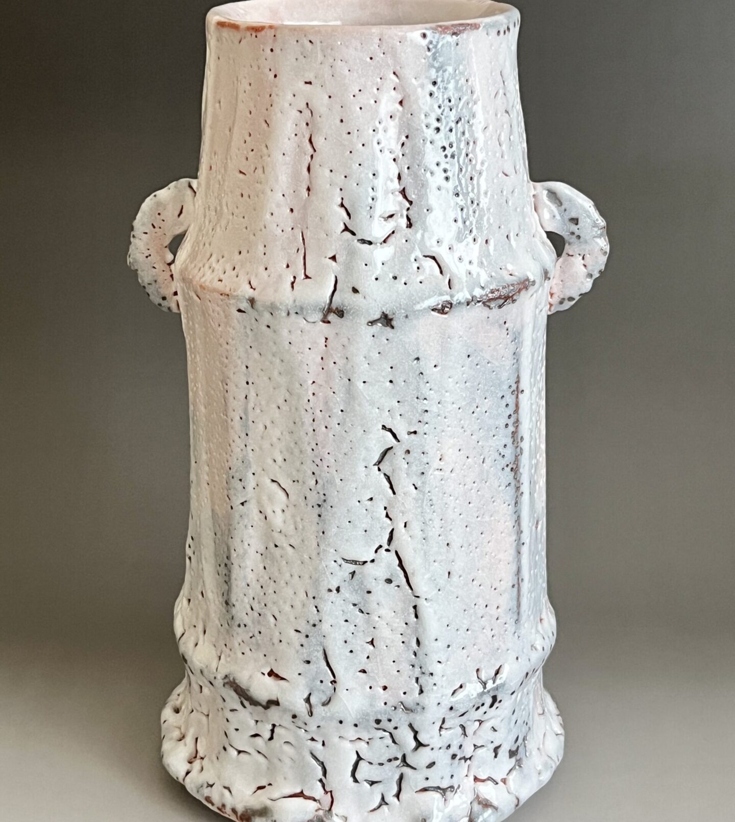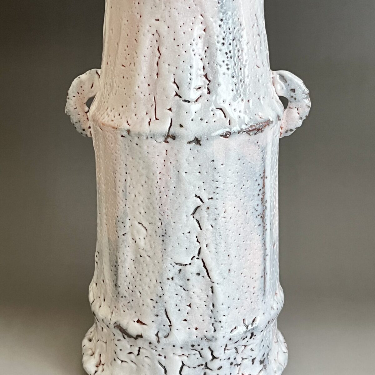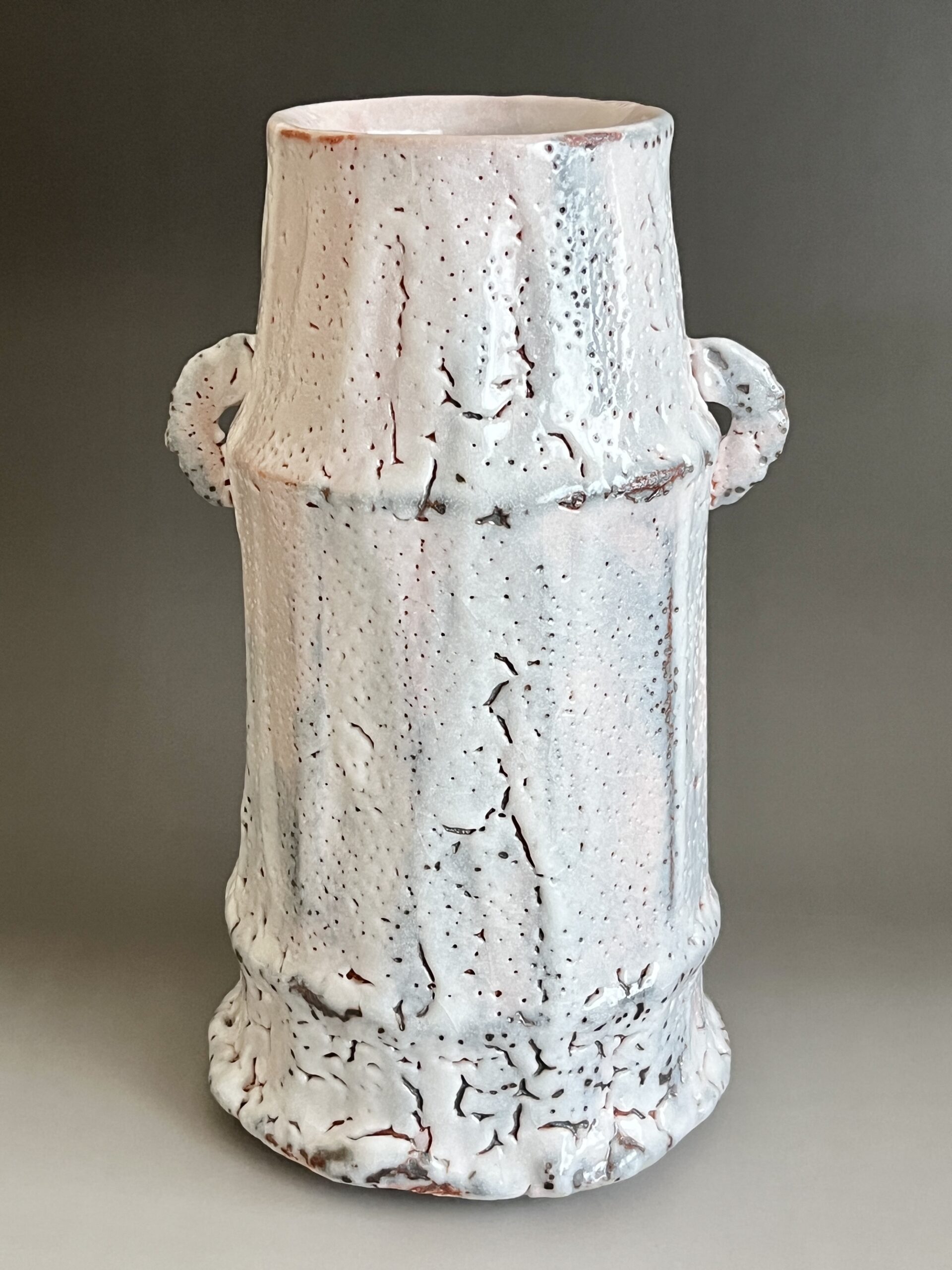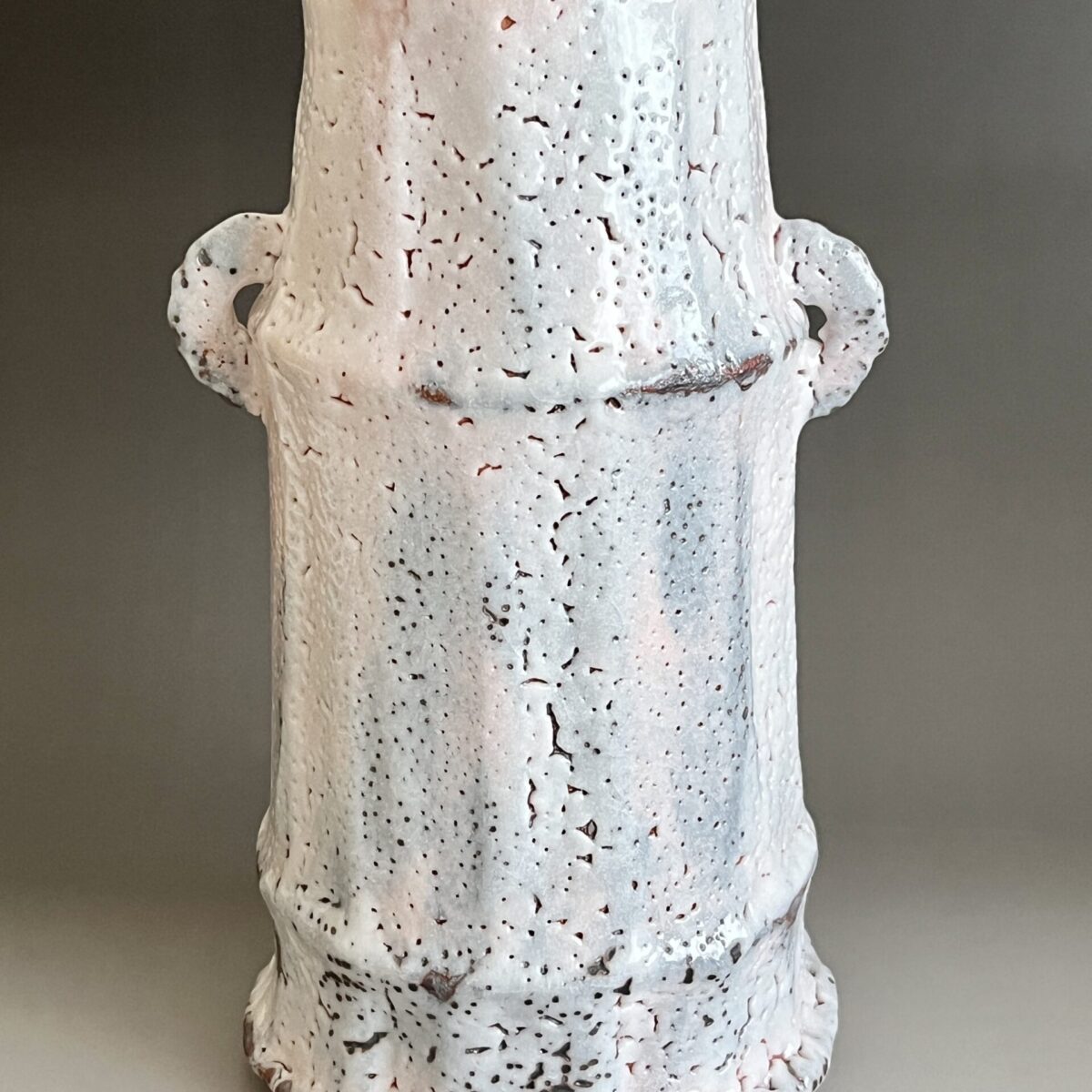 ★ 安藤工 (父 安藤日出武) 仙太郎窯 志野 耳付花生 高さ26.5㎝ 花入 花瓶 花器 茶道具