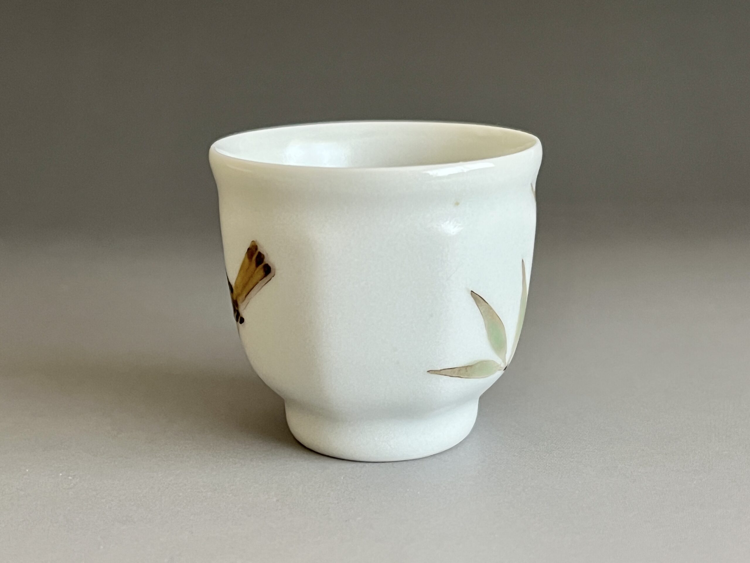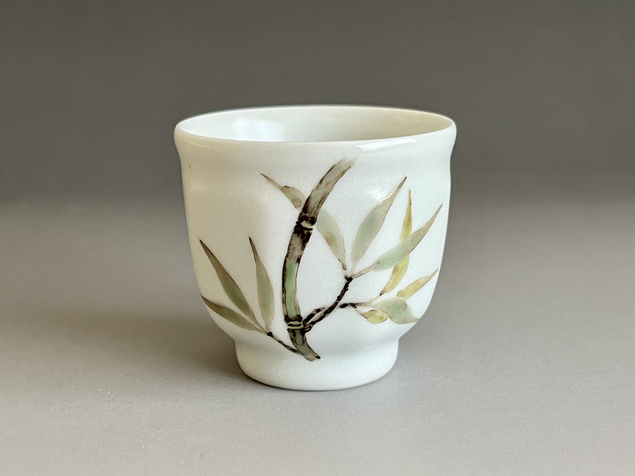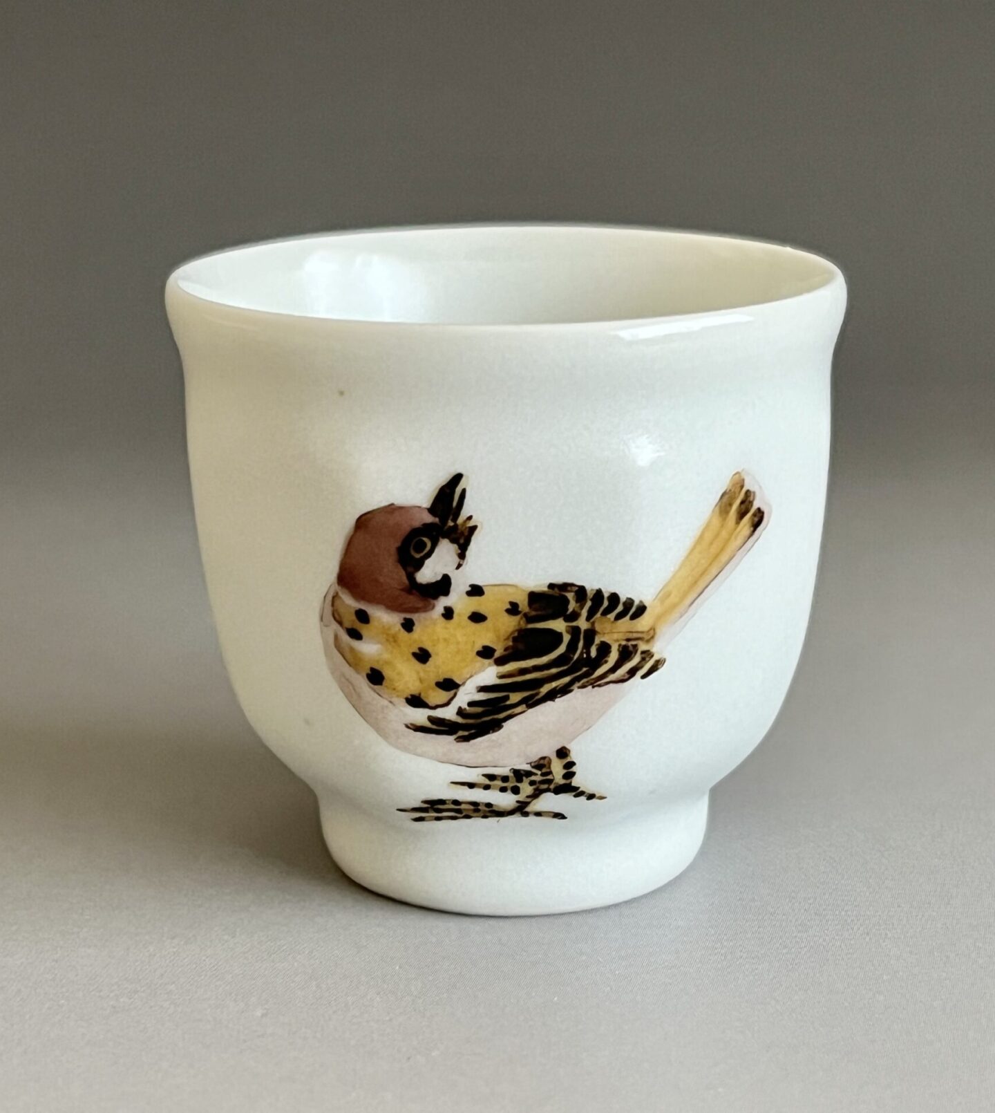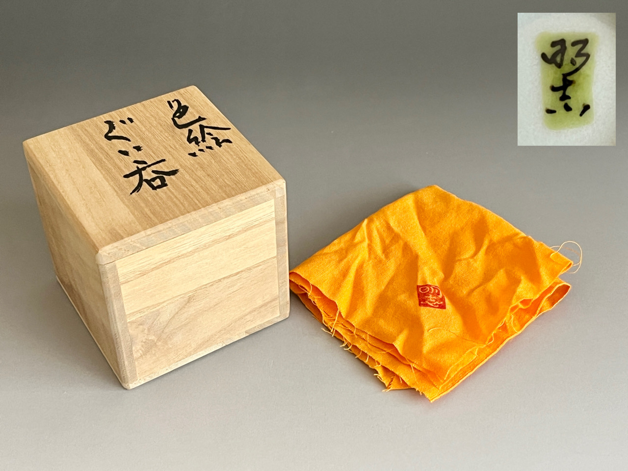 影山明志 (師 人間国宝 藤本能道) 色絵 竹雀紋 ぐい呑 酒盃 酒器 ②
