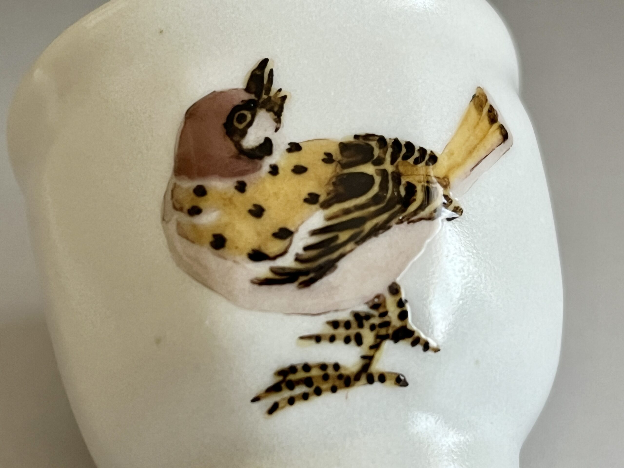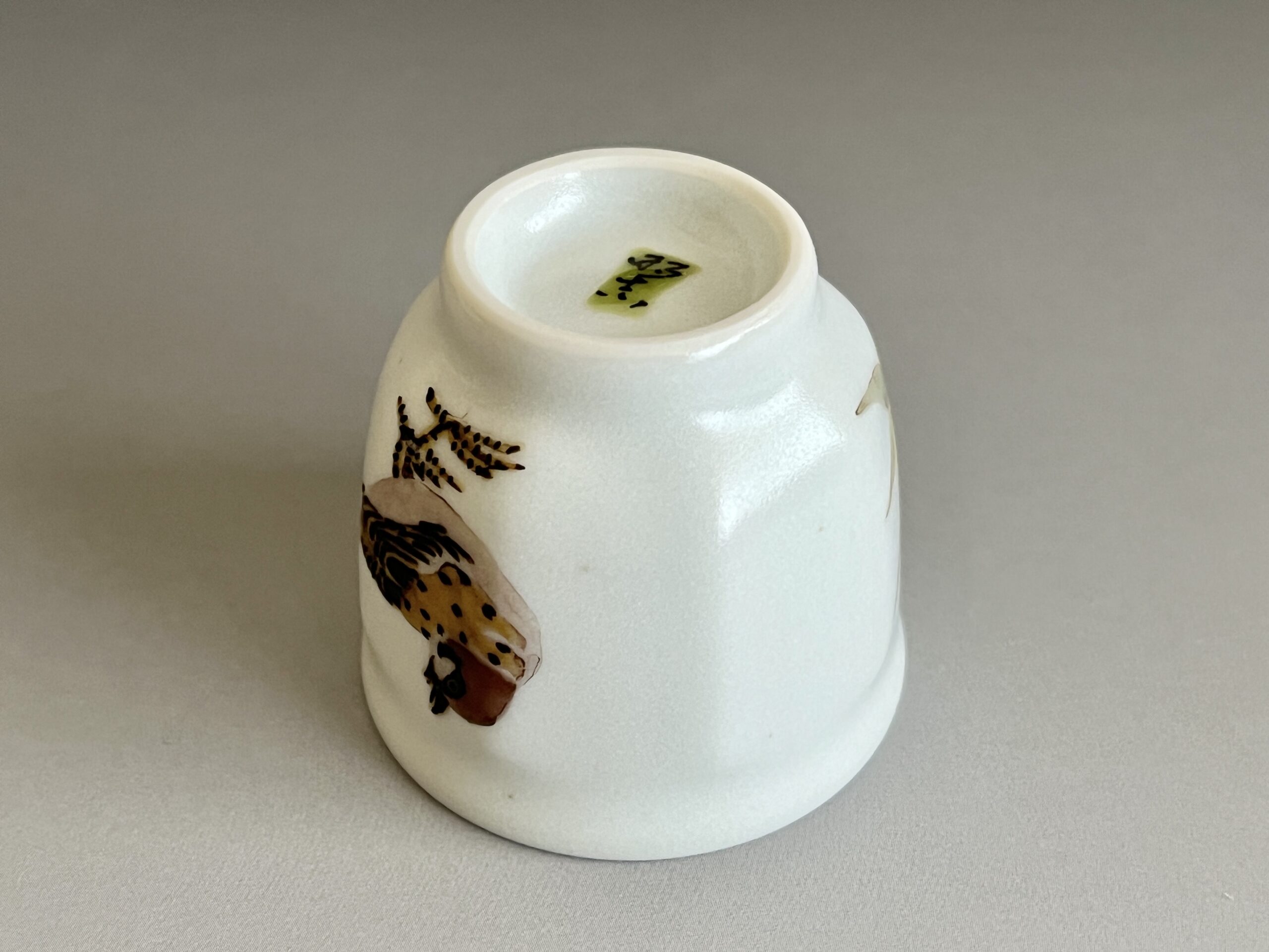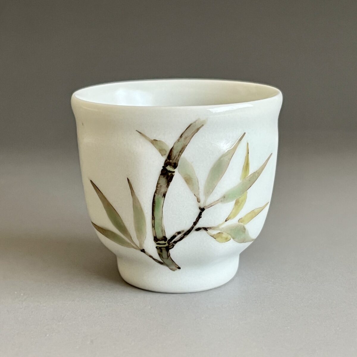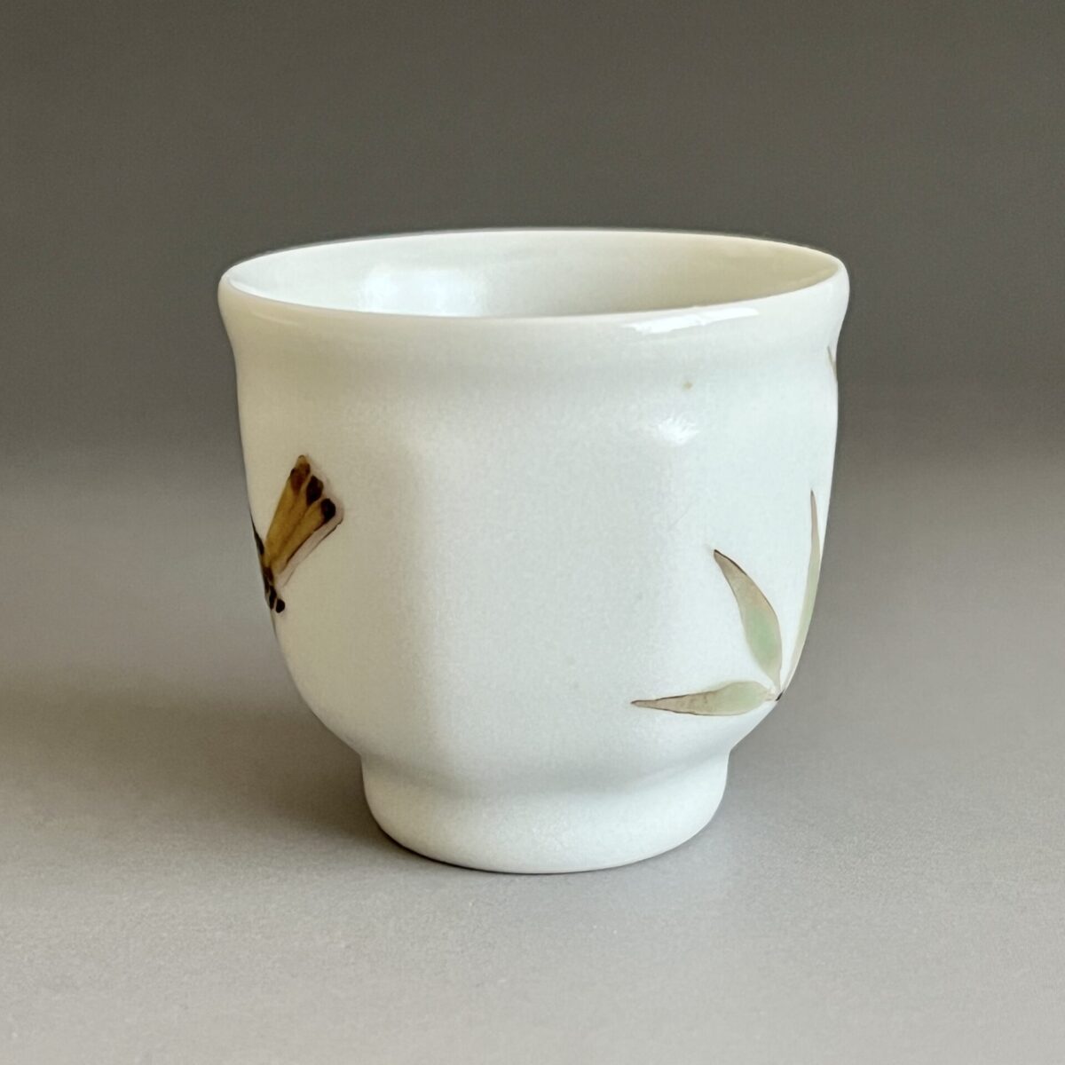 影山明志 (師 人間国宝 藤本能道) 色絵 竹雀紋 ぐい呑 酒盃 酒器 ②