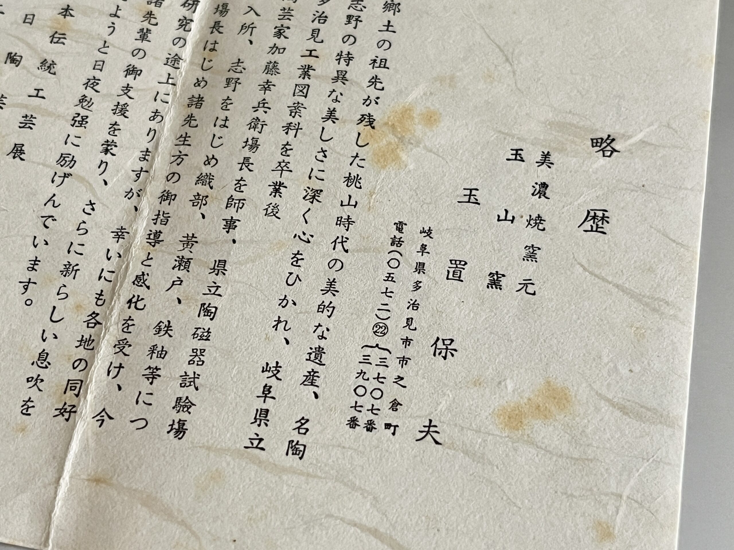 岐阜県の美濃焼 玉置保夫 氏の作品です 特筆すべき目立つ割れ、カケ、傷はございません