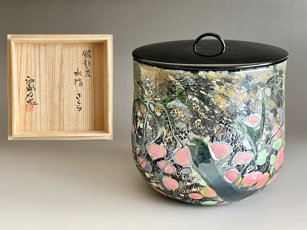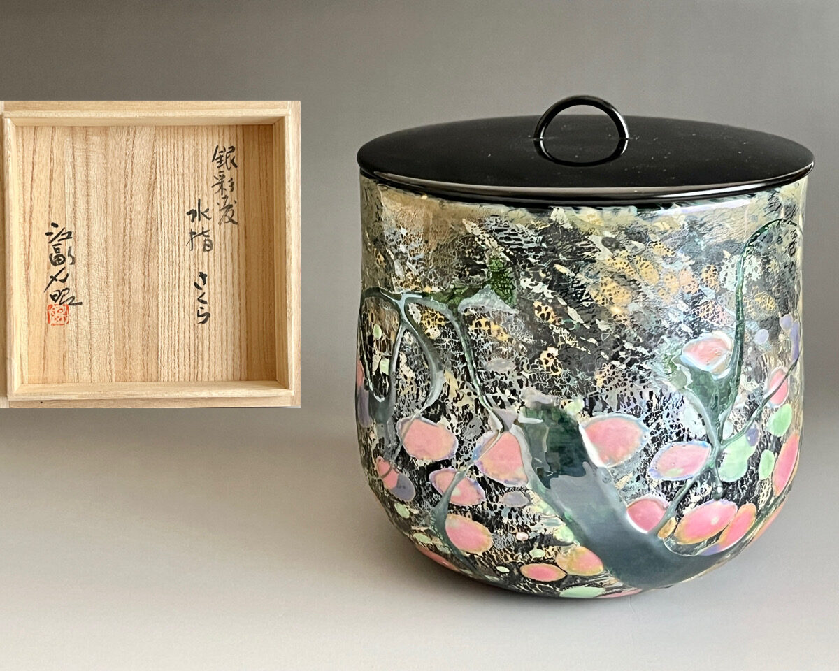 ★ 江副行昭 銀彩変 水指 さくら 硝子 熔壌ガラス 桜 茶道具の陶印