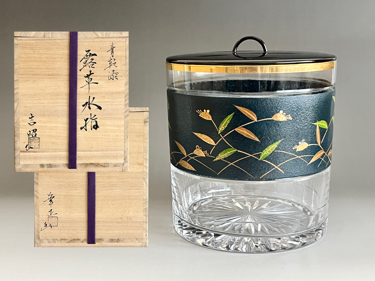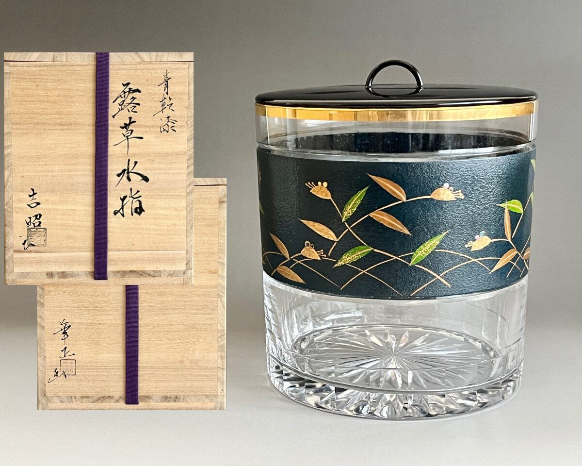硝子工芸家 関吉昭 氏と、加賀の漆芸家 吉田華正 氏の合作作品です