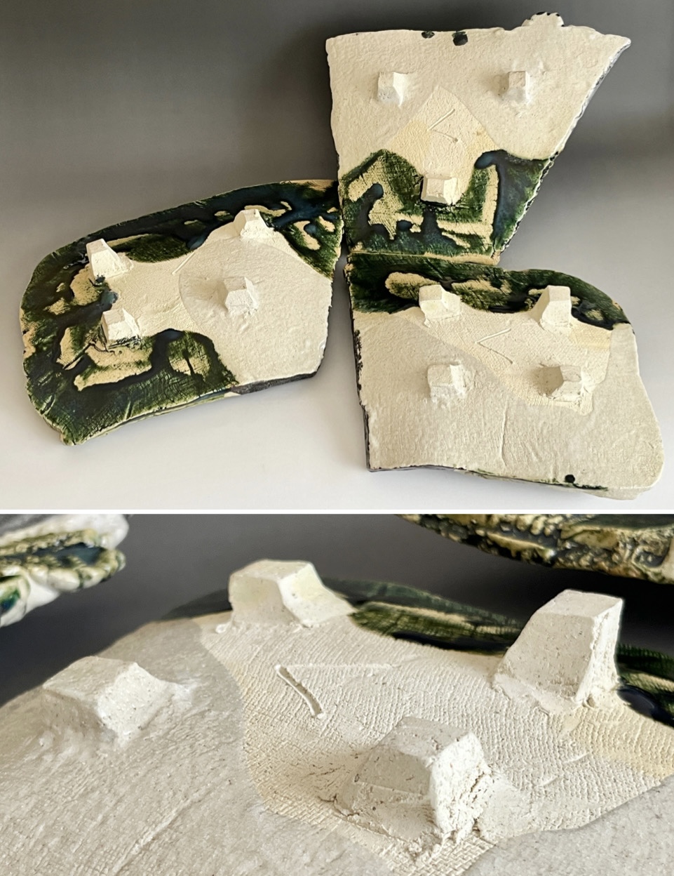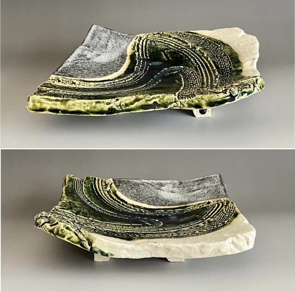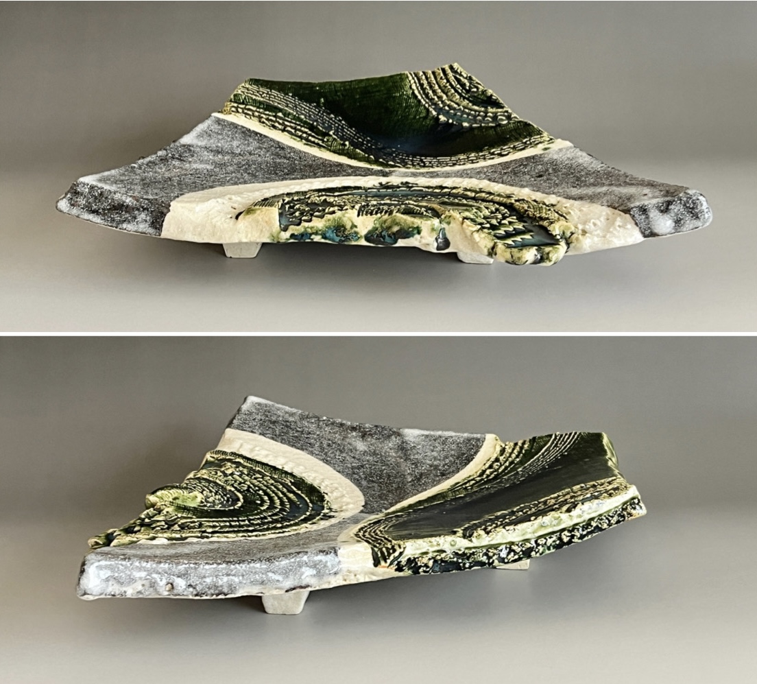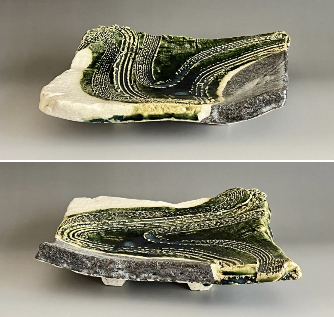 加藤掴也 (師 日根野作三) 織部 足付き組皿 流線文 変わり皿 三客 大皿 懐石 会席 和食器の落款