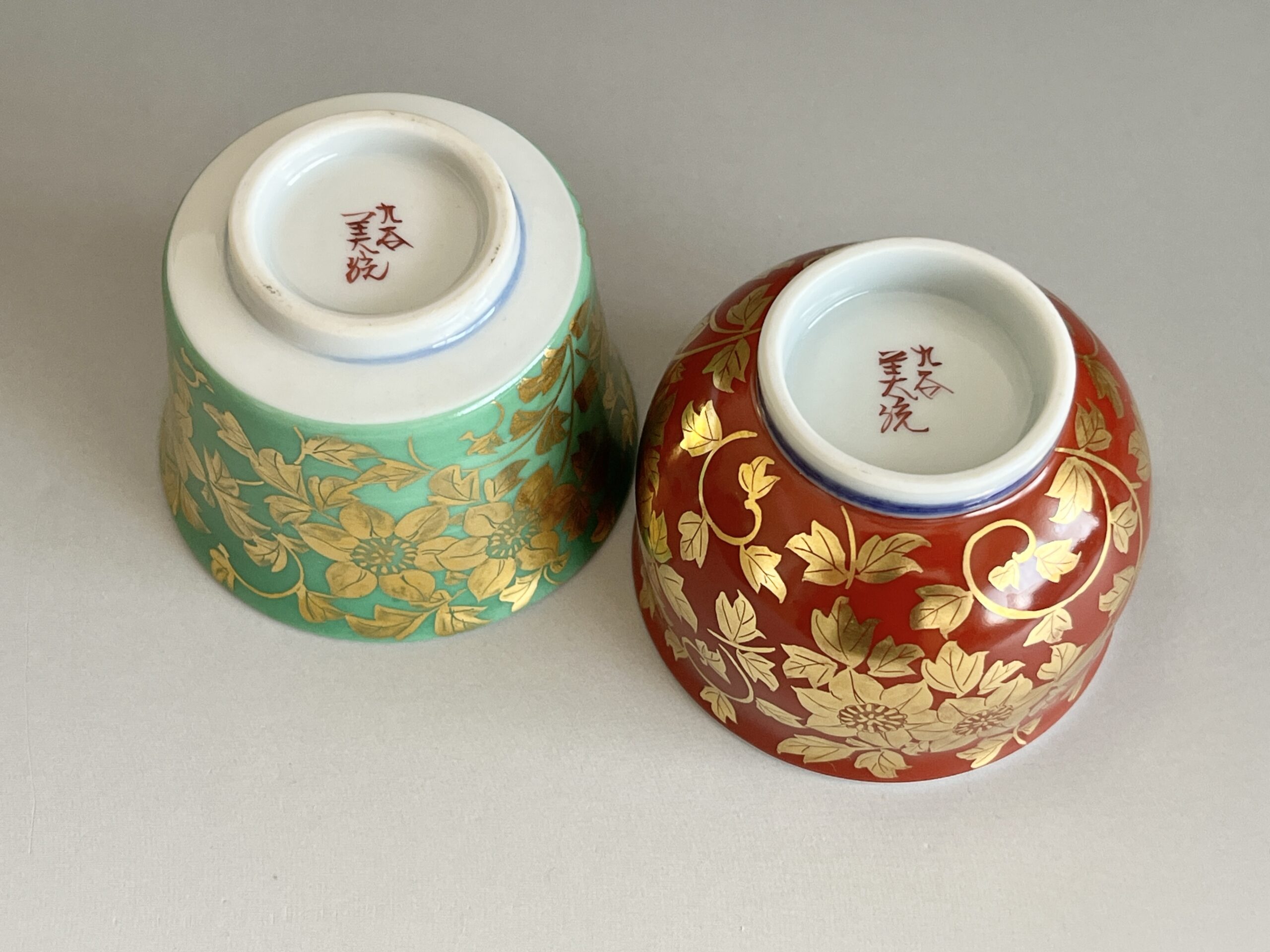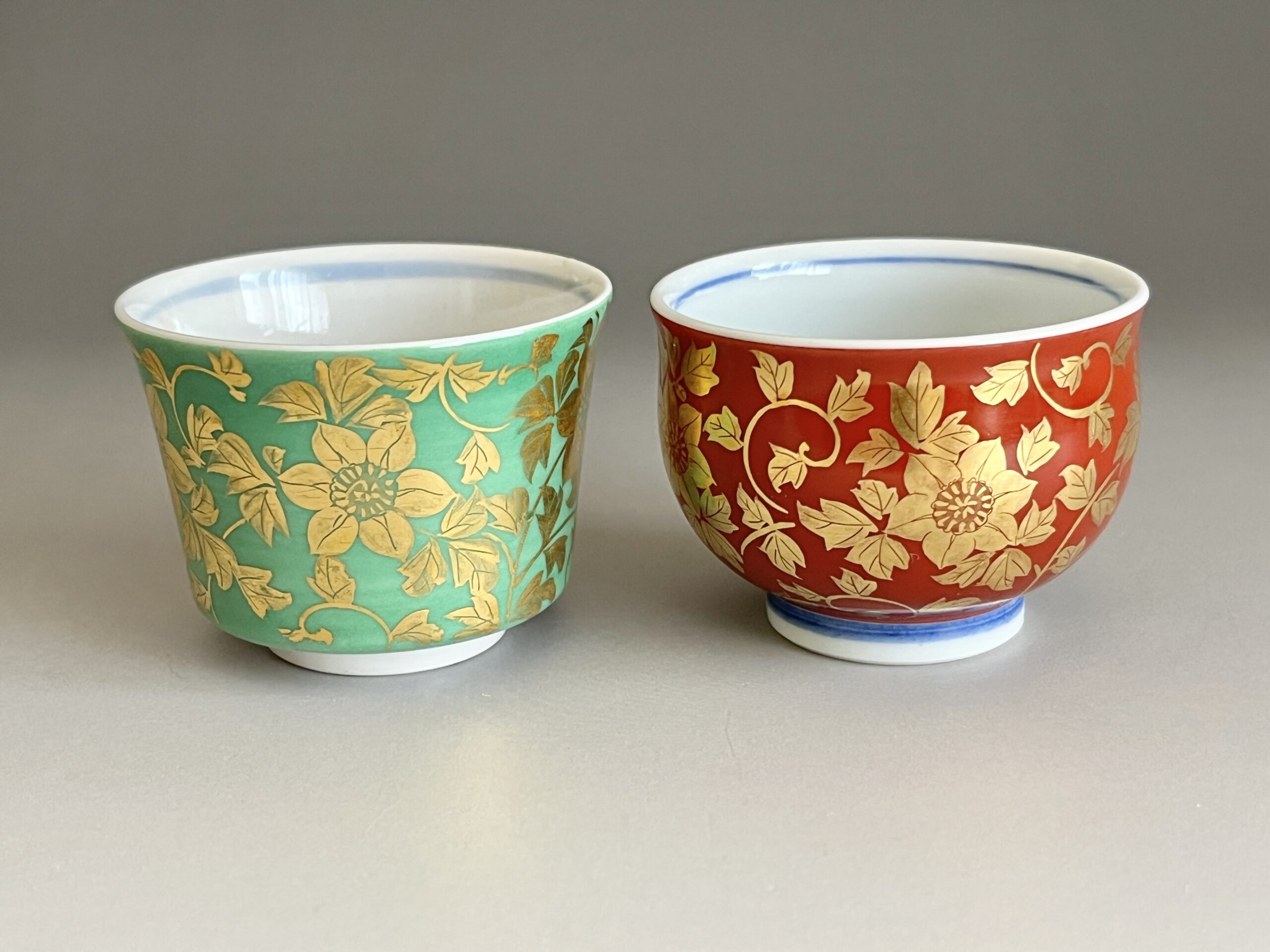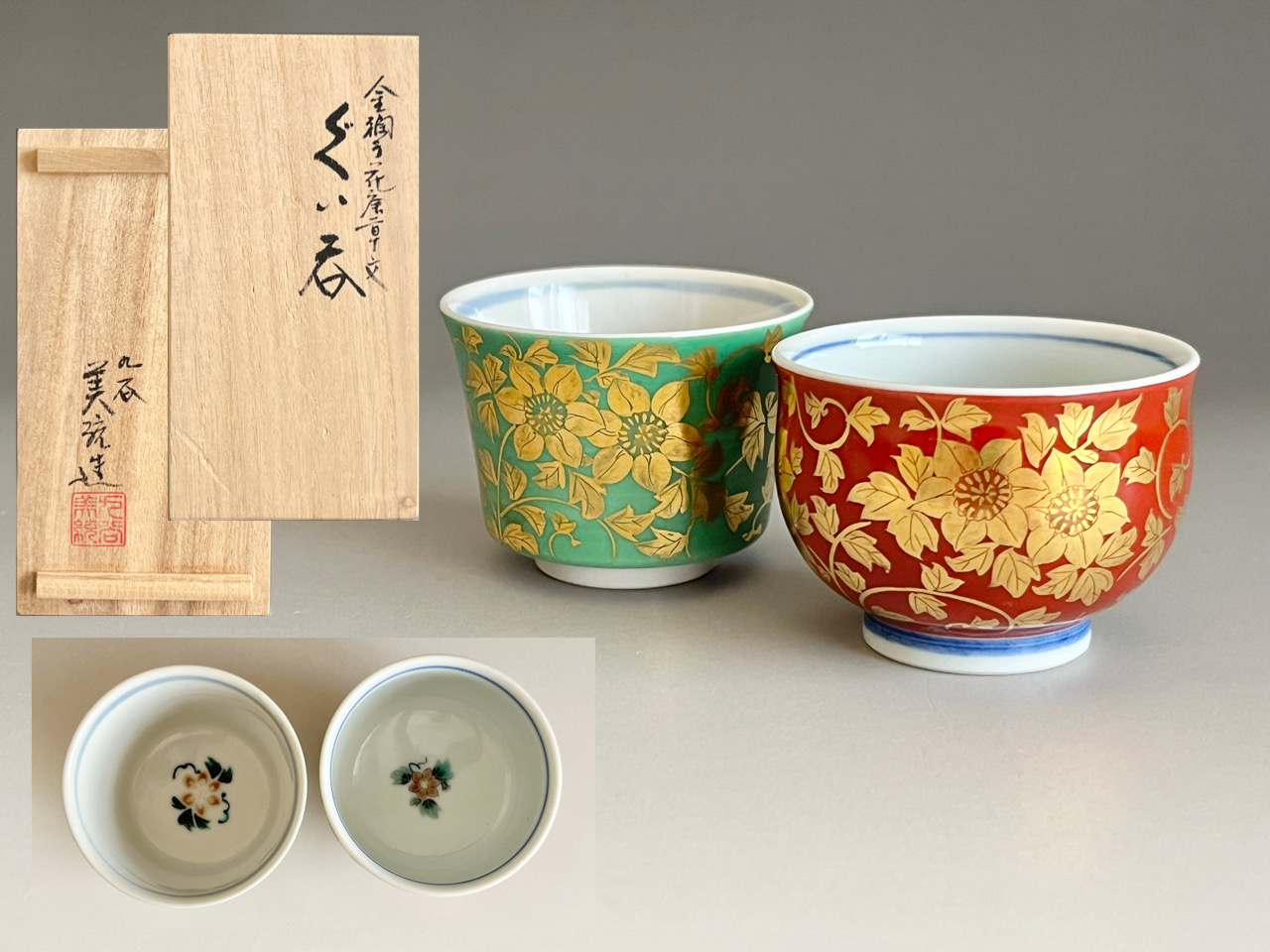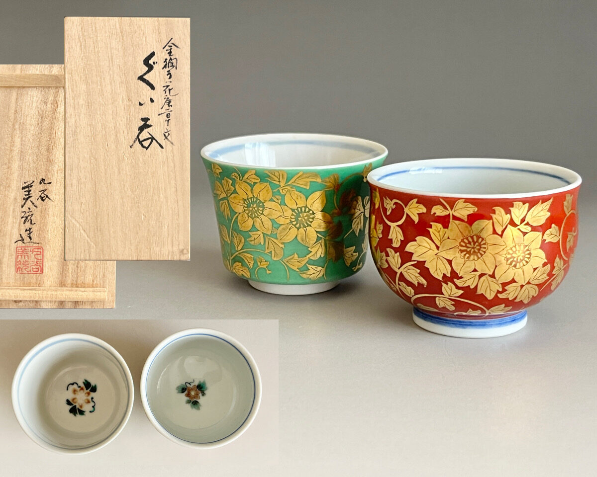 人間国宝 吉田美統 九谷焼 金襴手 花唐草文 ぐい呑 二客 酒盃 酒器
