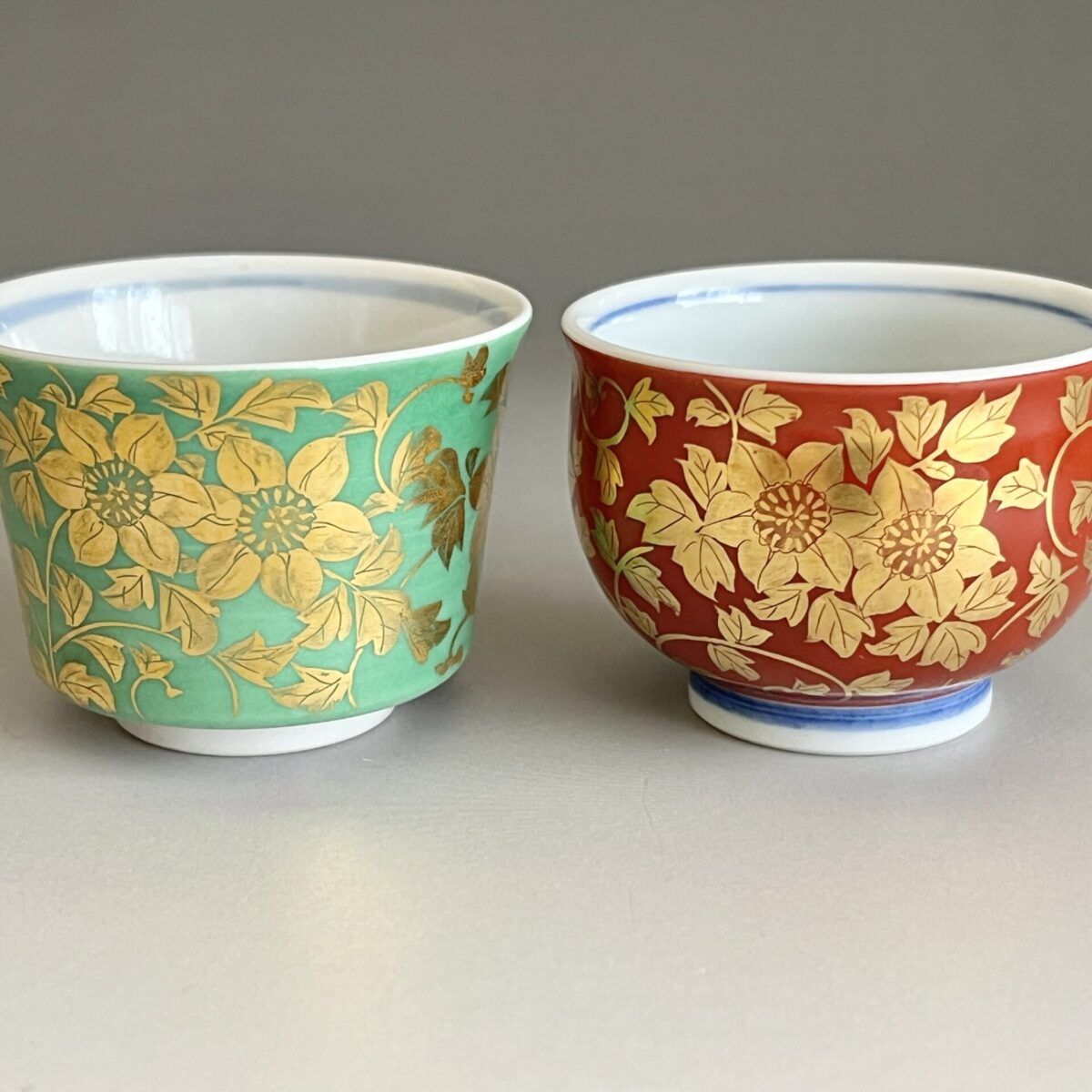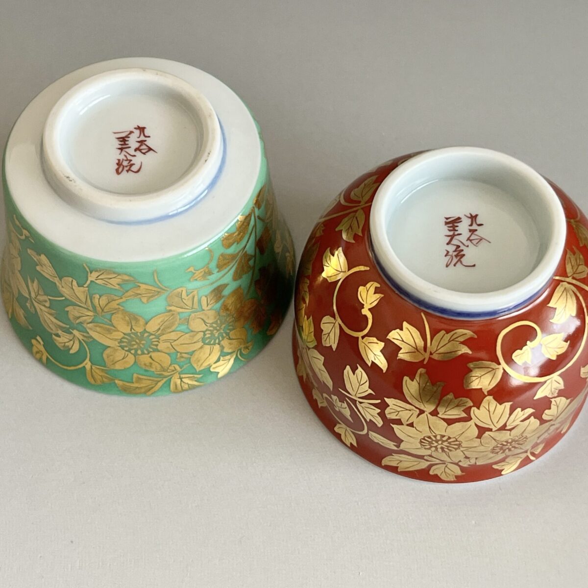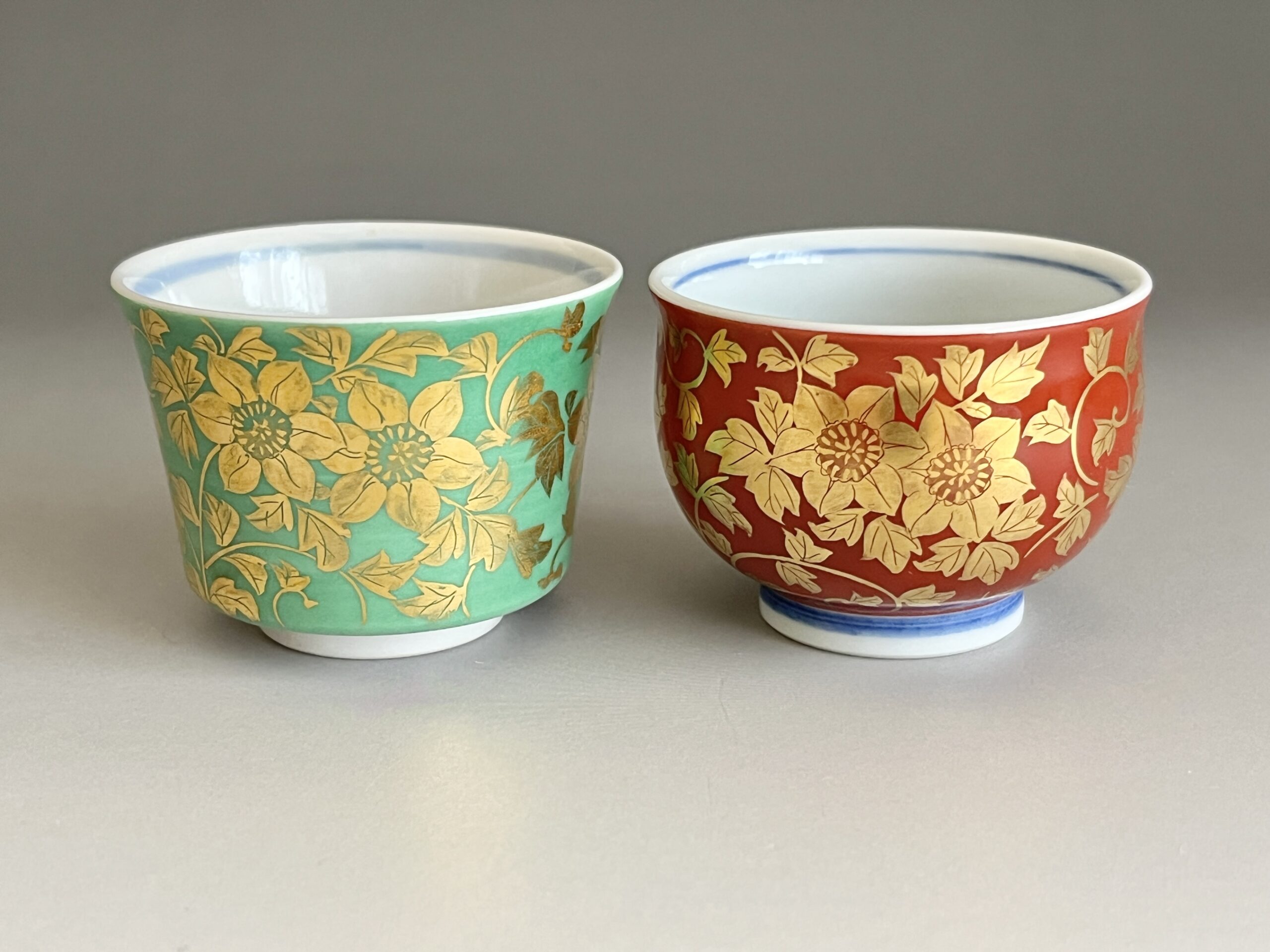 人間国宝 吉田美統 九谷焼 金襴手 花唐草文 ぐい呑 二客 酒盃 酒器