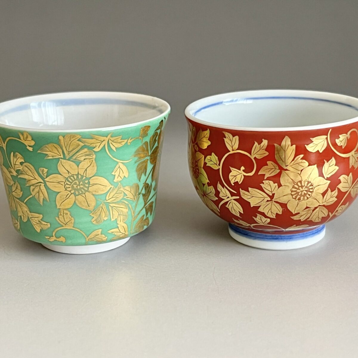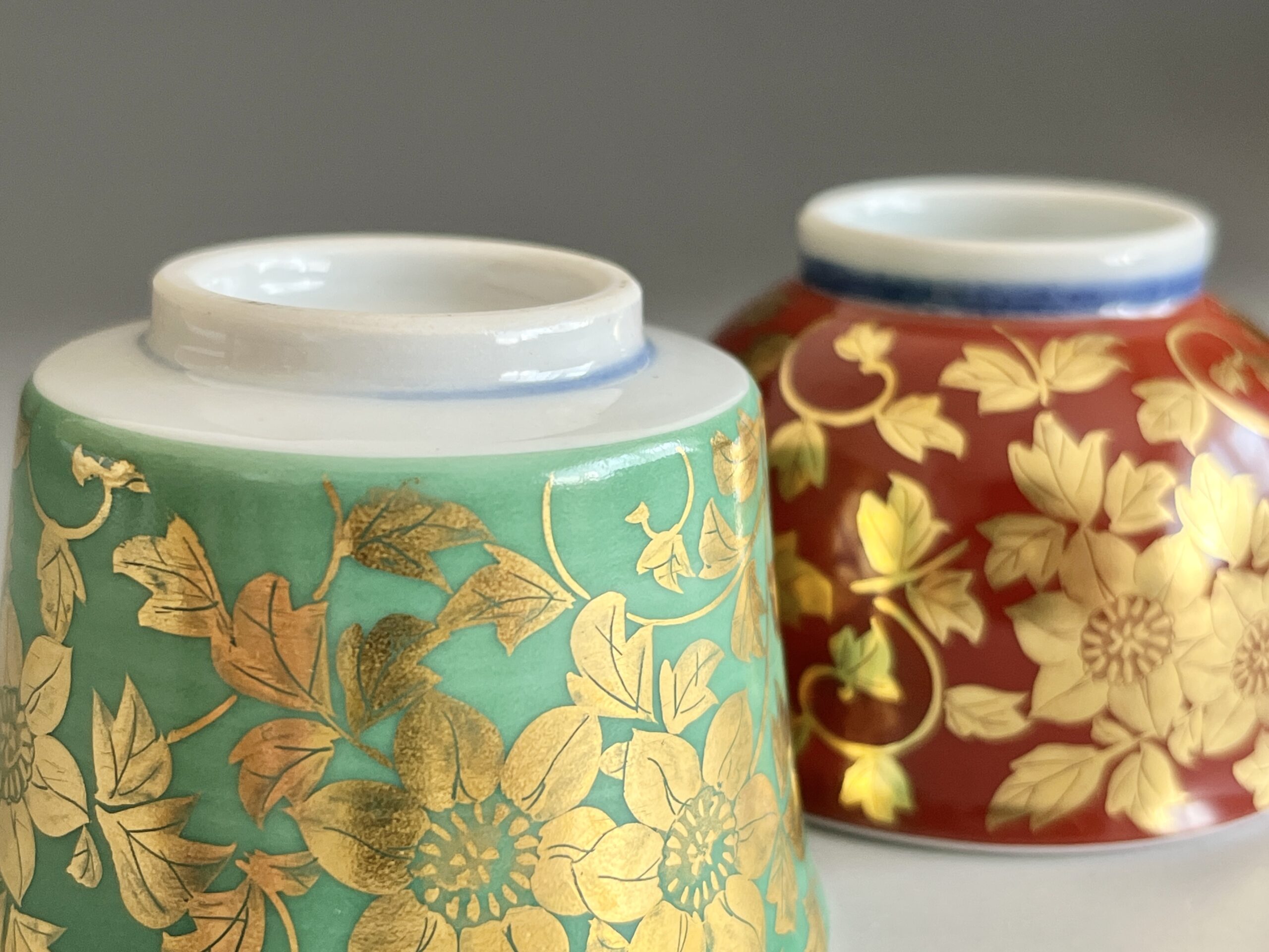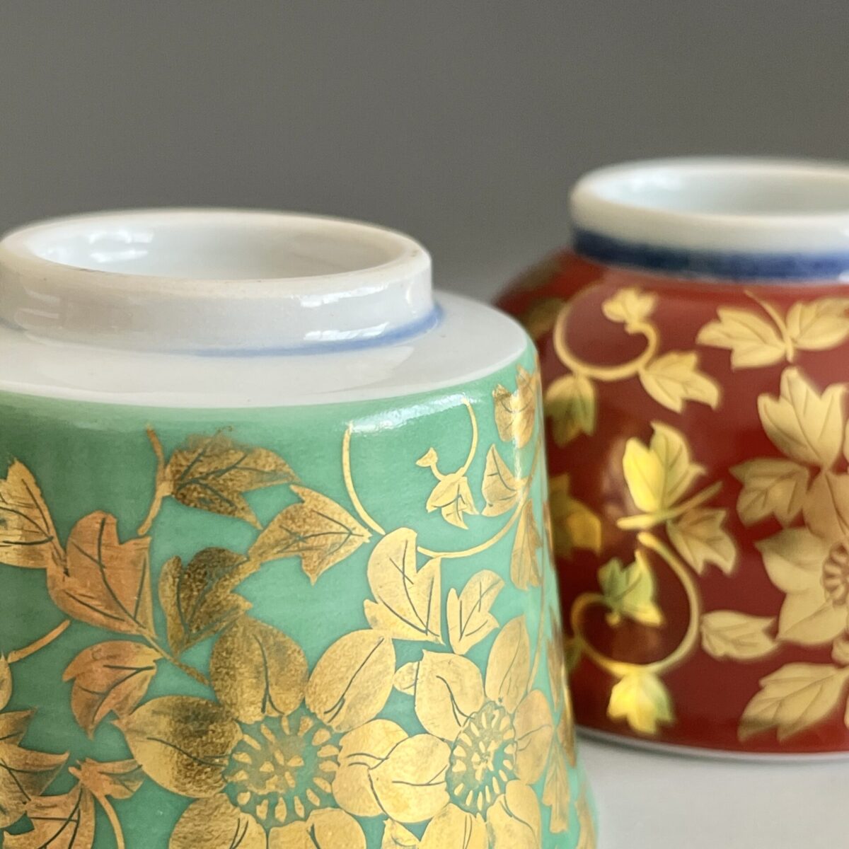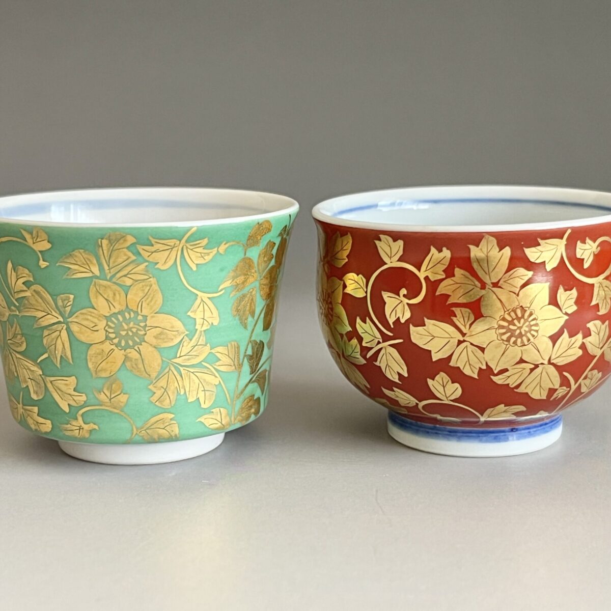 人間国宝 吉田美統 九谷焼 金襴手 花唐草文 ぐい呑 二客 酒盃 酒器