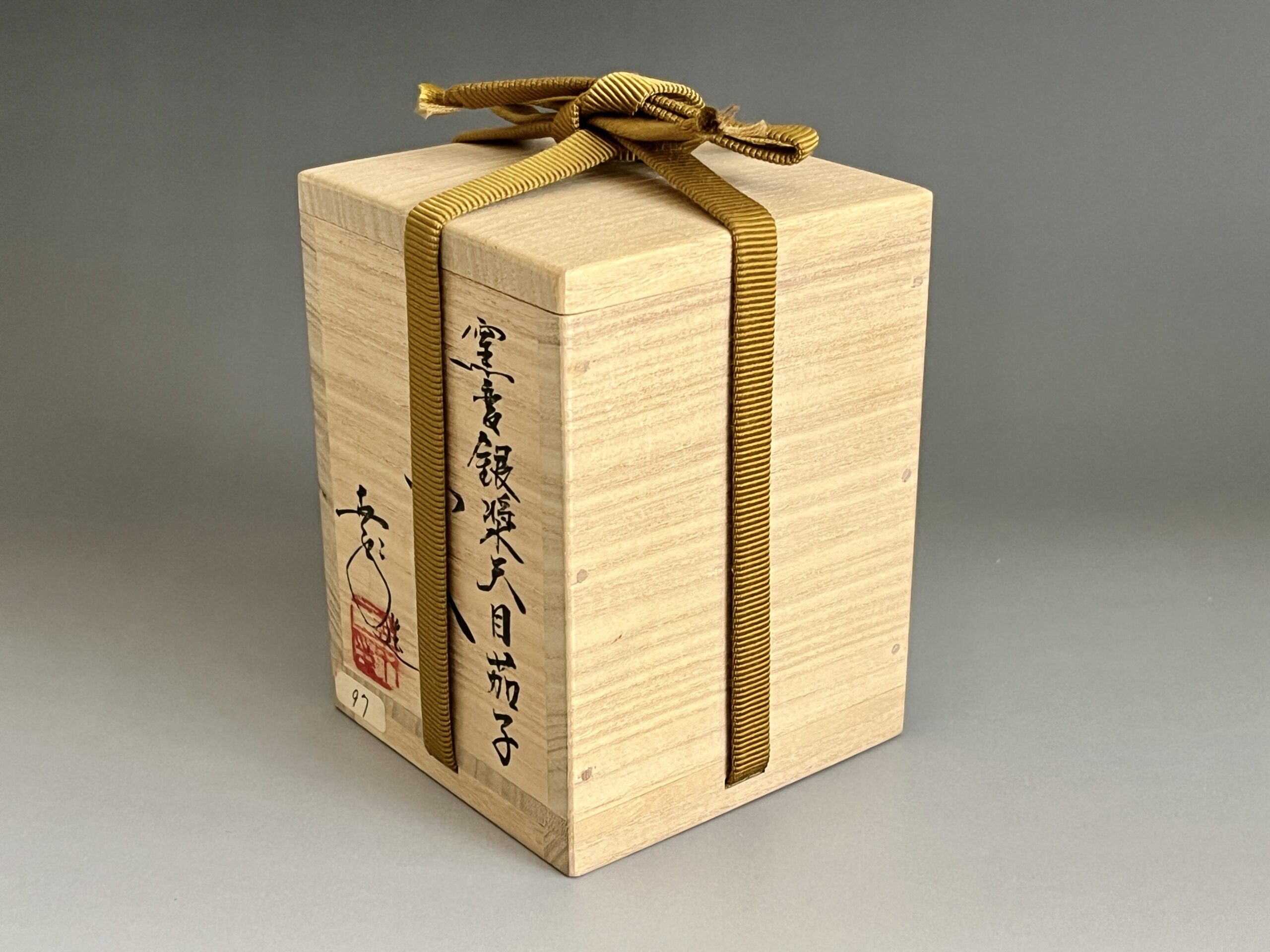 ★ 鎌田幸二 掻き銘 窯変 銀漿天目 茄子茶入 仕覆 角龍金襴 茶道具の落款