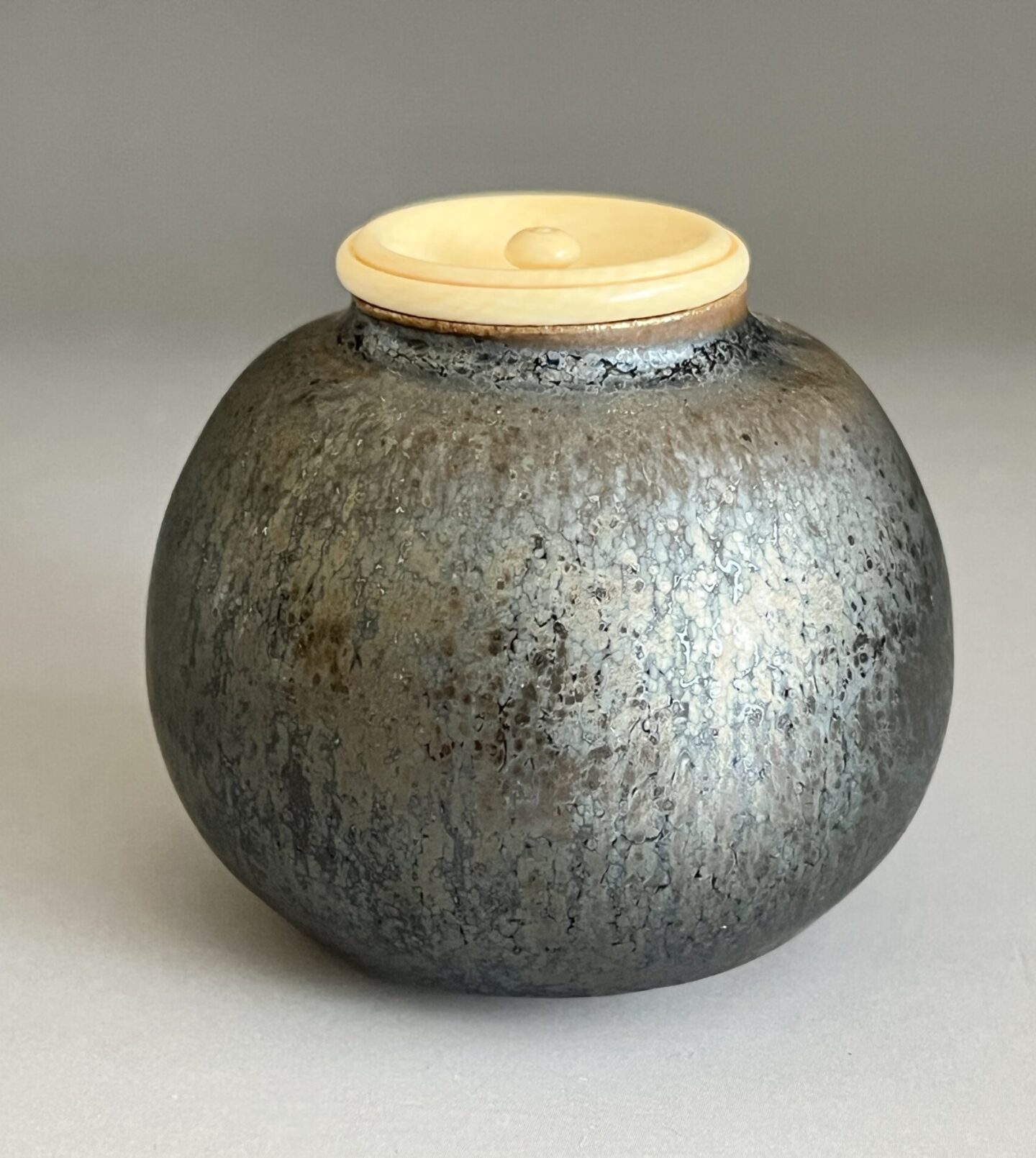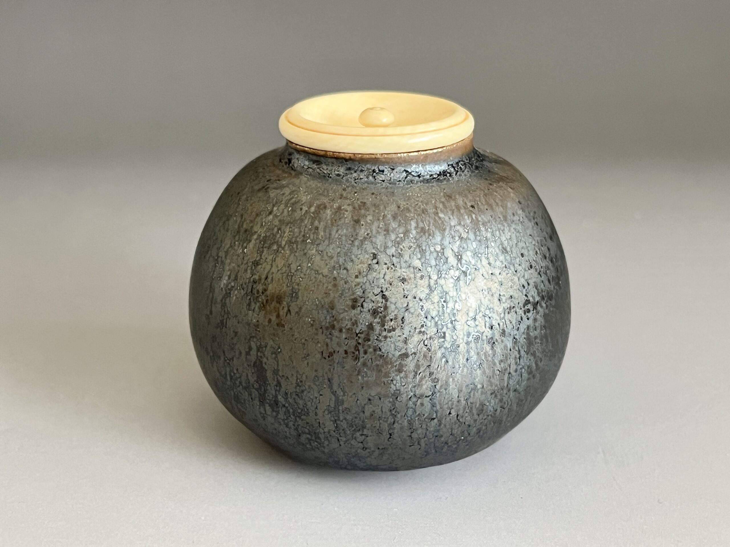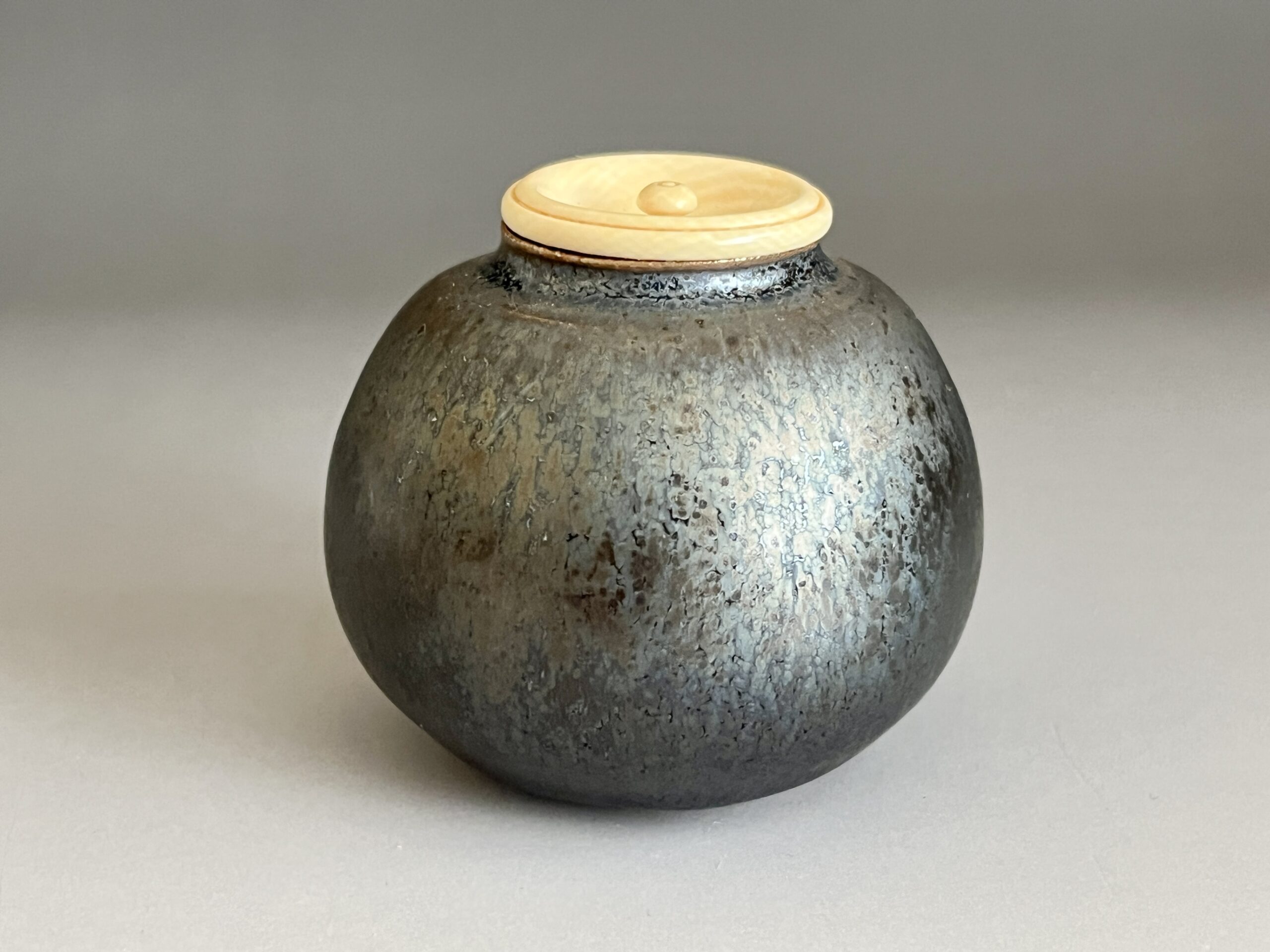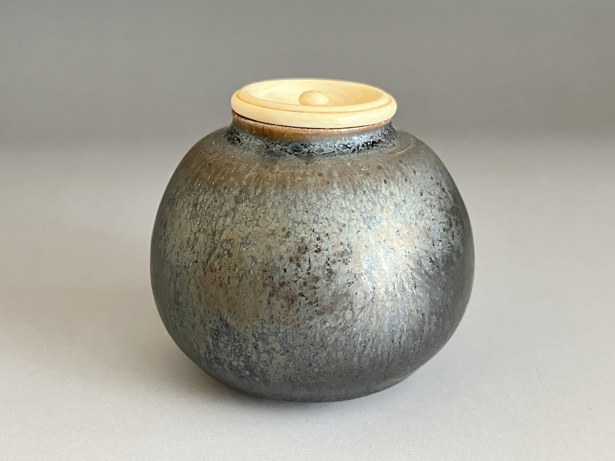 ★ 鎌田幸二 掻き銘 窯変 銀漿天目 茄子茶入 仕覆 角龍金襴 茶道具の陶印
