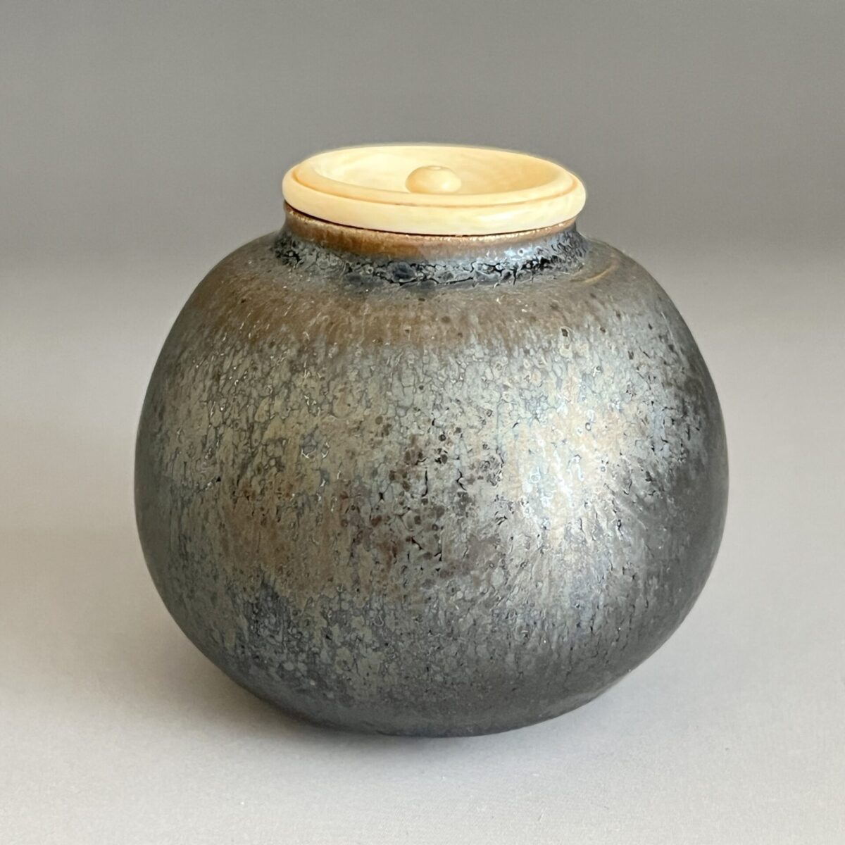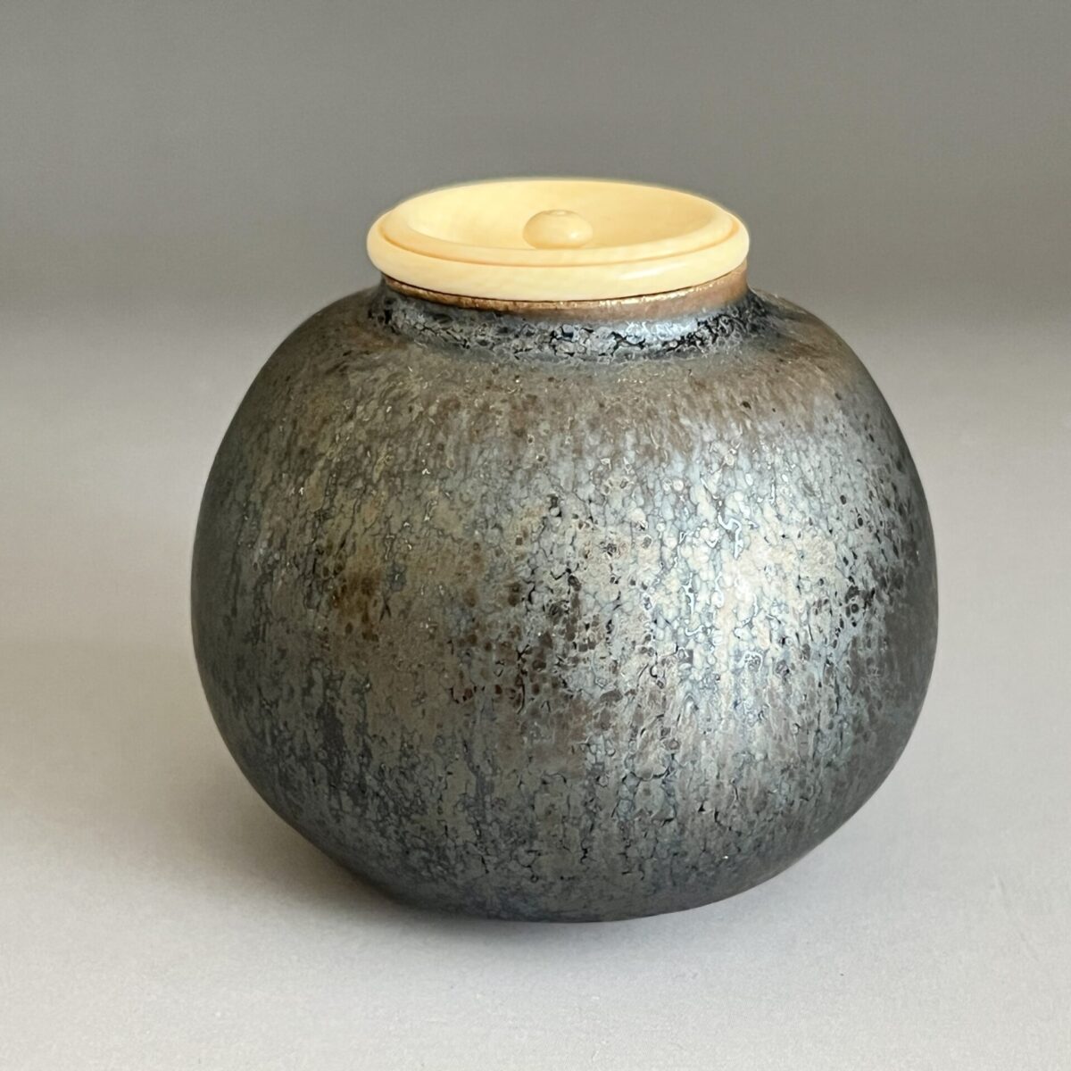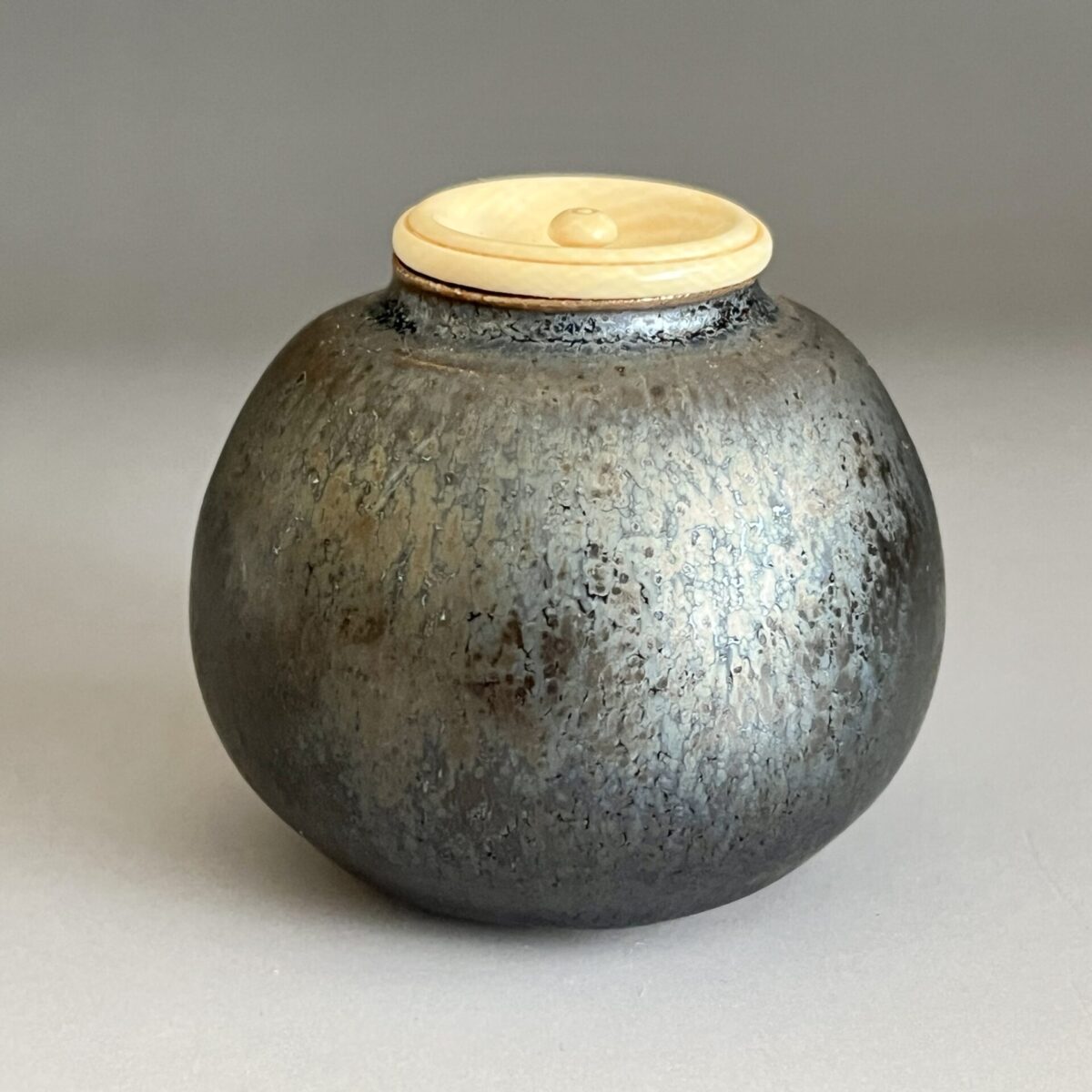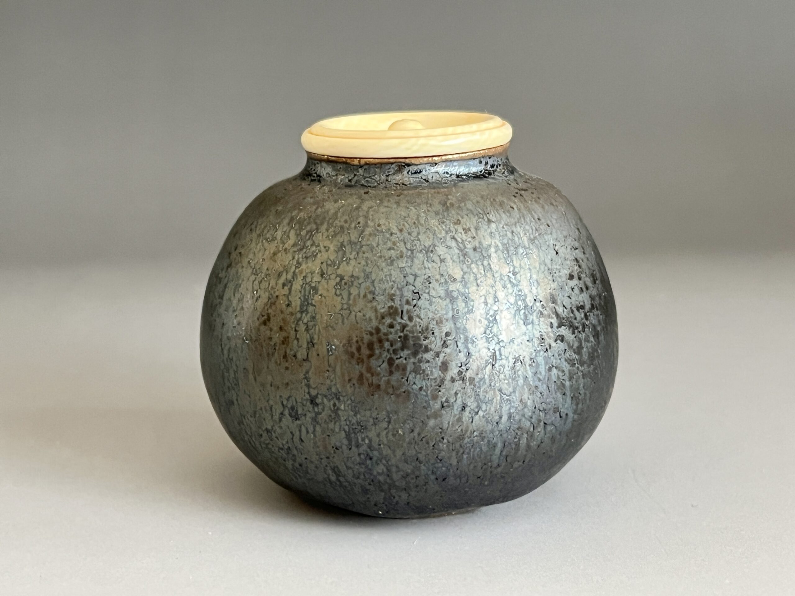 ★ 鎌田幸二 掻き銘 窯変 銀漿天目 茄子茶入 仕覆 角龍金襴 茶道具の陶印