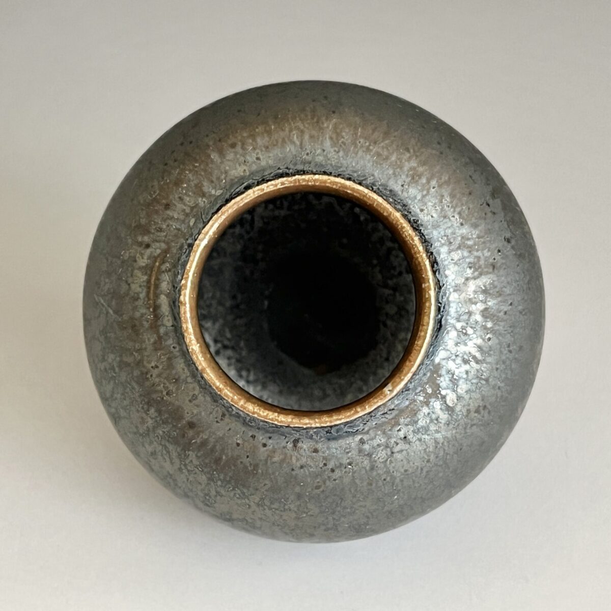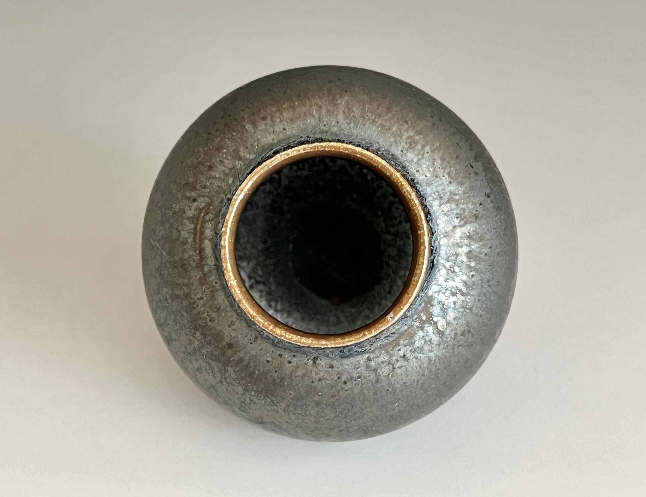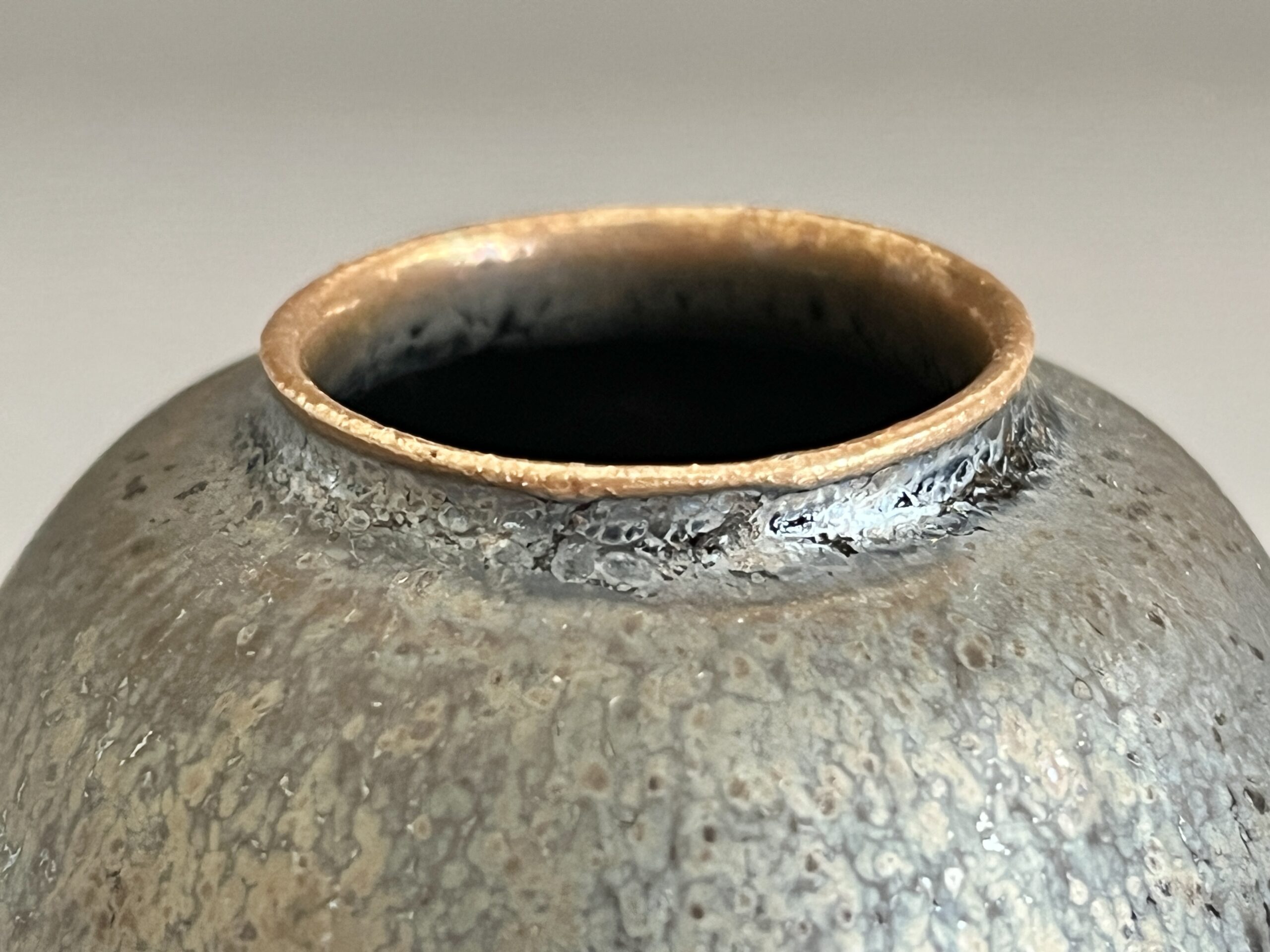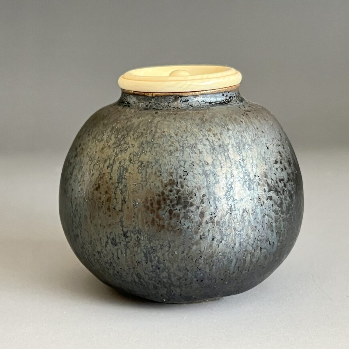 ★ 鎌田幸二 掻き銘 窯変 銀漿天目 茄子茶入 仕覆 角龍金襴 茶道具の陶印