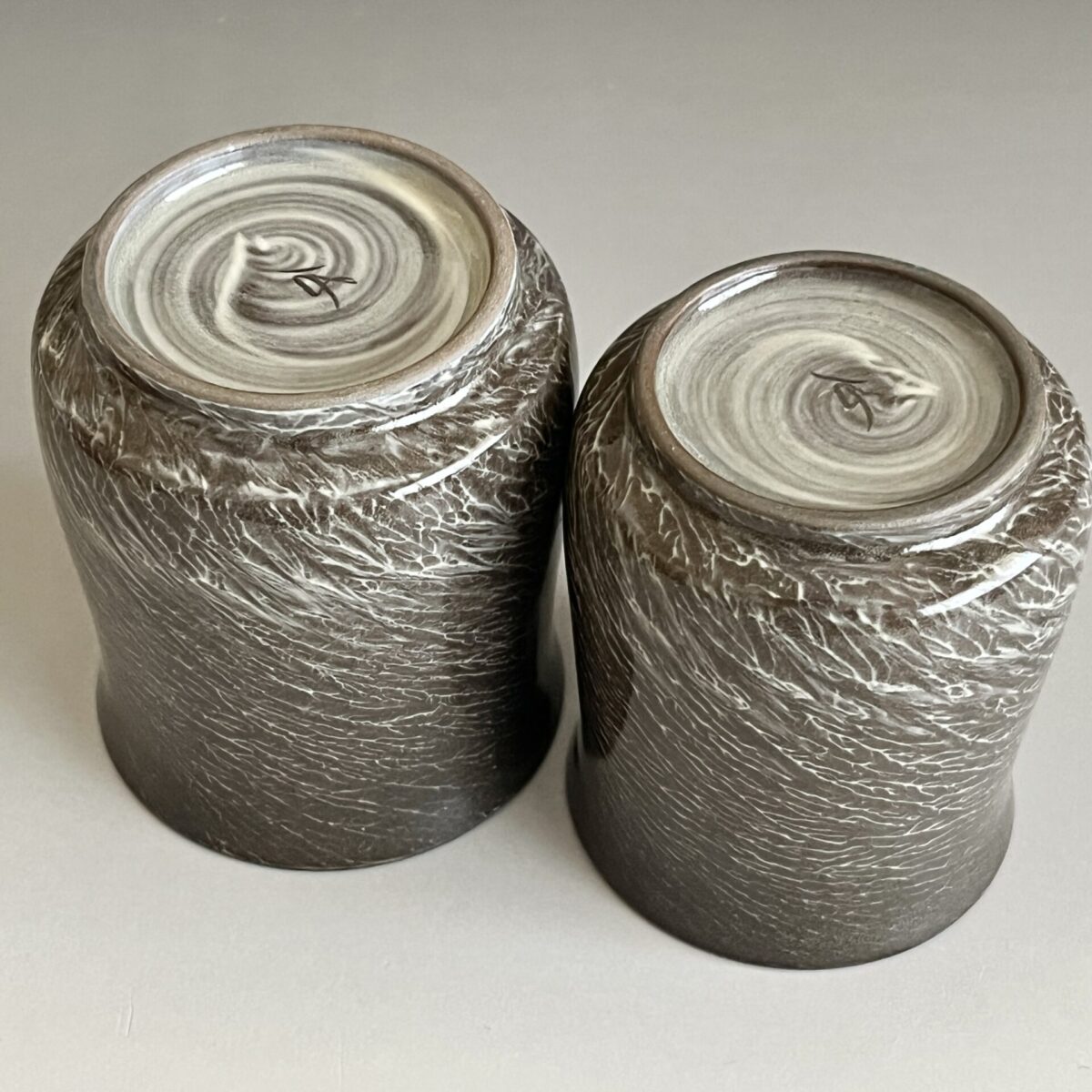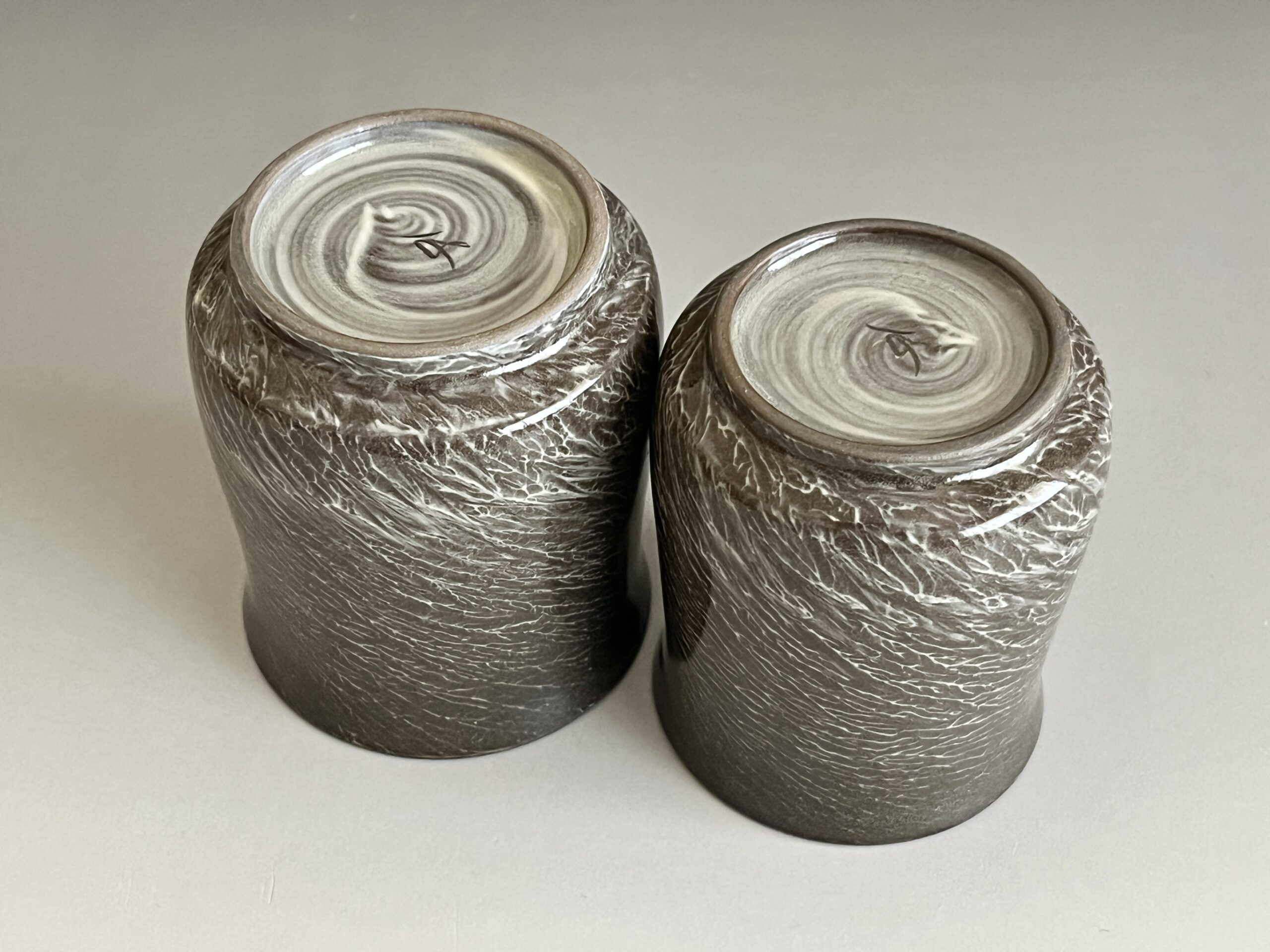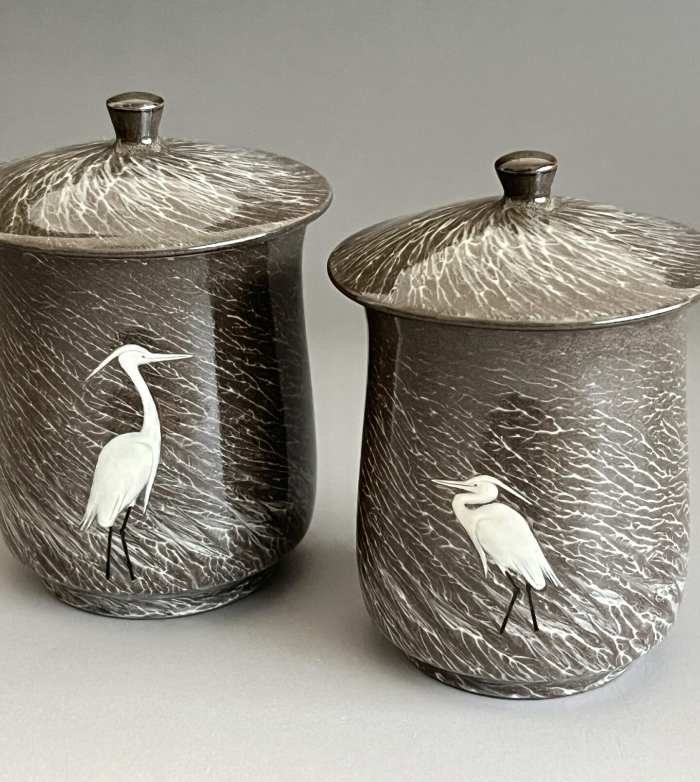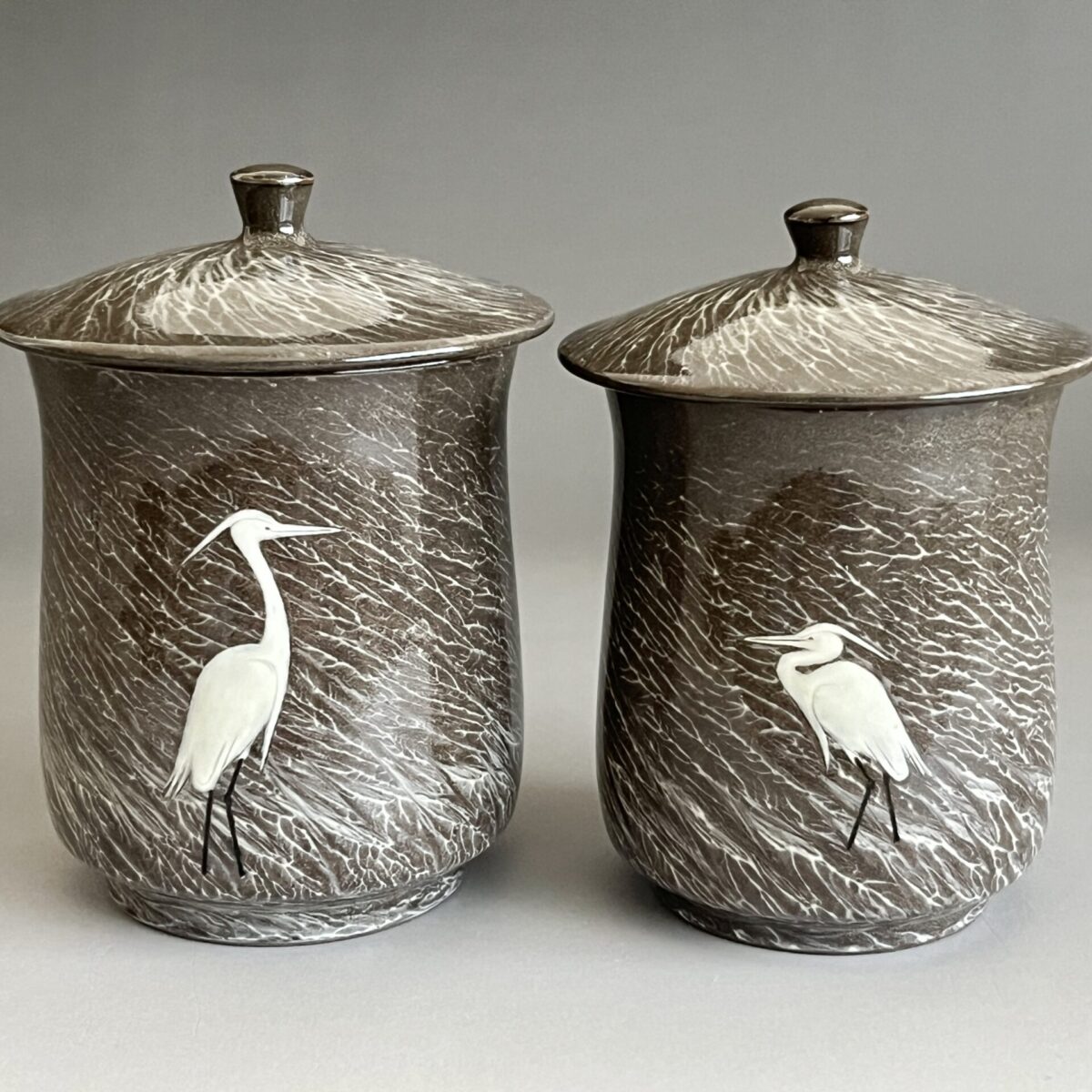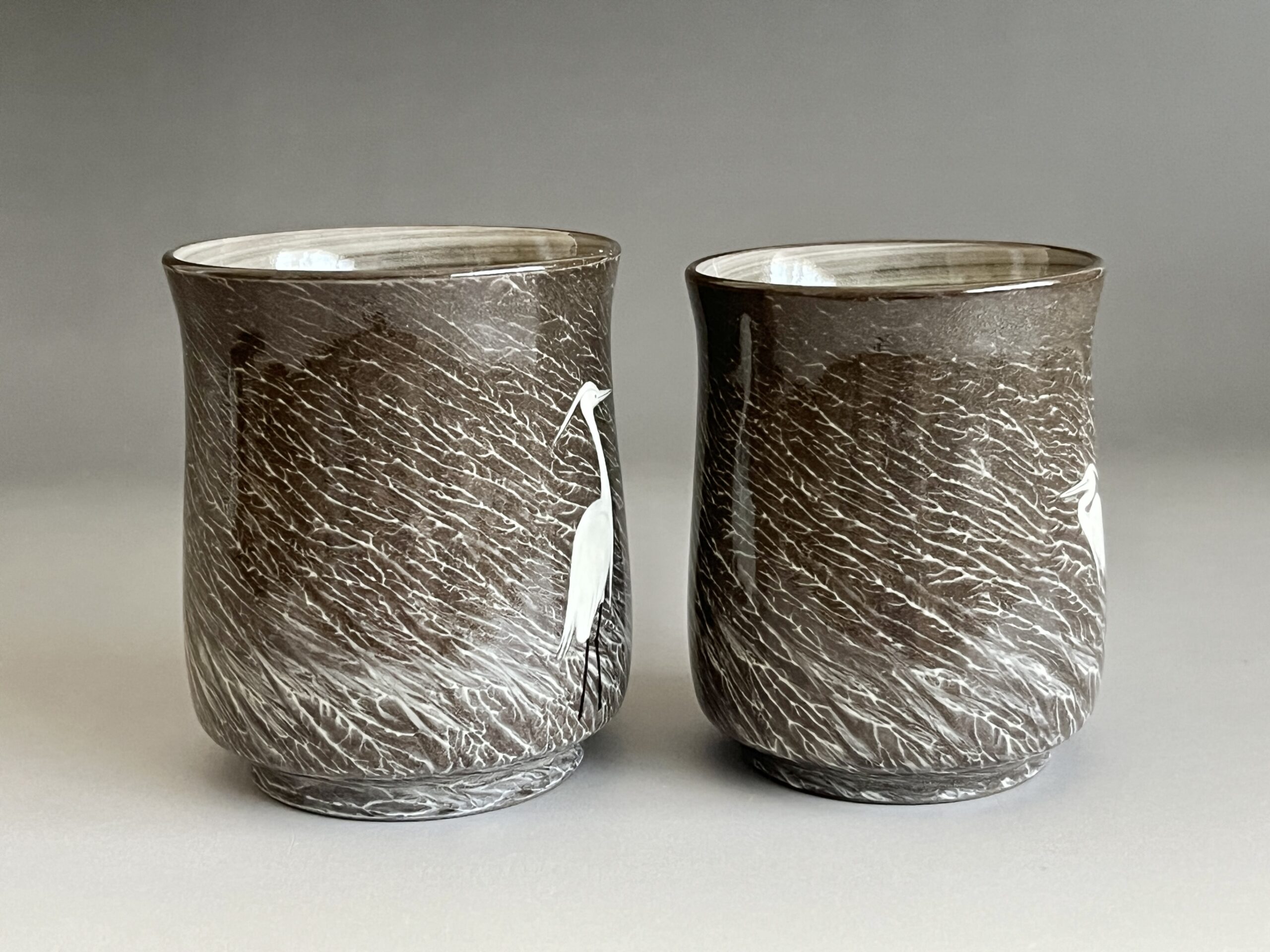 十三代 横石臥牛 現川焼 白鷺 夫婦蓋付湯呑 二客 湯碗の陶印
