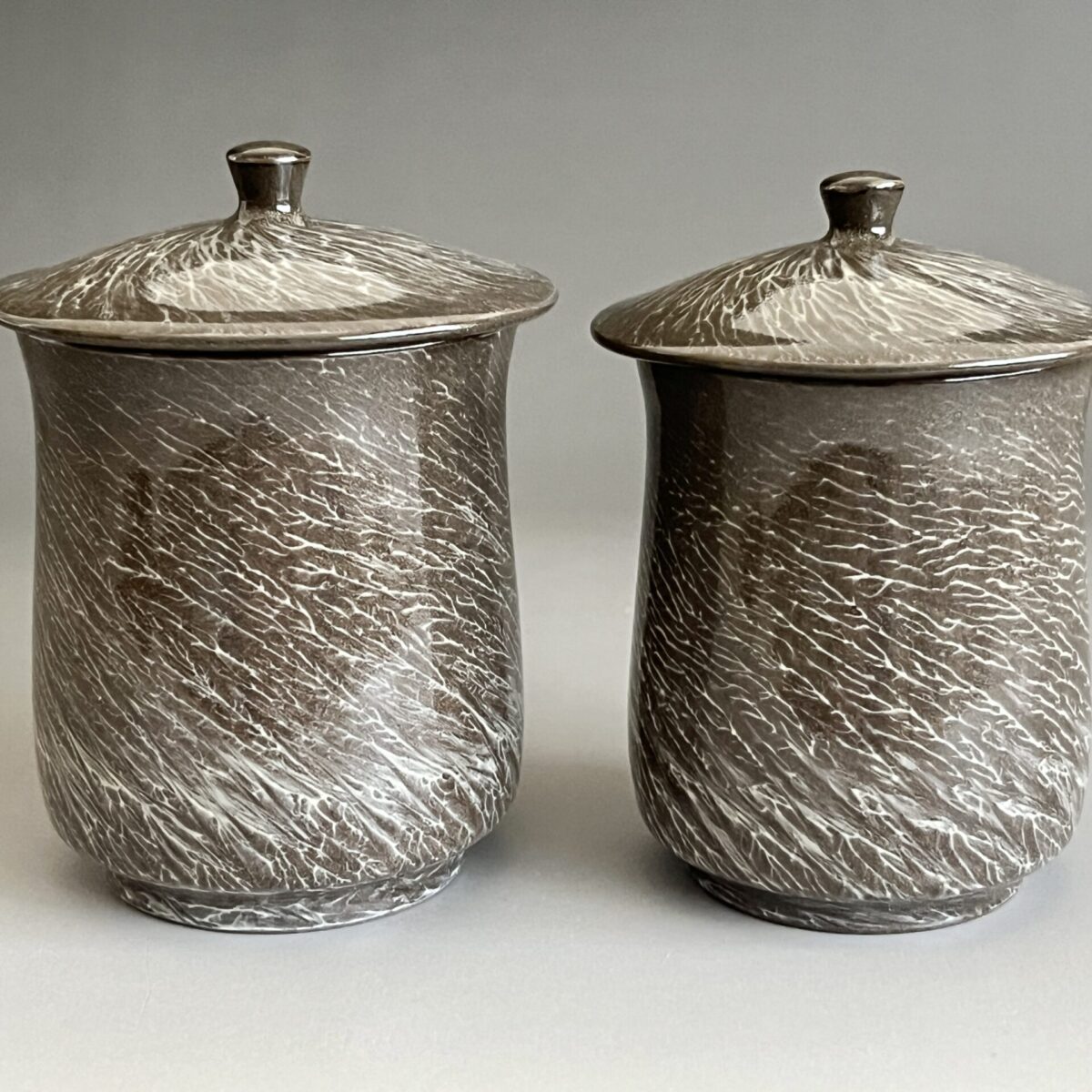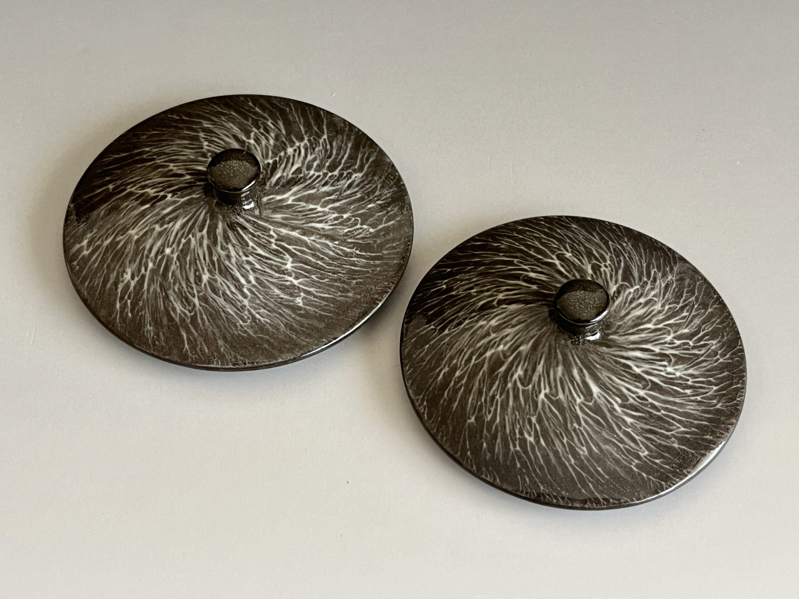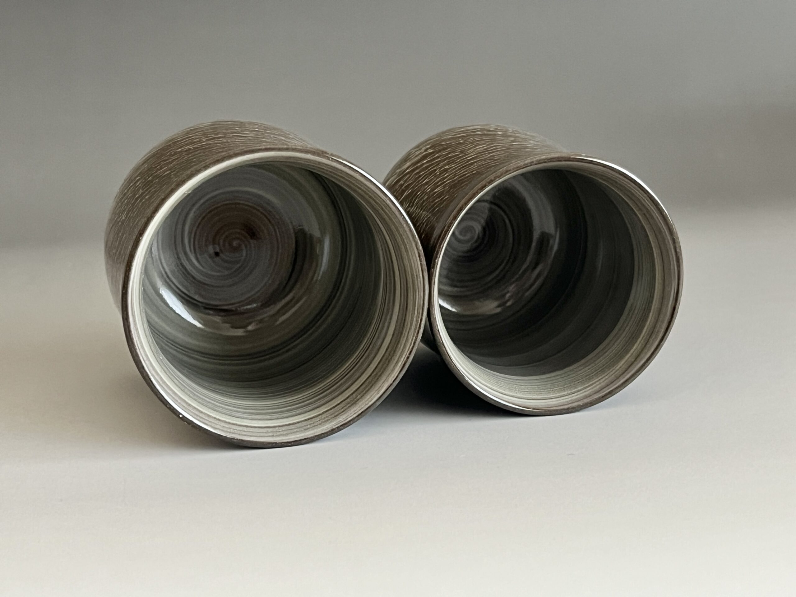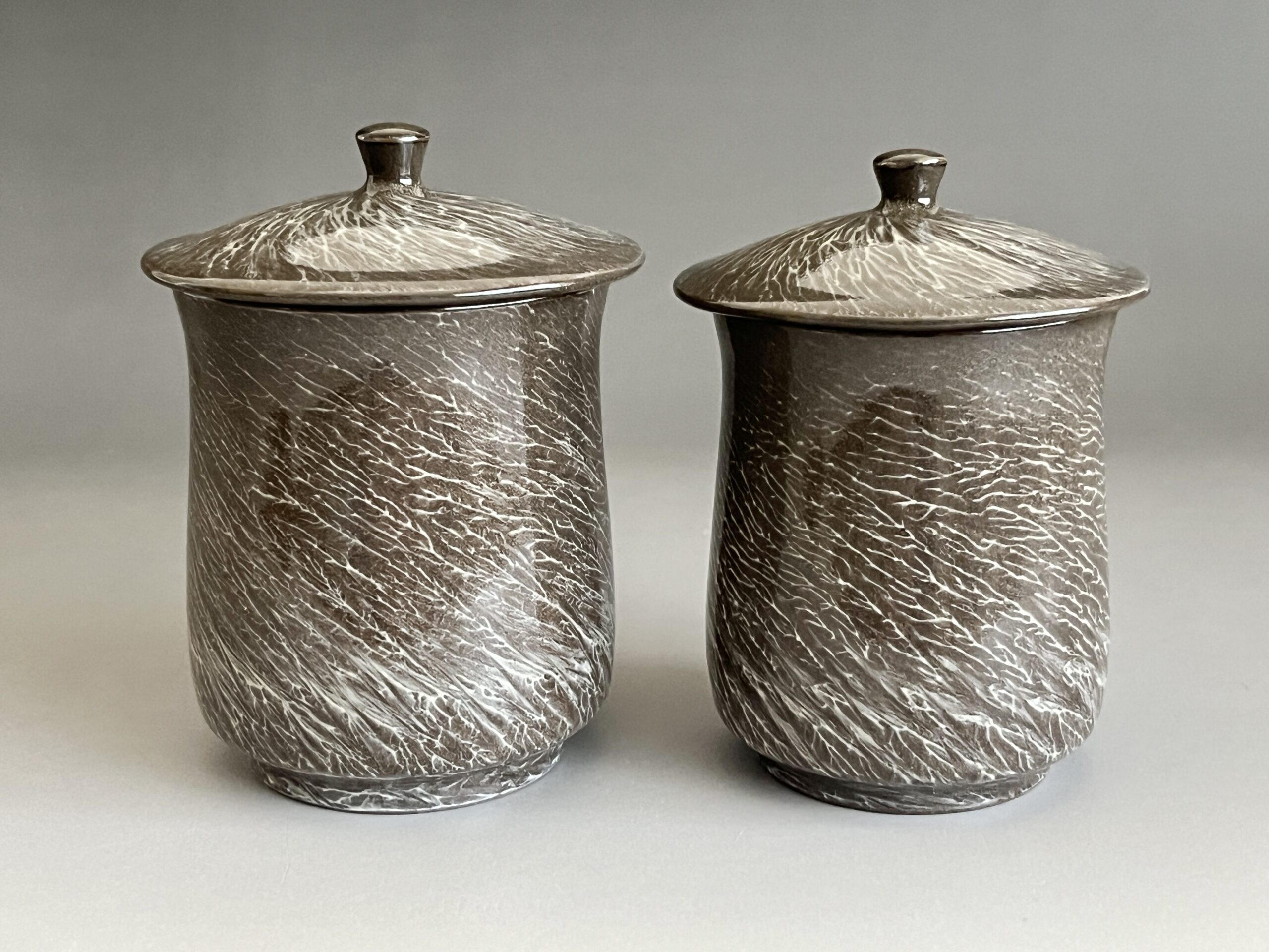 十三代 横石臥牛 現川焼 白鷺 夫婦蓋付湯呑 二客 湯碗の陶印