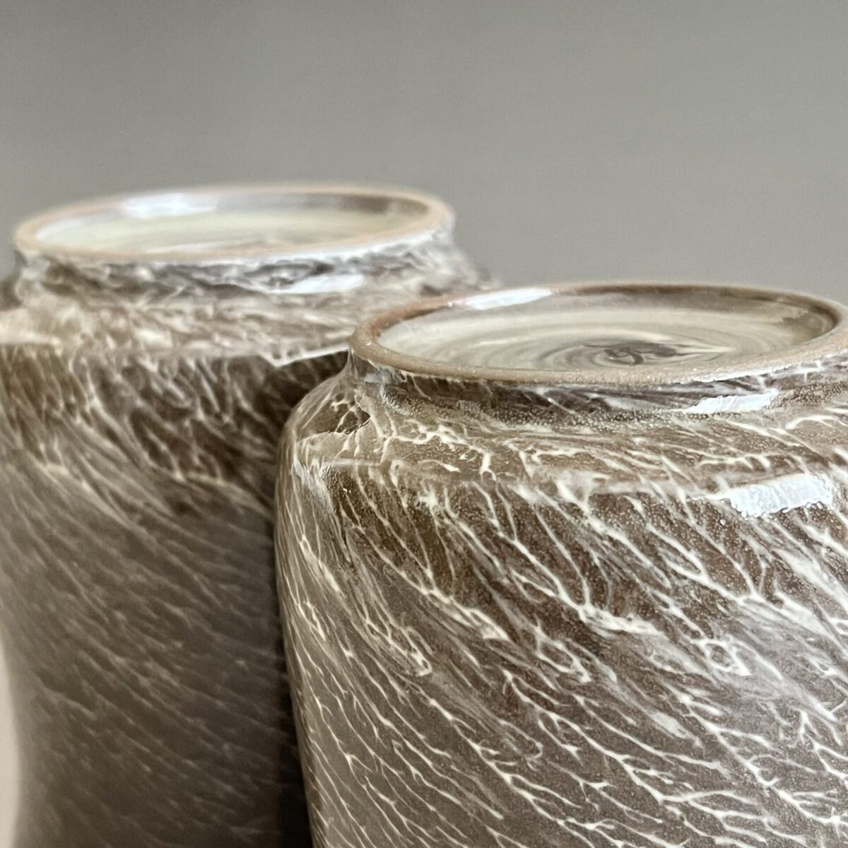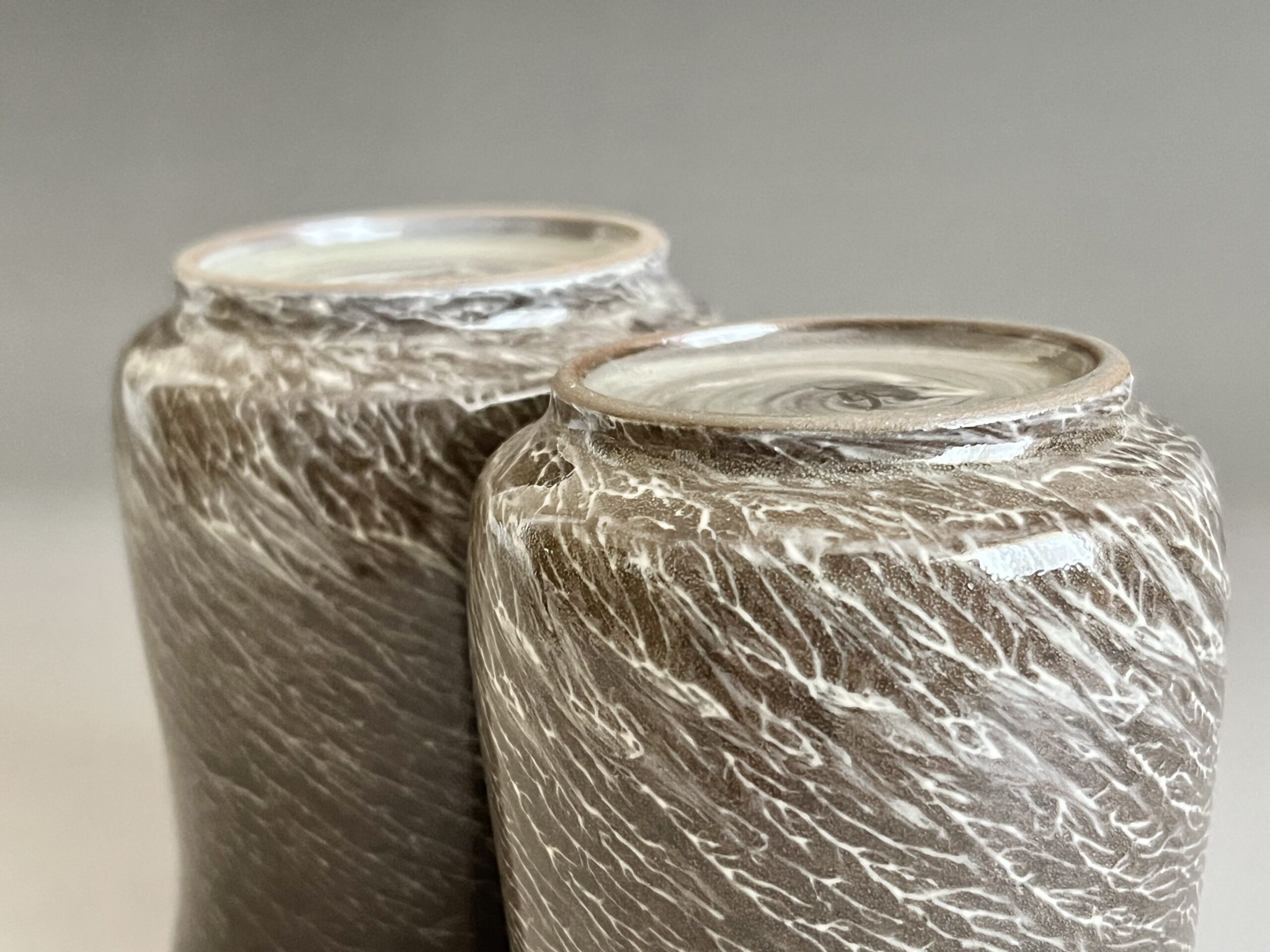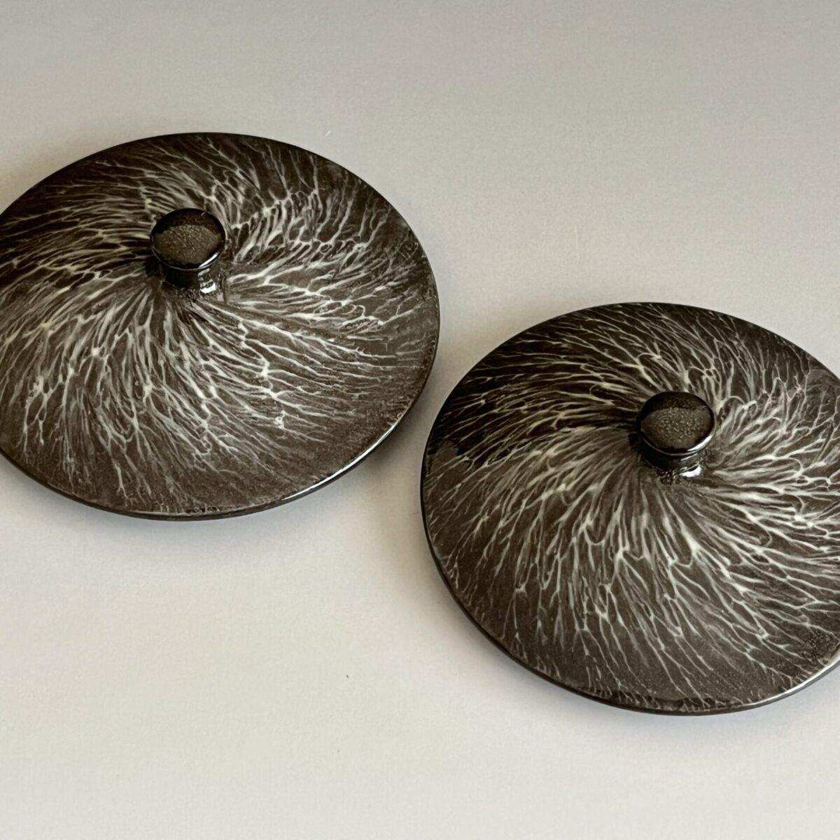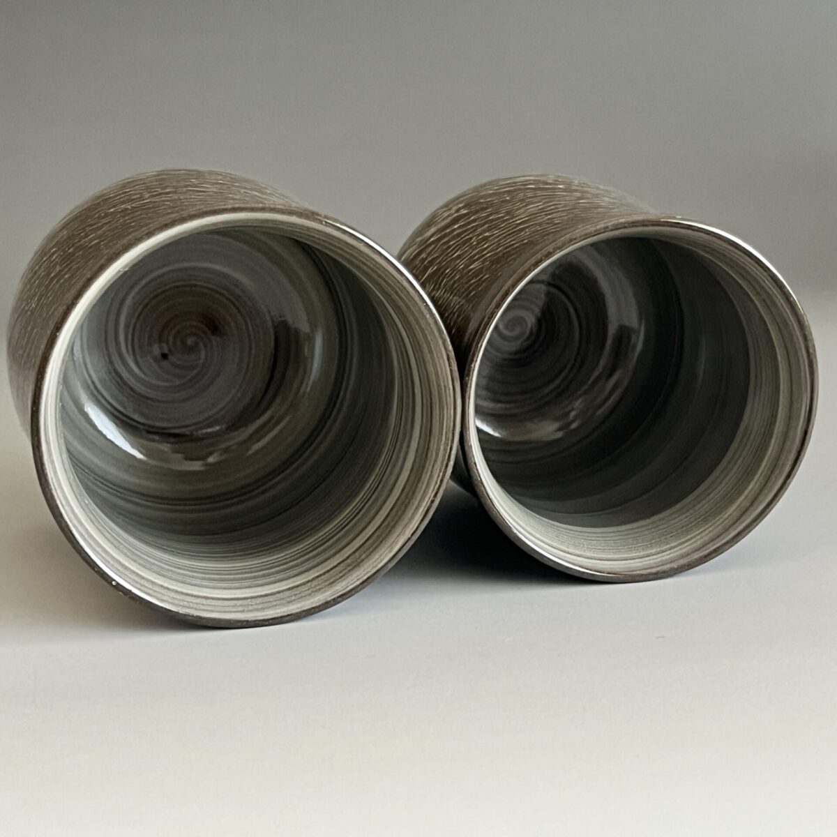十三代 横石臥牛 現川焼 白鷺 夫婦蓋付湯呑 二客 湯碗の陶印
