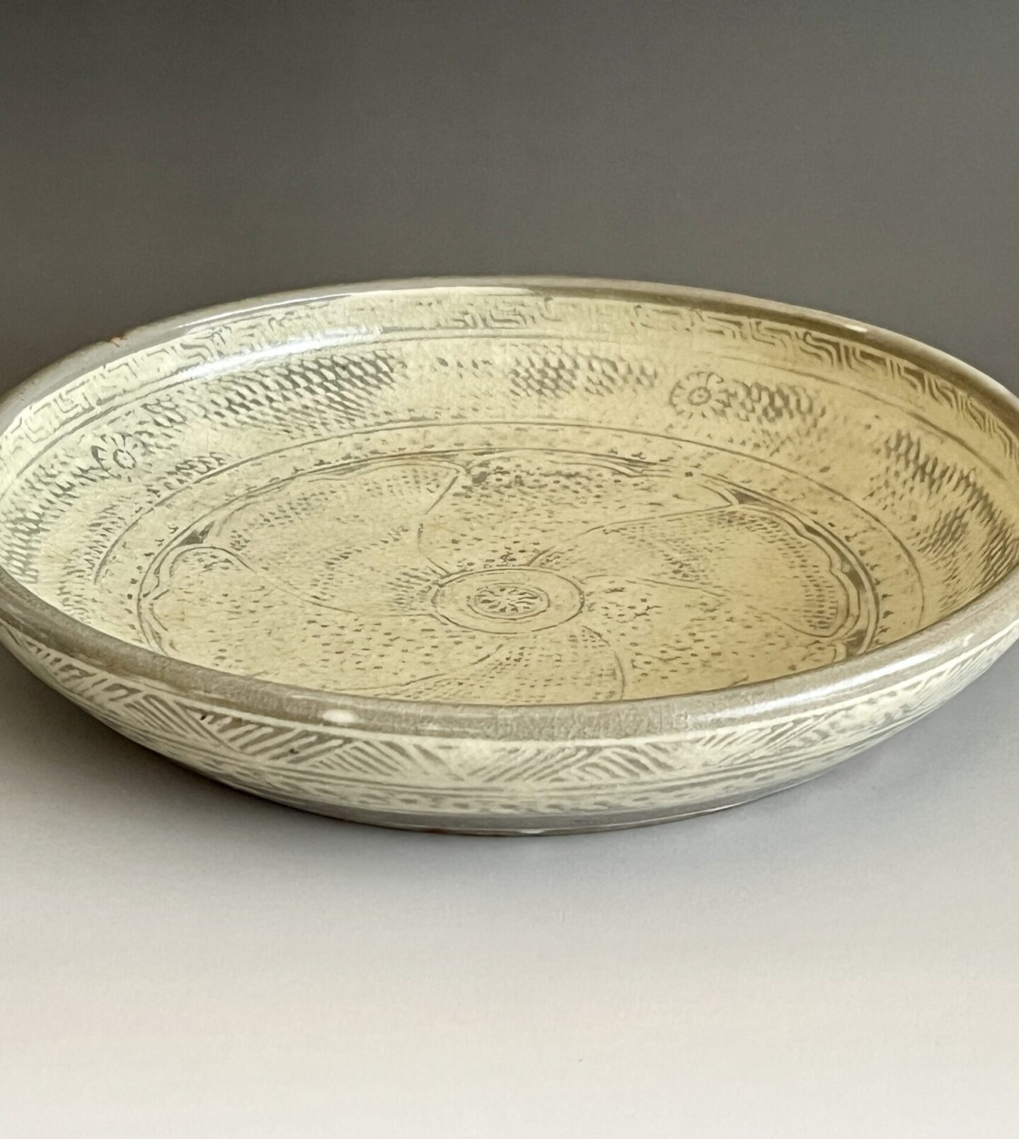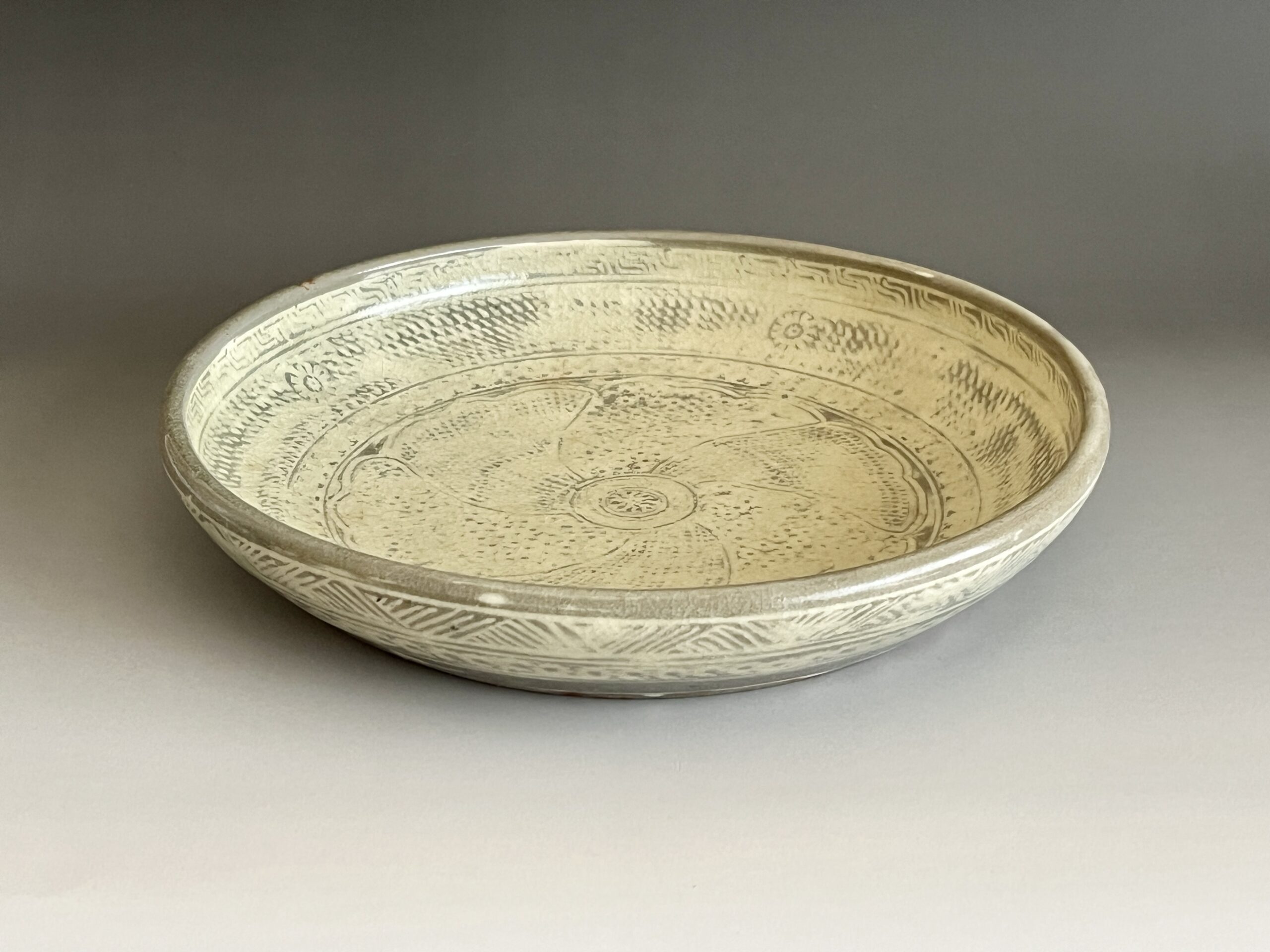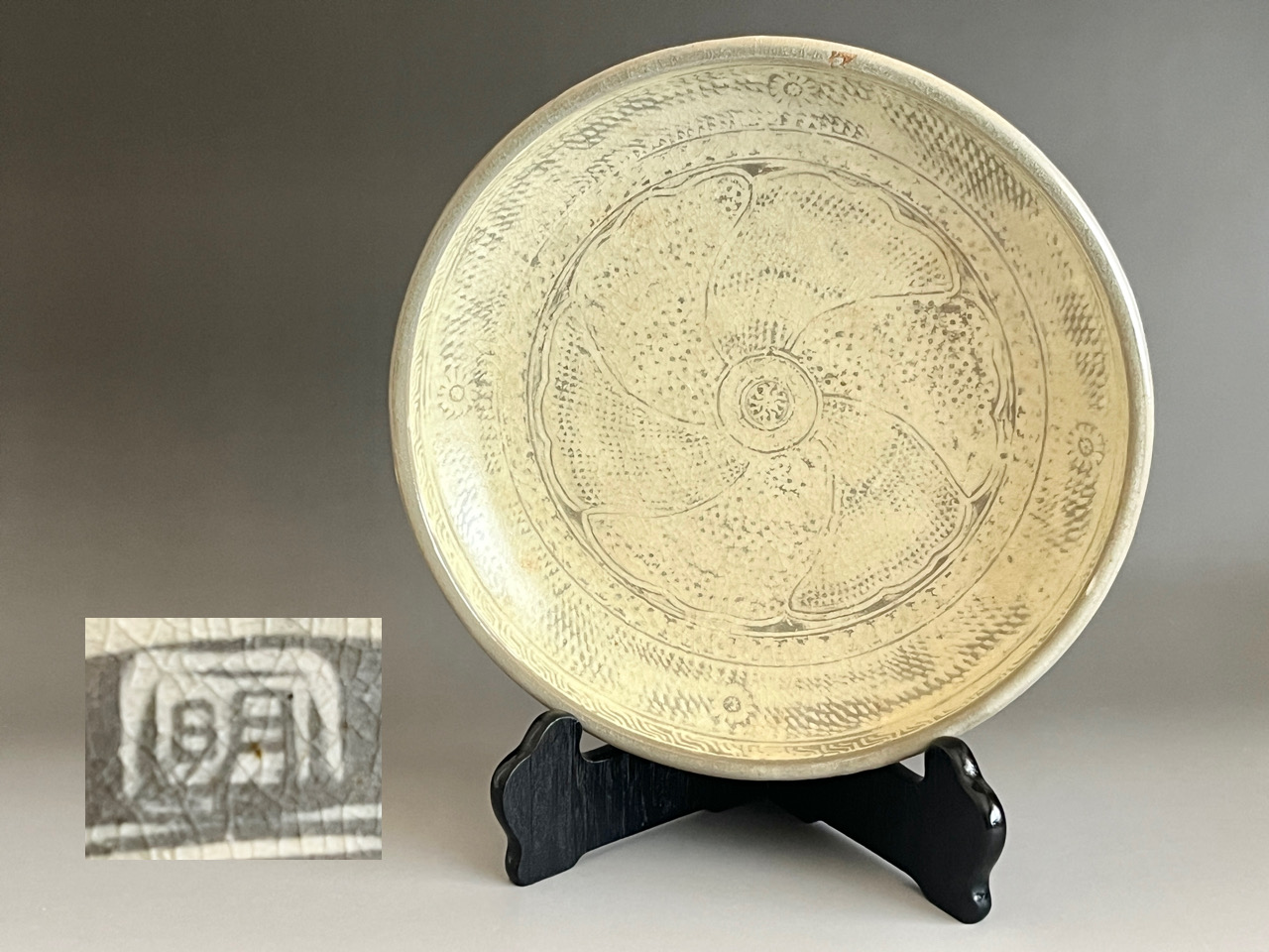 ★ 吉田明 (師 江崎一生) 花三島 皿 胴径24.3㎝