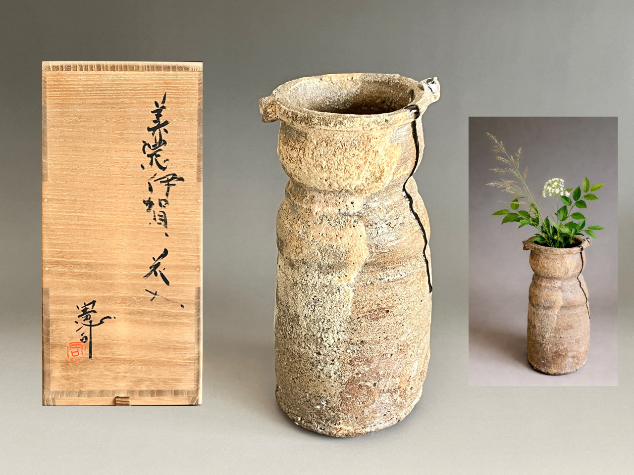 原憲司 (師 人間国宝 加藤卓男) 美濃伊賀 花入 花瓶 花生 花器 茶道具