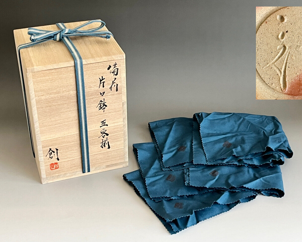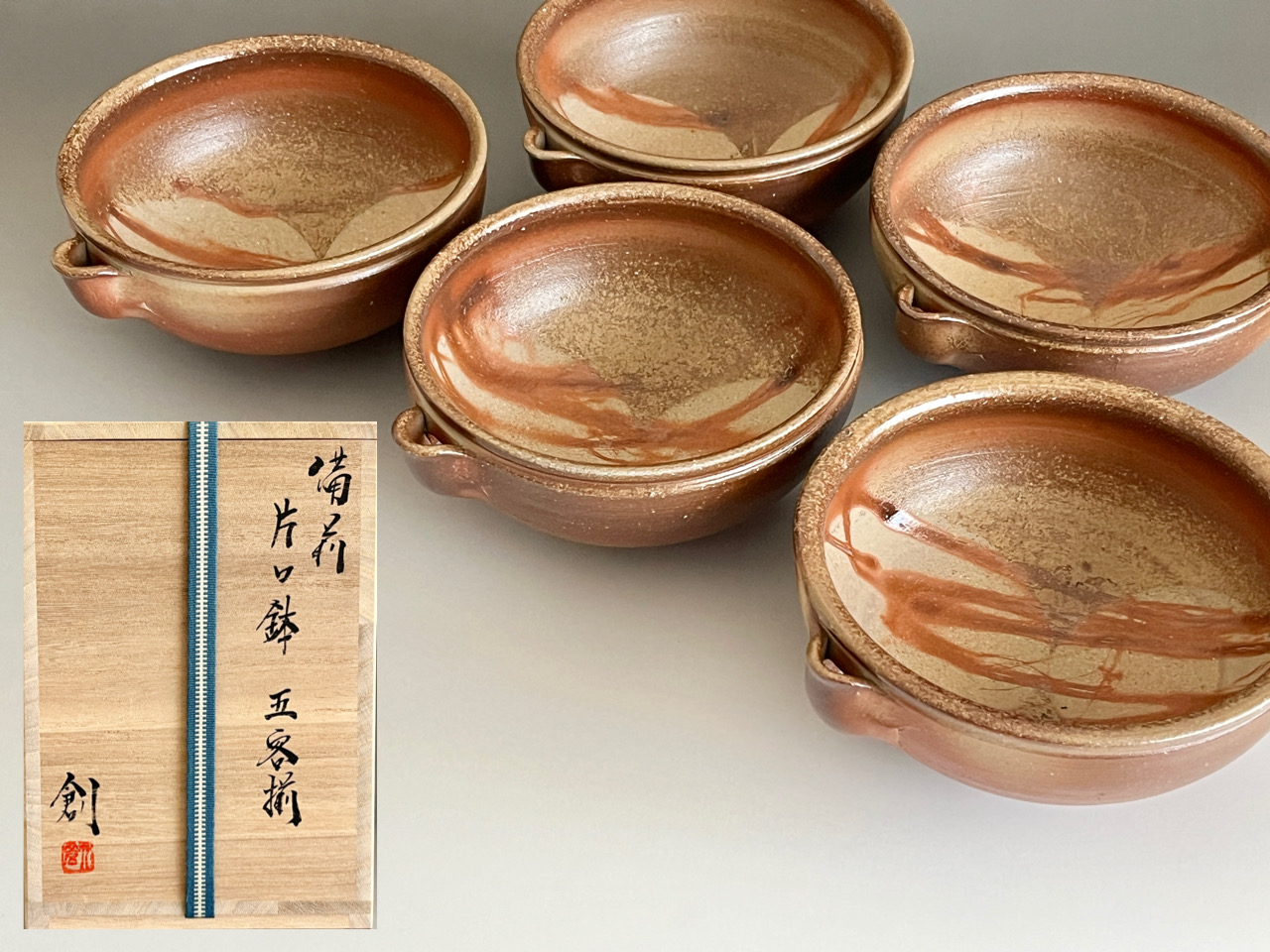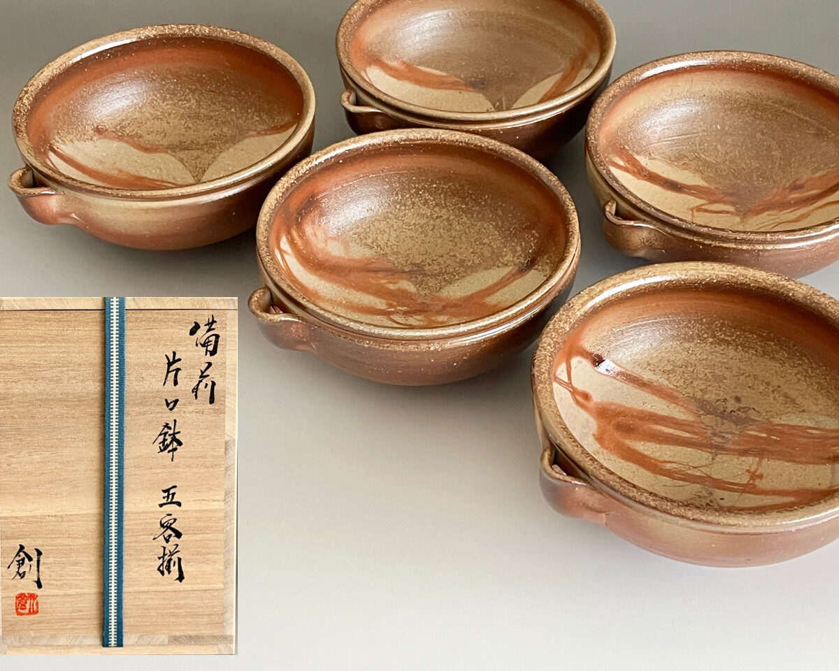伊勢崎創 (父 伊勢崎満) 備前 片口鉢 五客揃 緋襷 向付 小鉢 懐石 会席 和食器