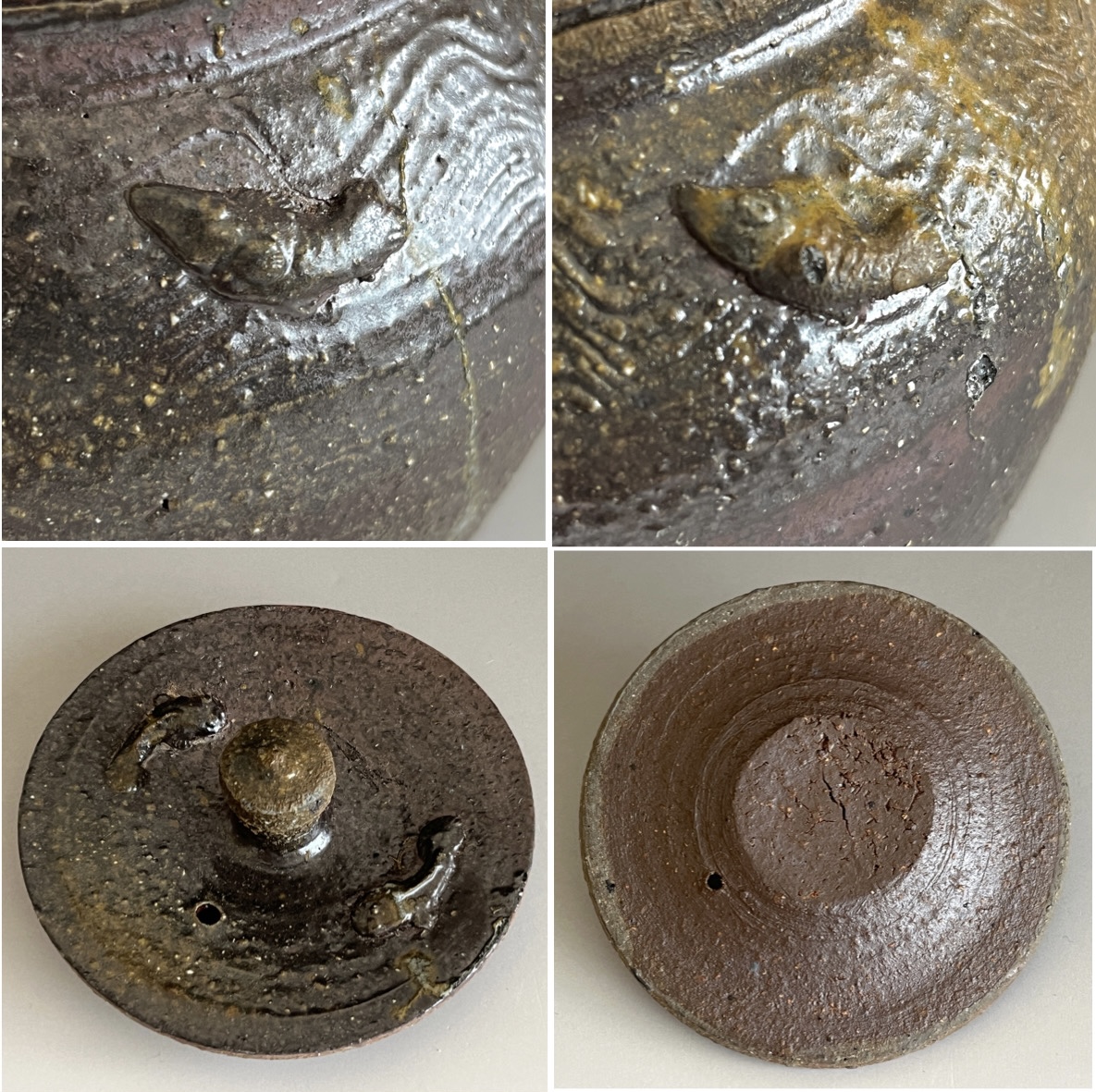 ★ 吉田明 (師 江崎一生) 焼締 手付土瓶 急須 双魚文 茶器