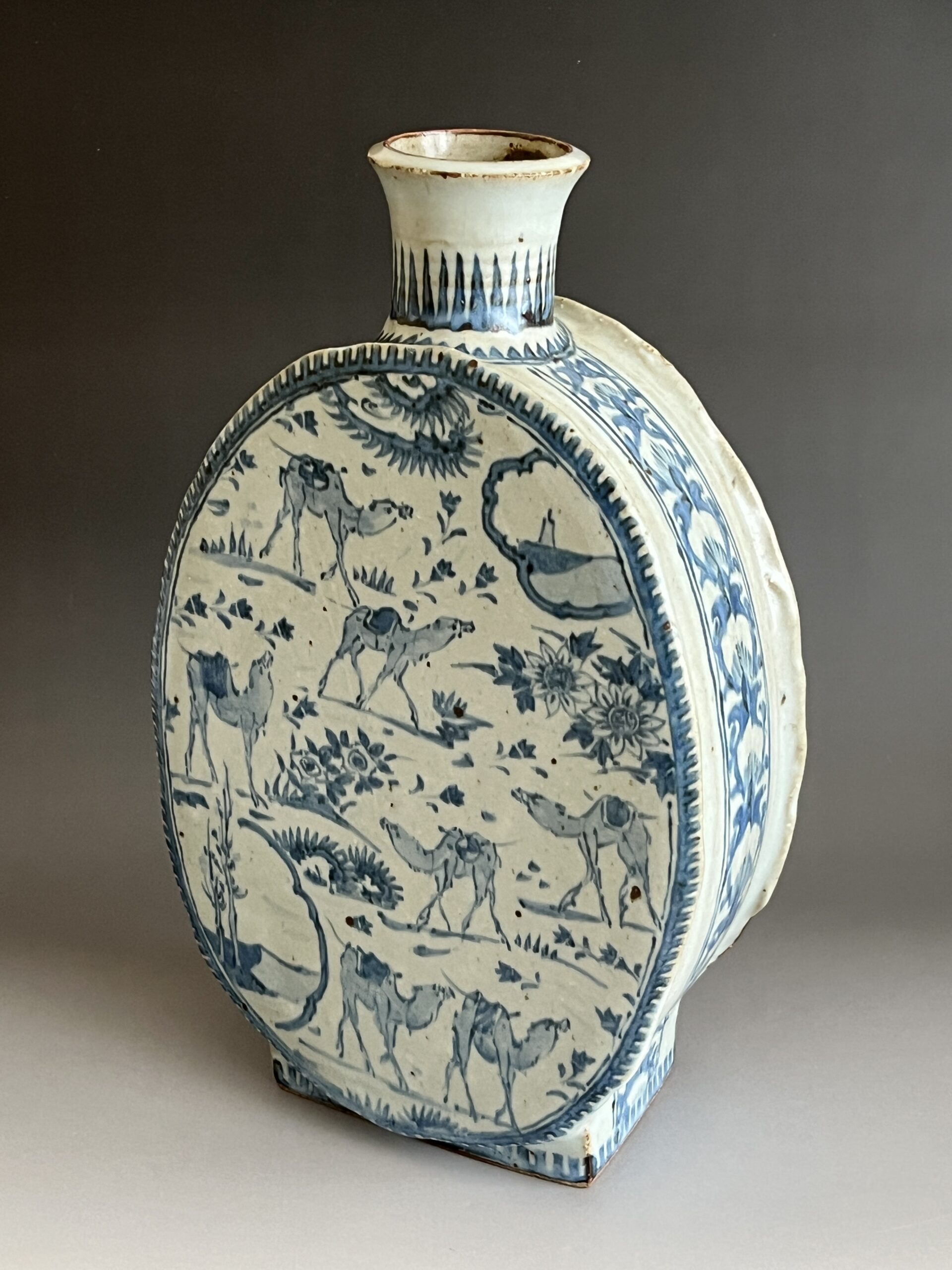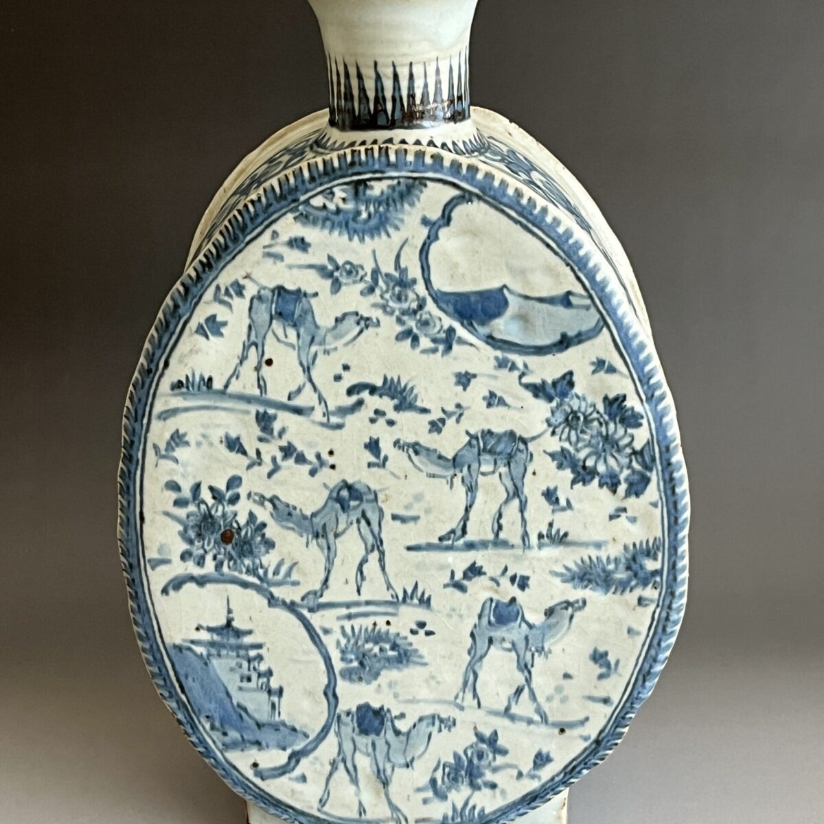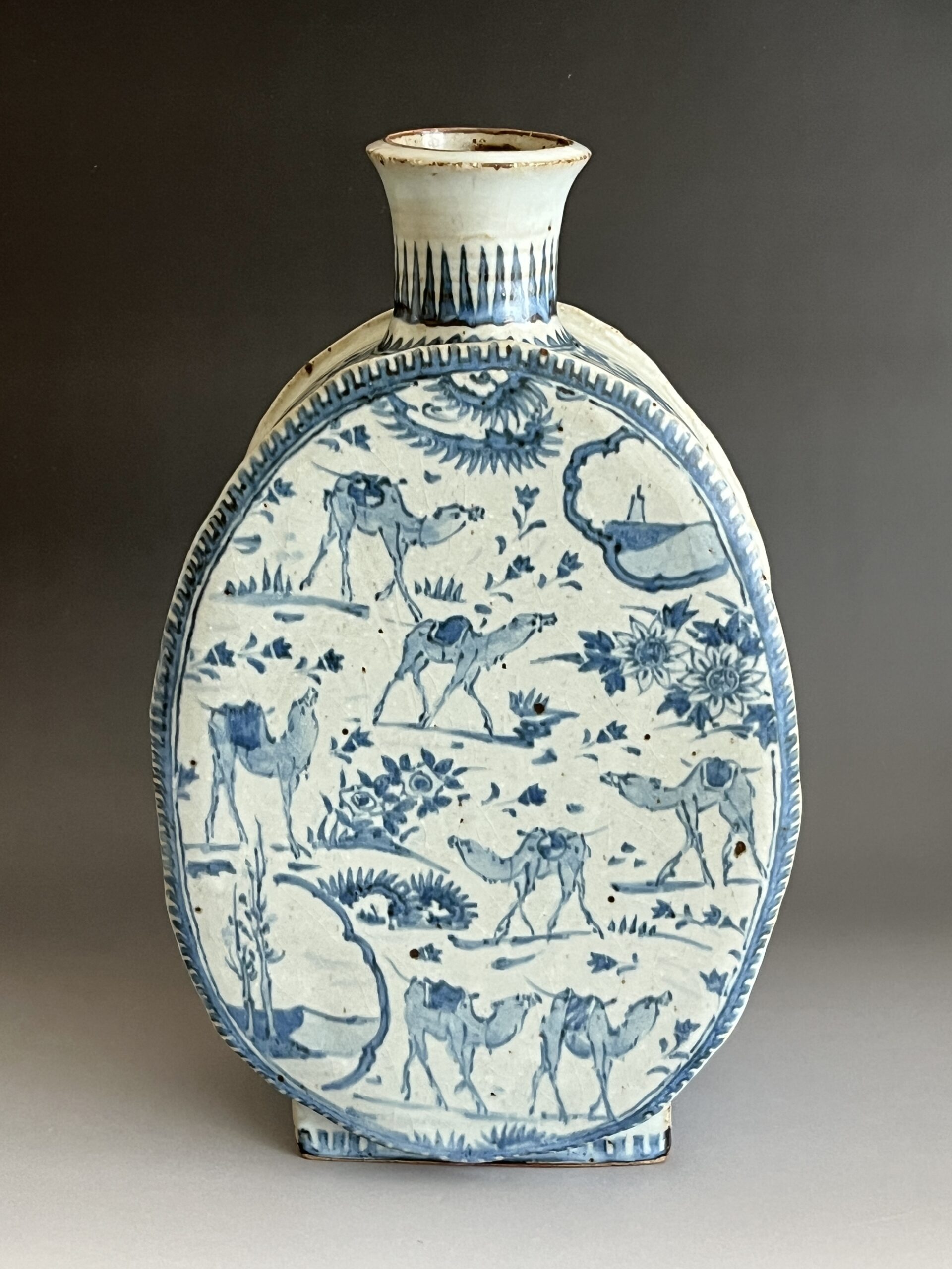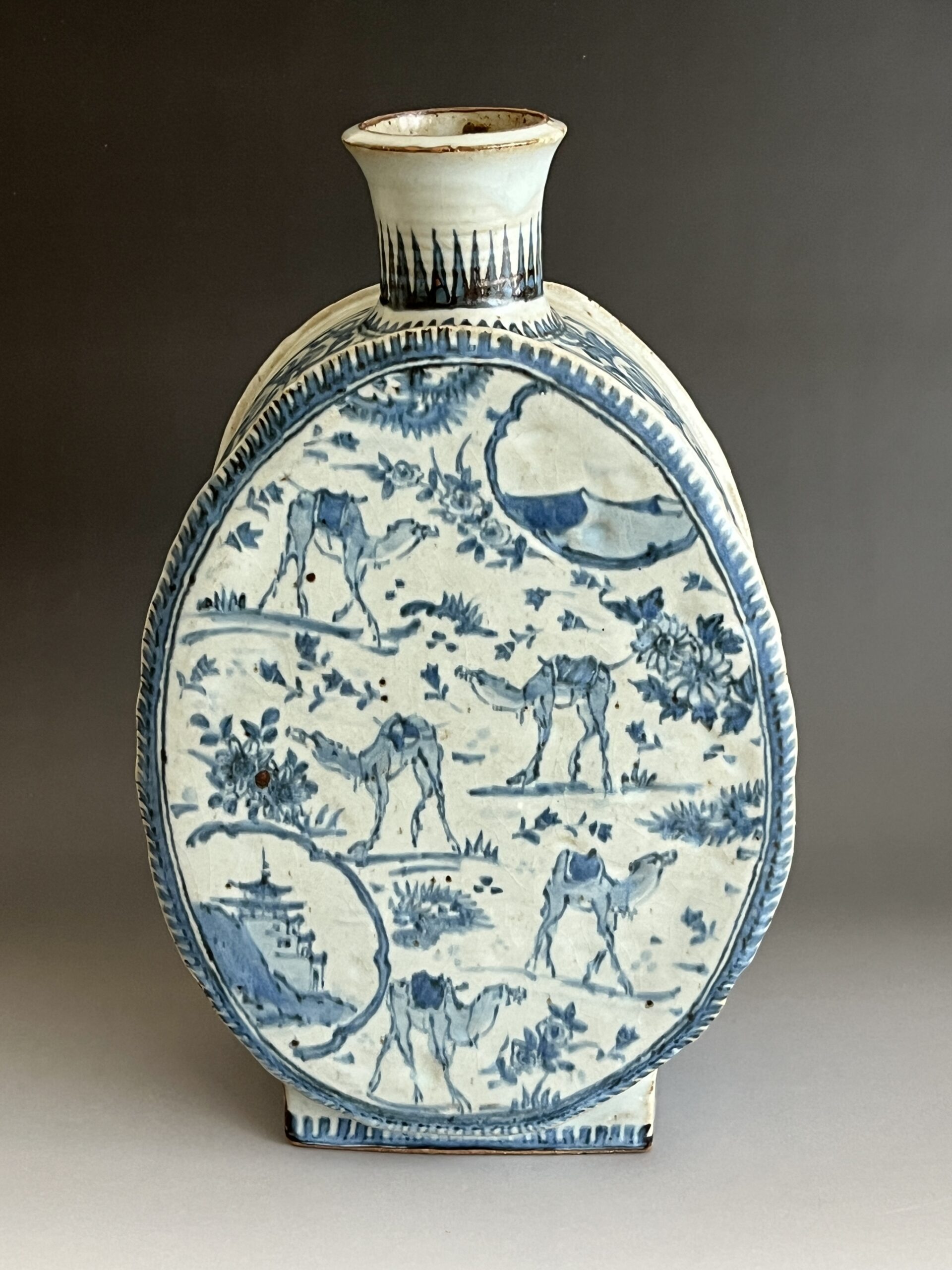 染付 更紗駱駝扁壷