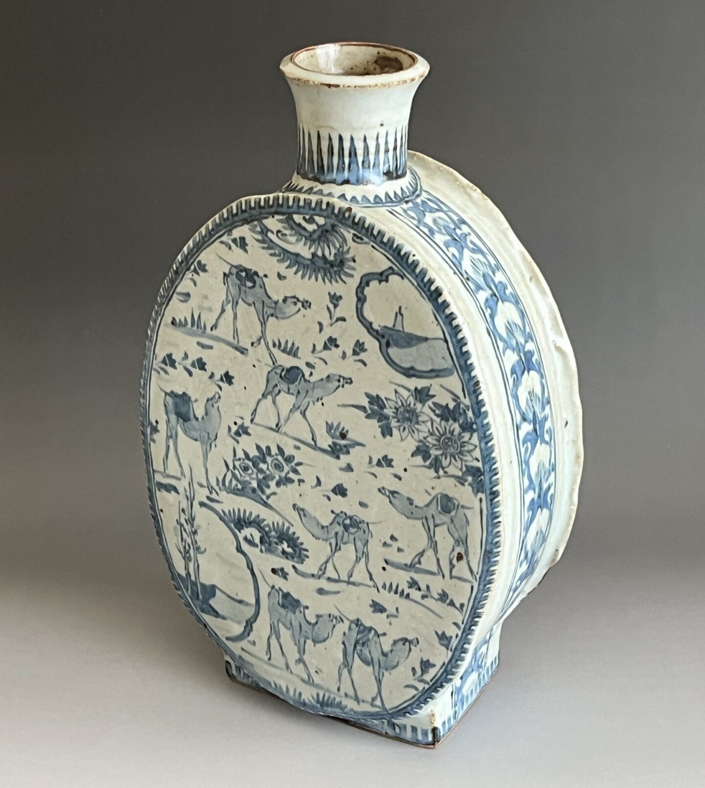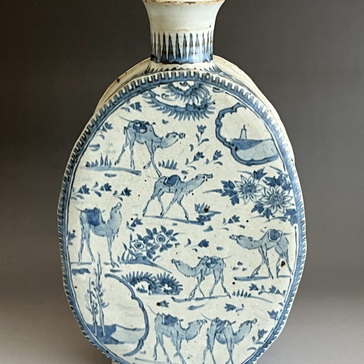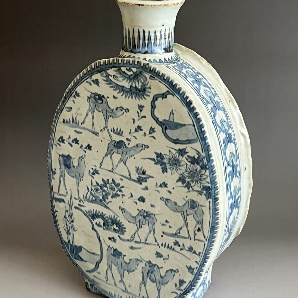 染付 更紗駱駝扁壷