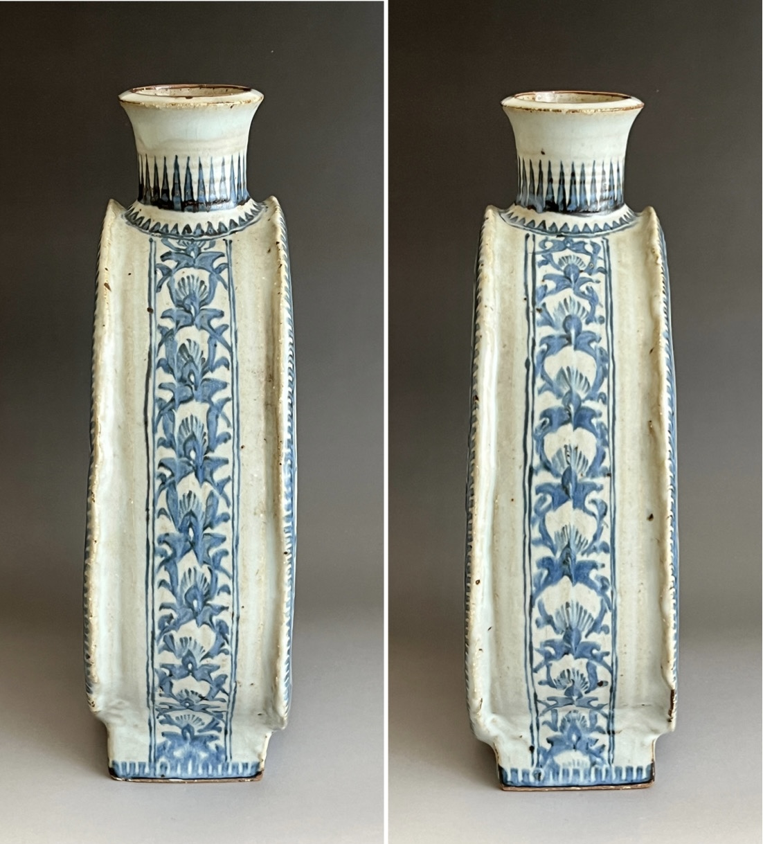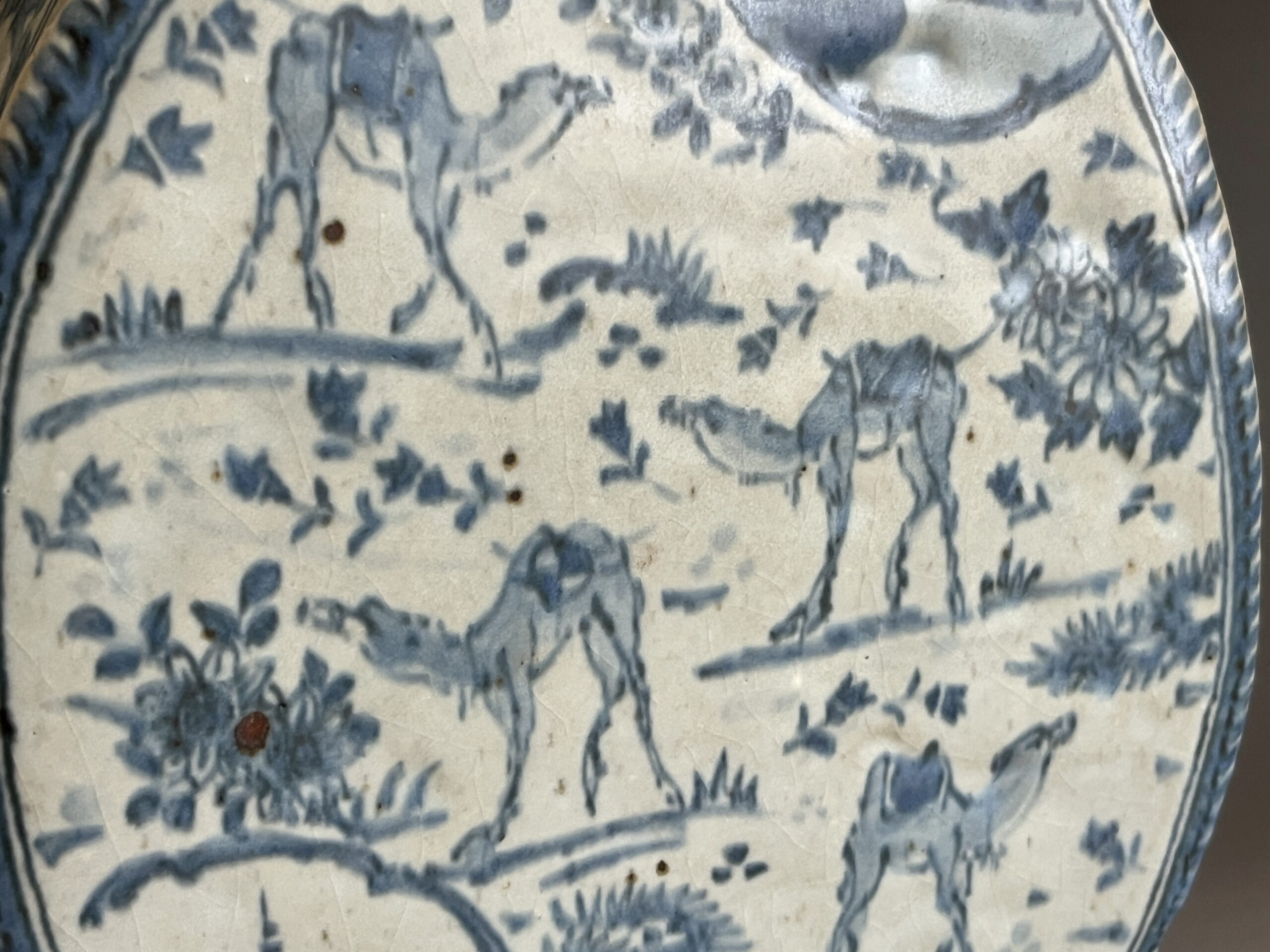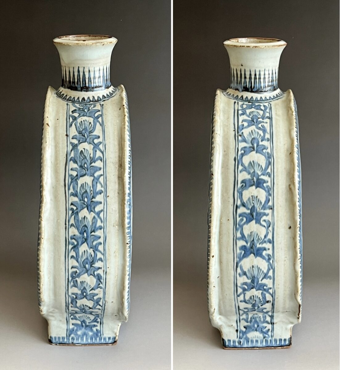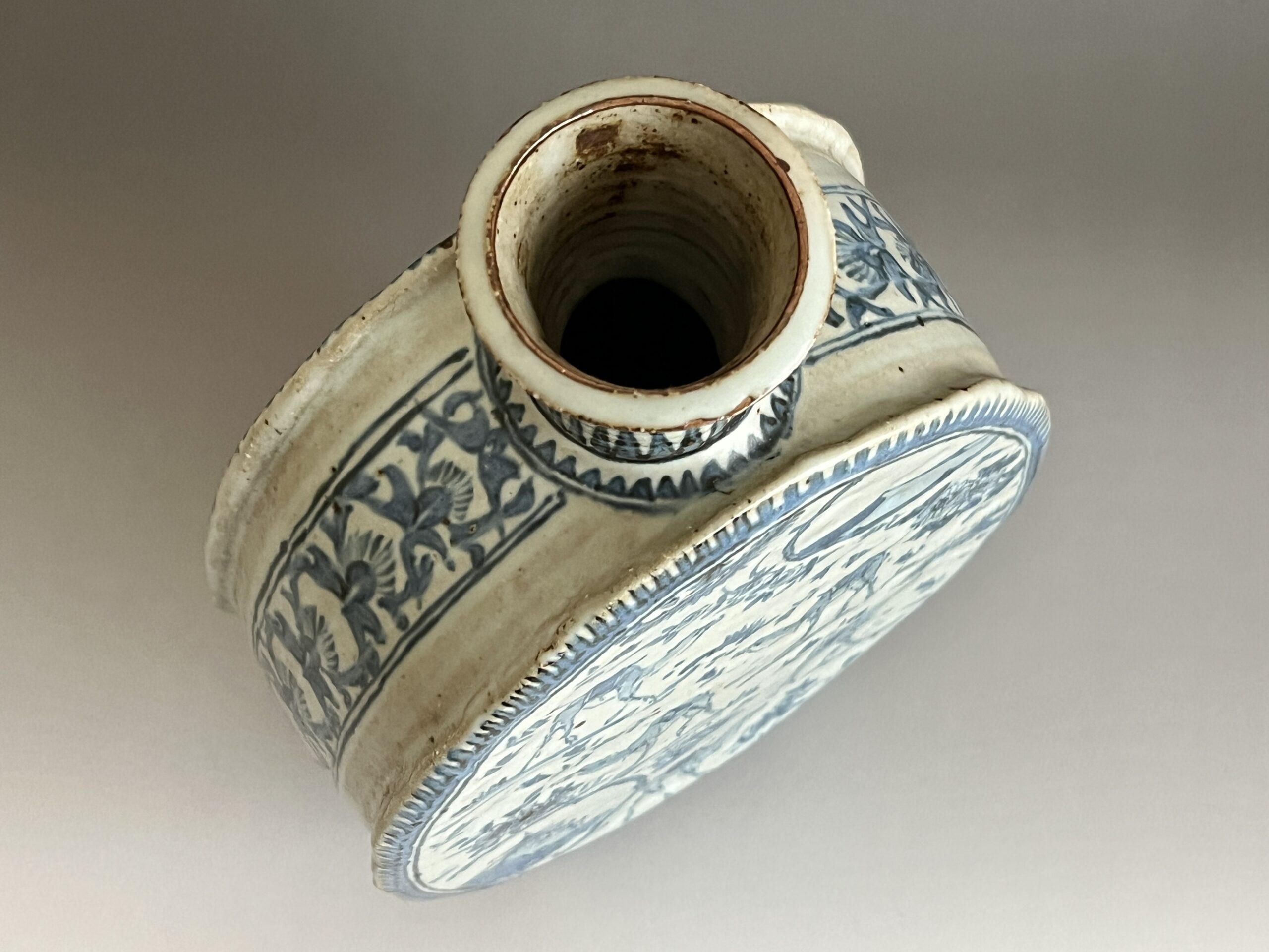 染付 更紗駱駝扁壷