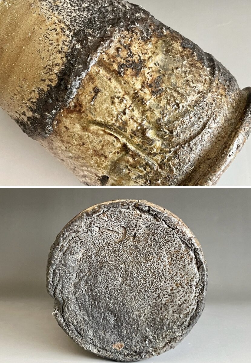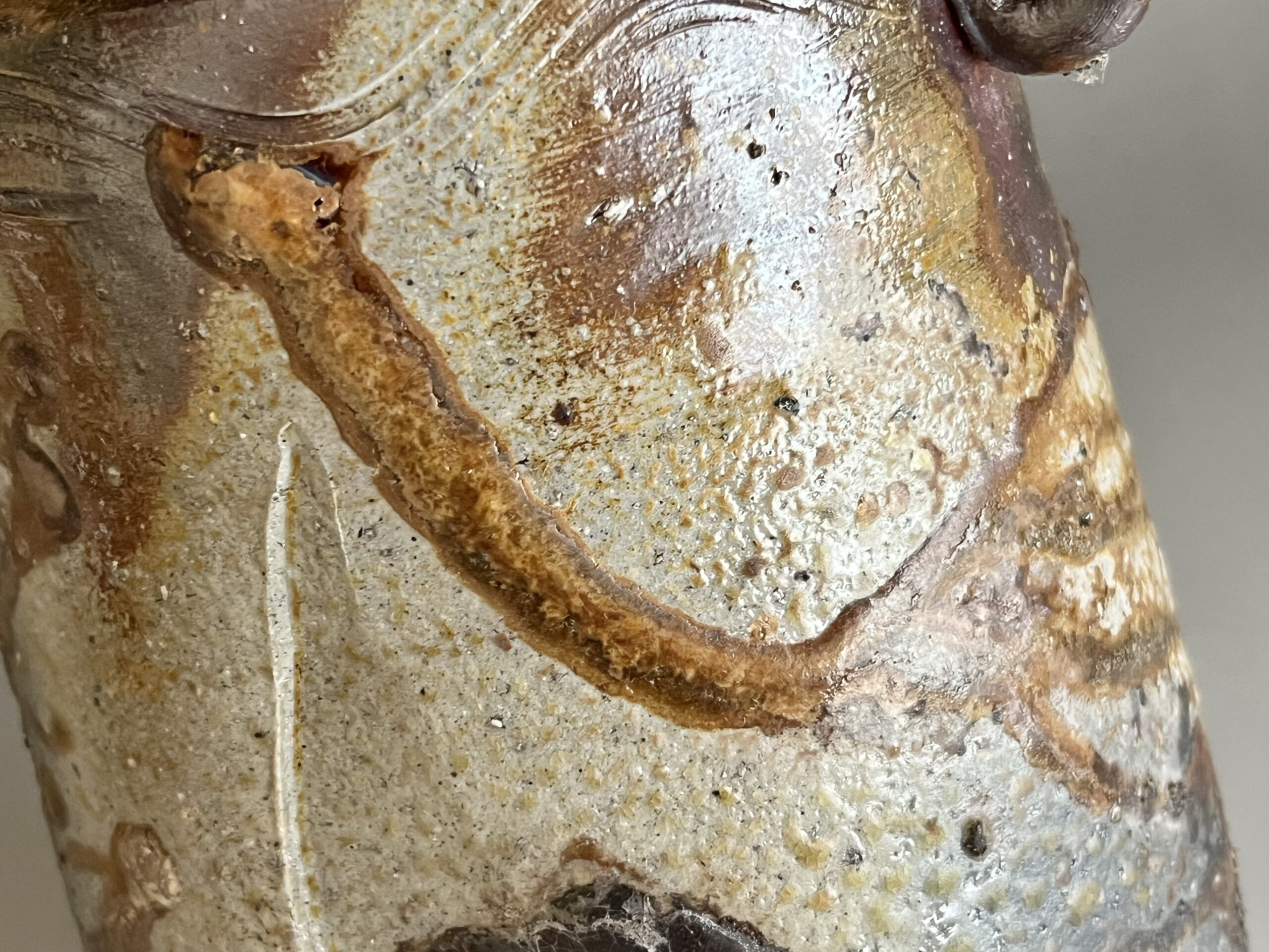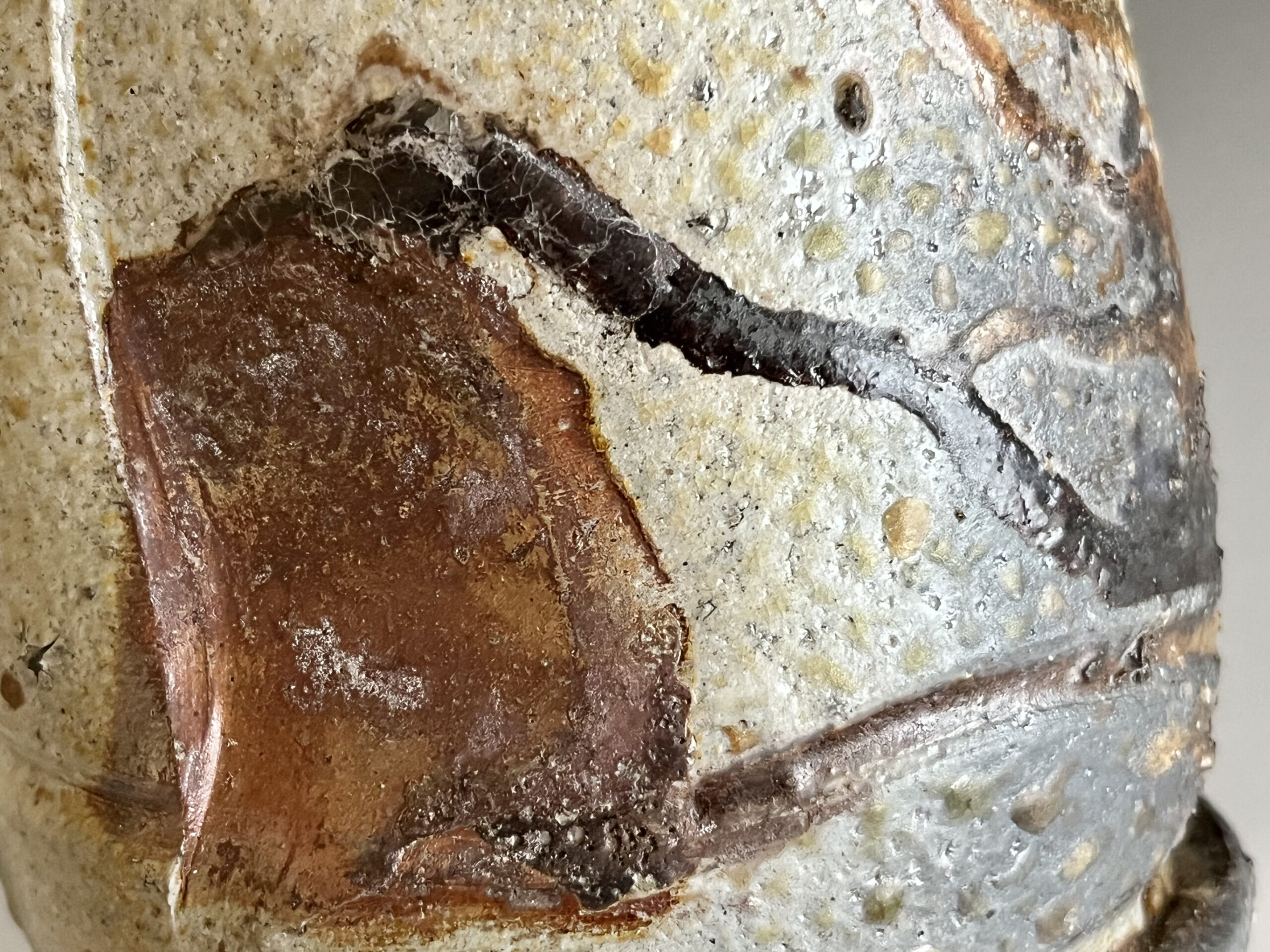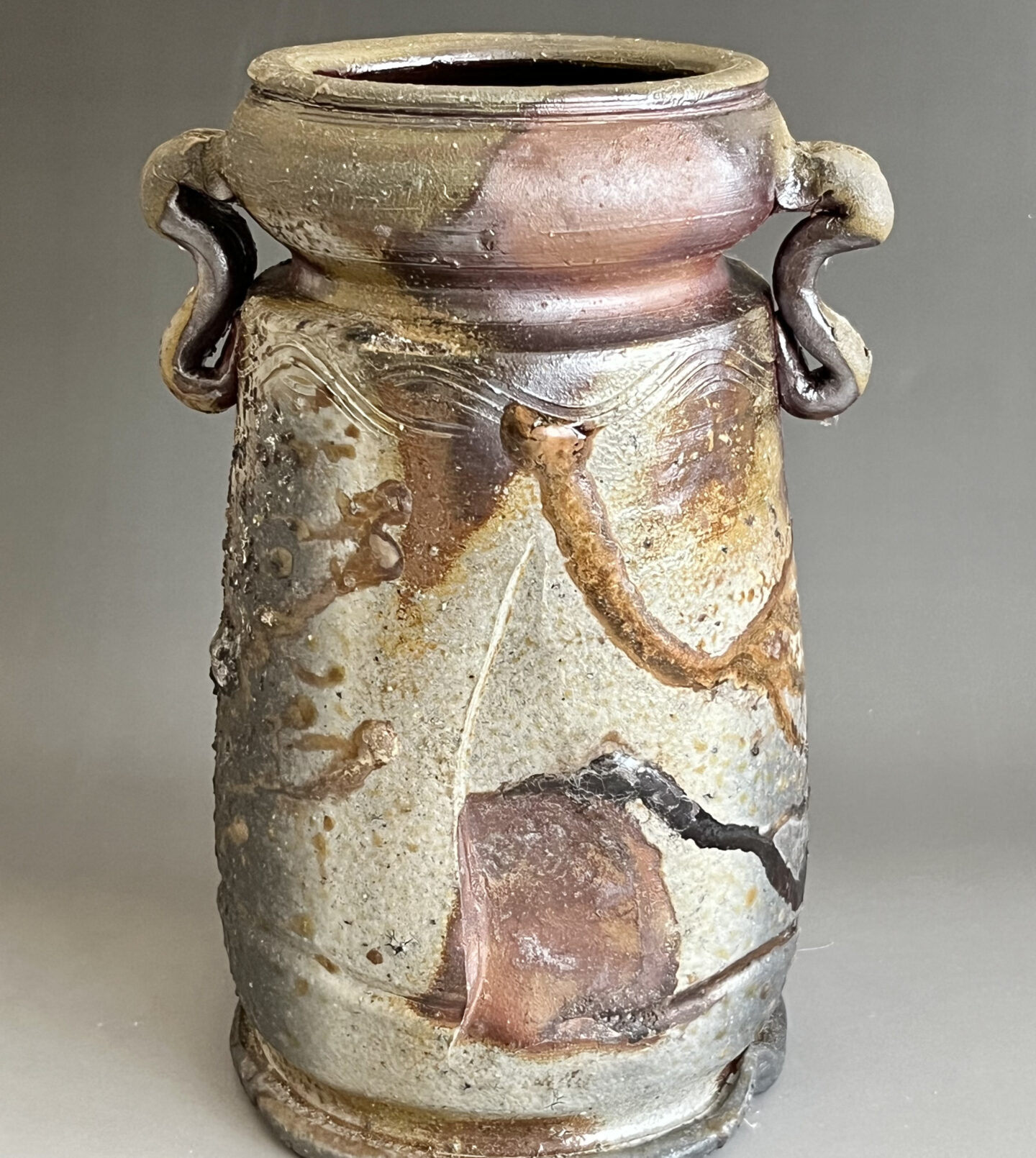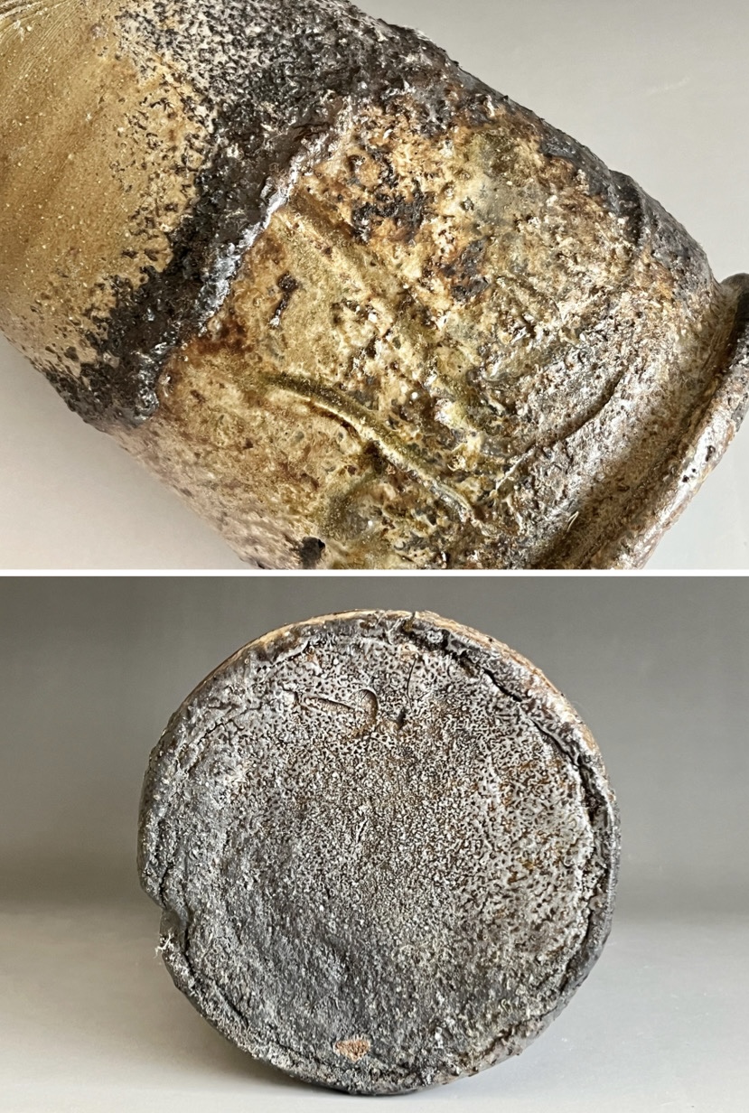西川政美 (師 人間国宝 金重陶陽) 備前 窯変 胡麻 花入 耳付 花生 花瓶 花器 茶道具