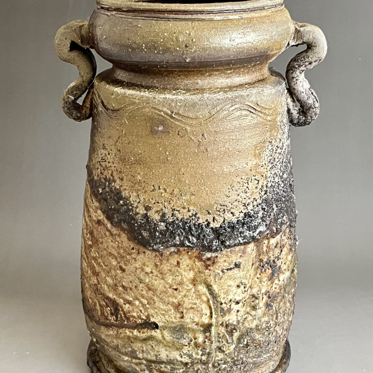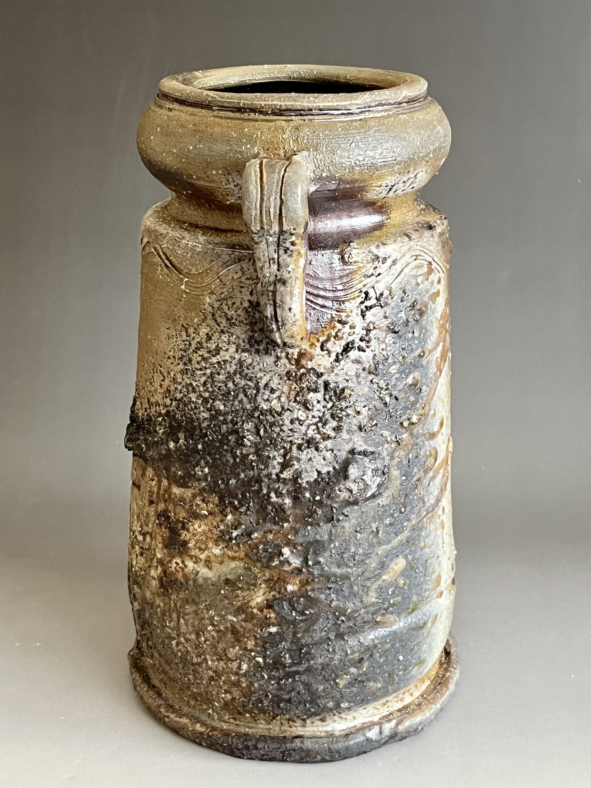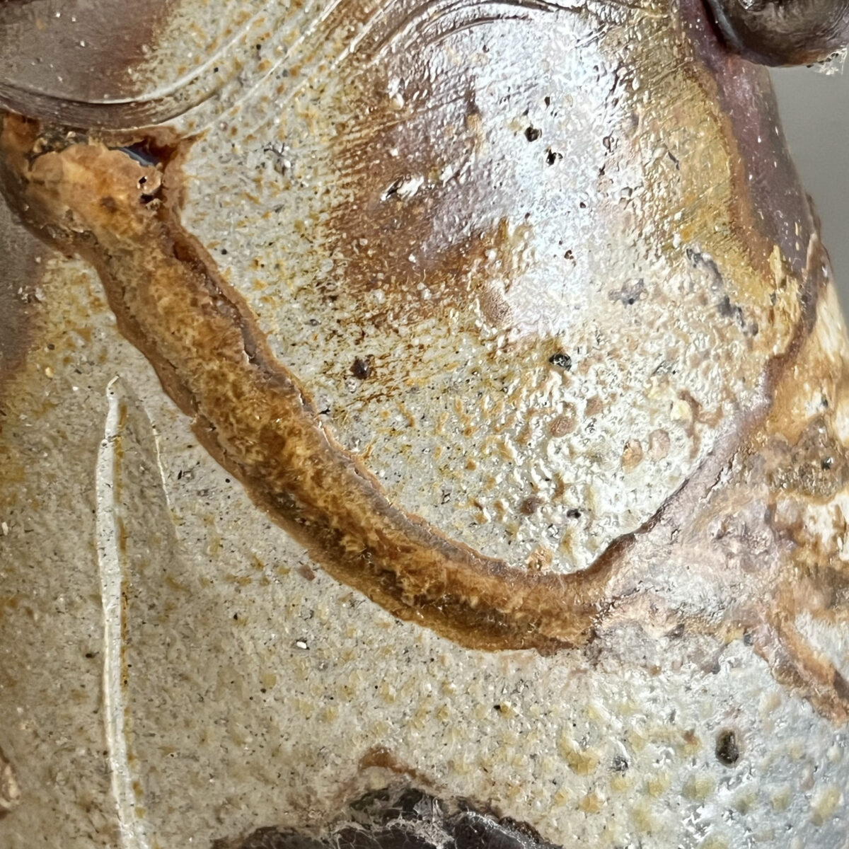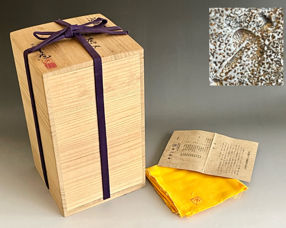 西川政美 (師 人間国宝 金重陶陽) 備前 窯変 胡麻 花入 耳付 花生 花瓶 花器 茶道具