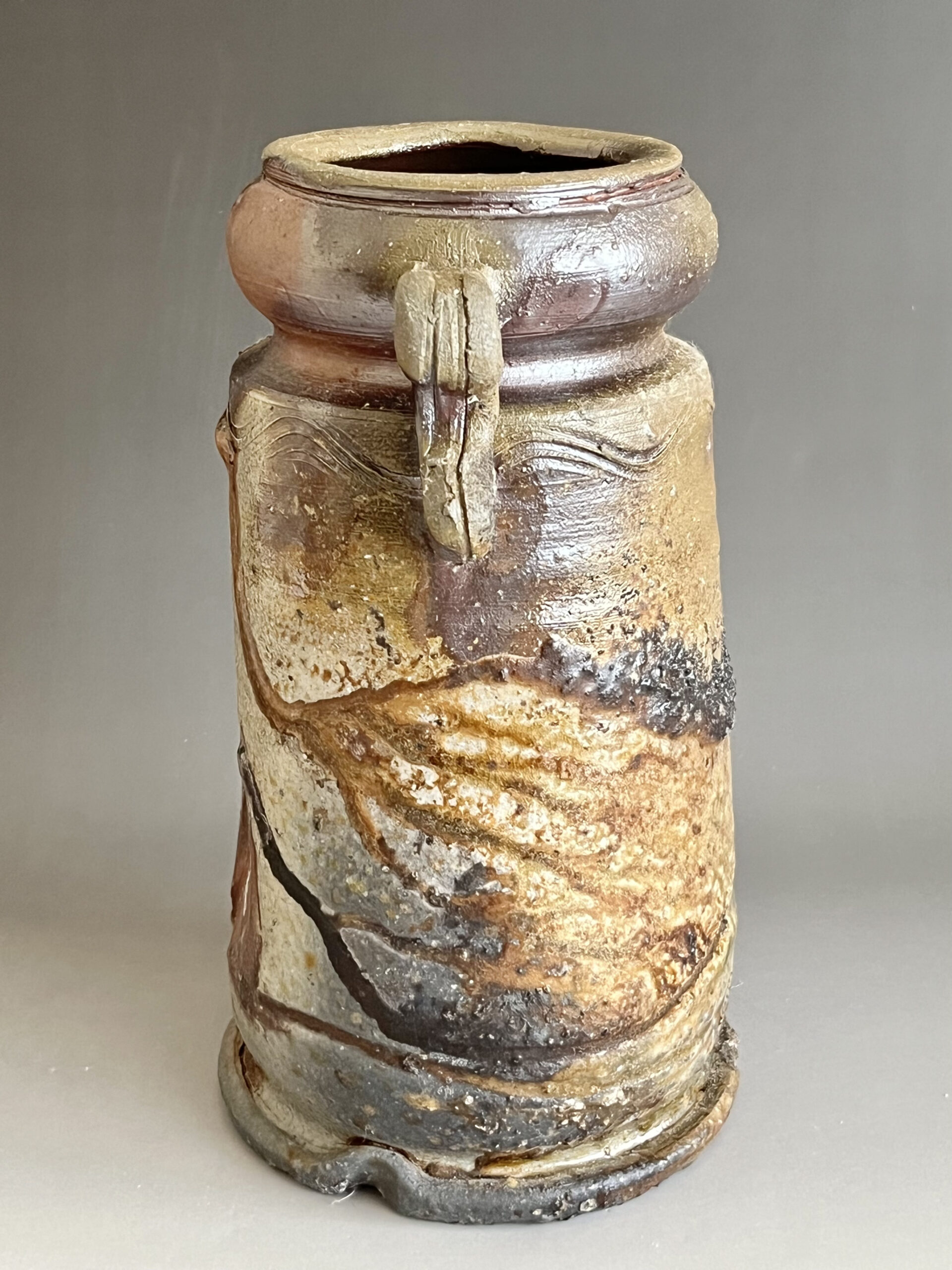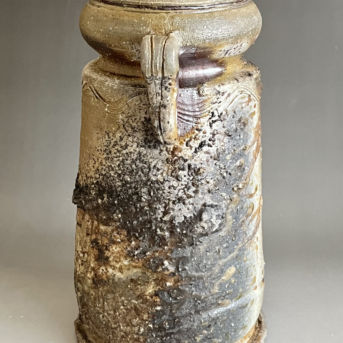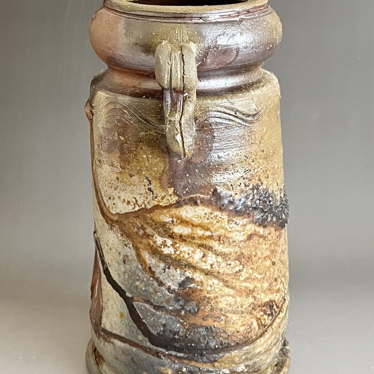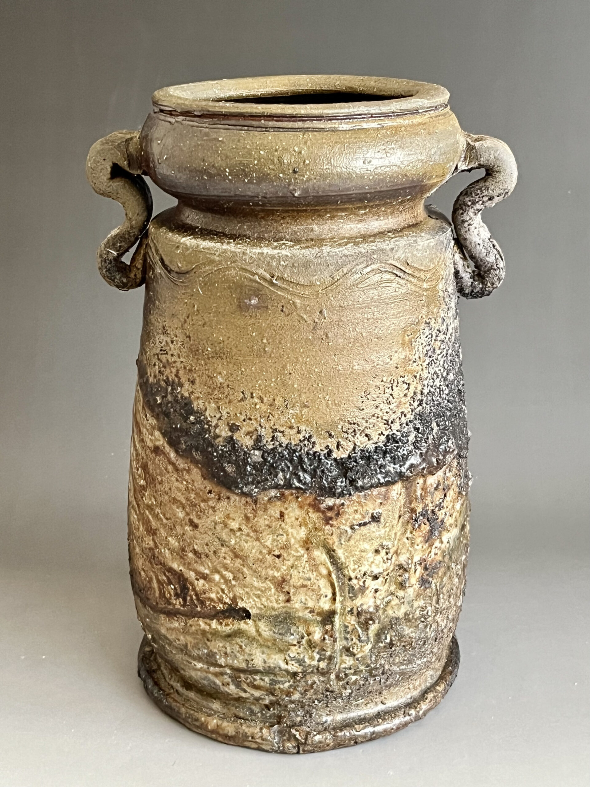 西川政美 (師 人間国宝 金重陶陽) 備前 窯変 胡麻 花入 耳付 花生 花瓶 花器 茶道具