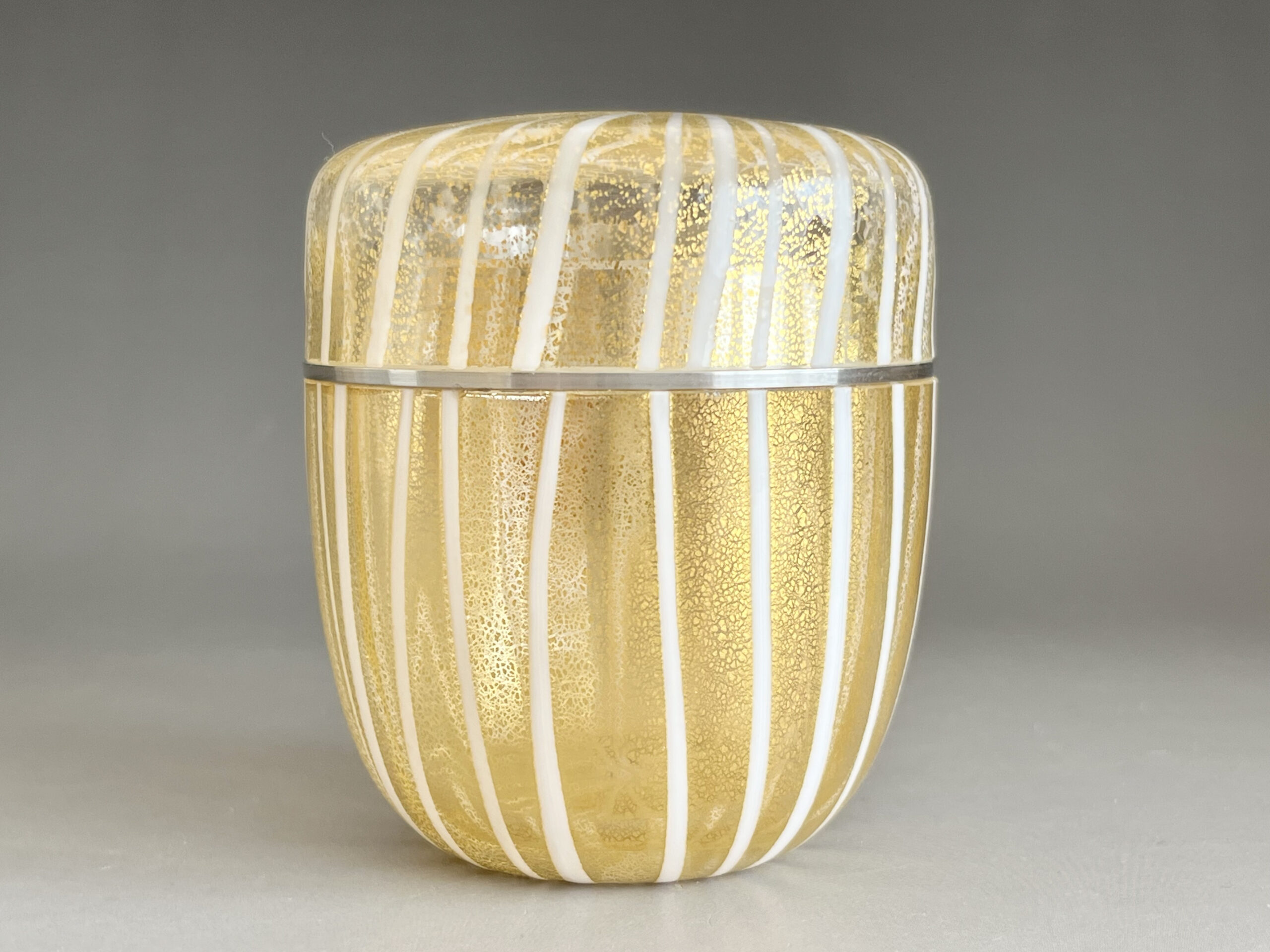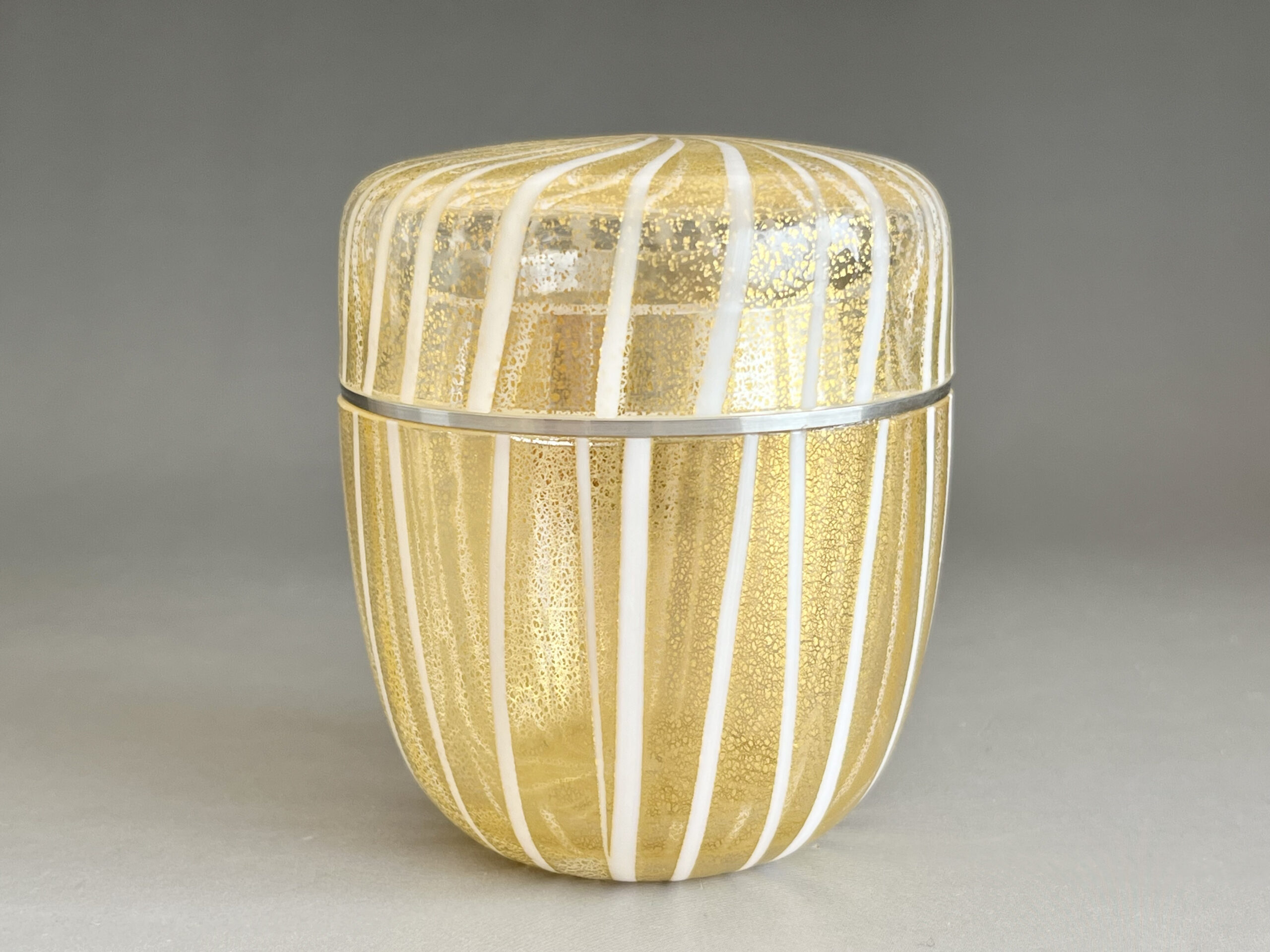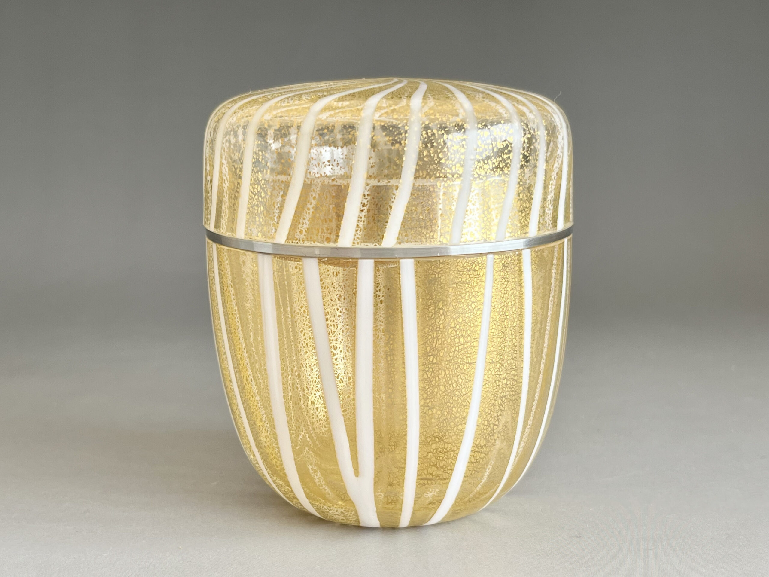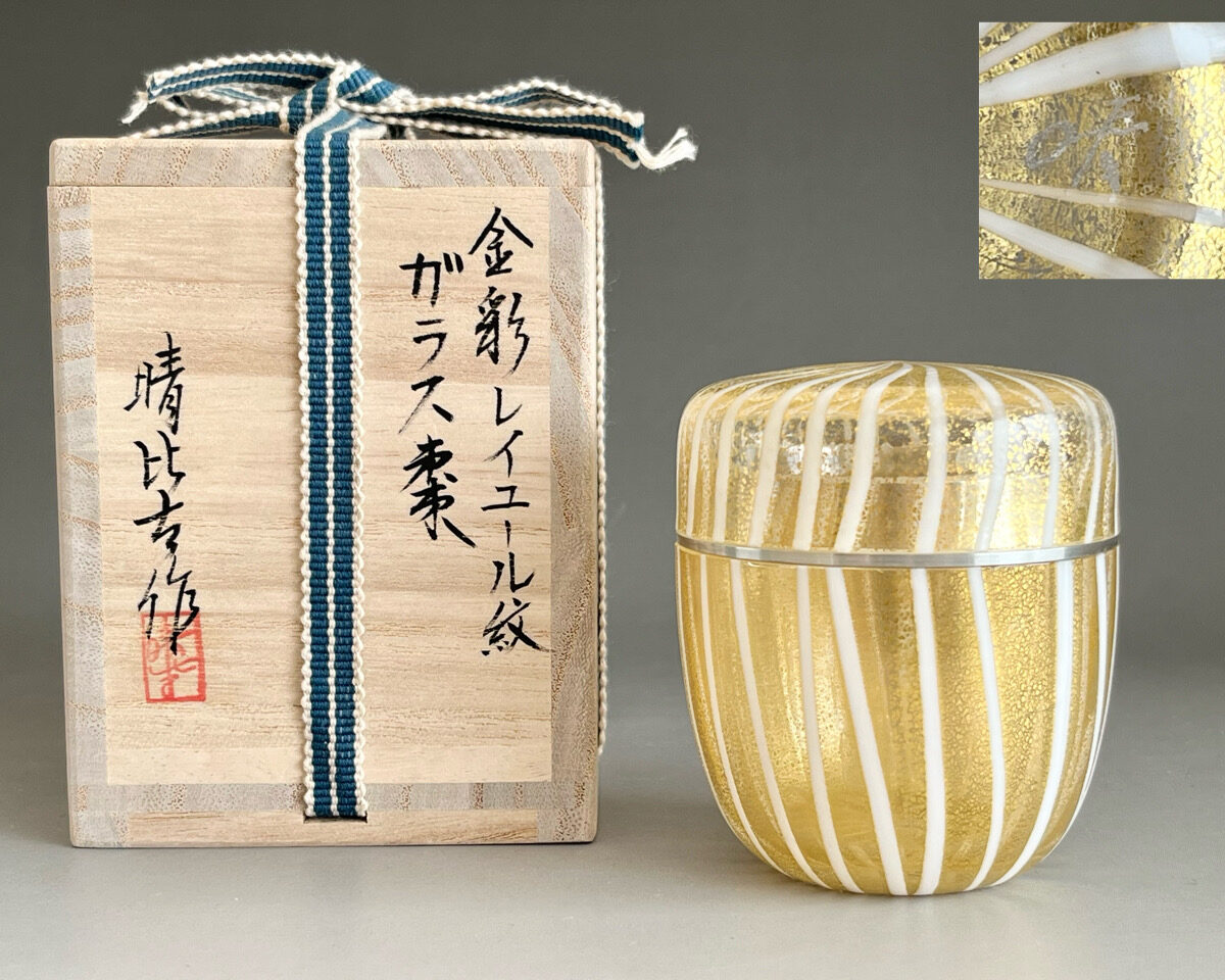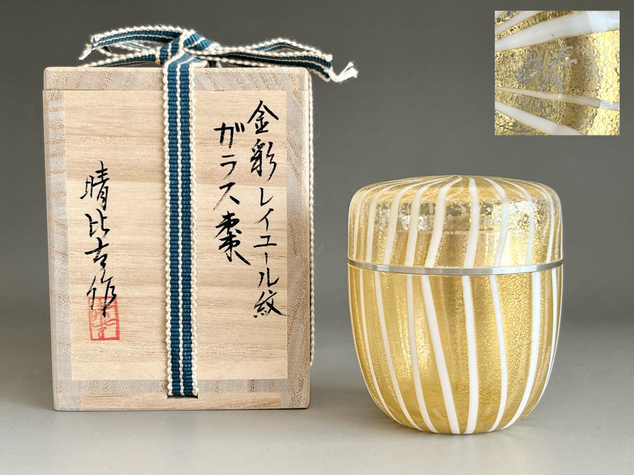 ● 新倉晴比古 金彩 レイユール紋 ガラス棗 硝子工芸 茶器 茶道具