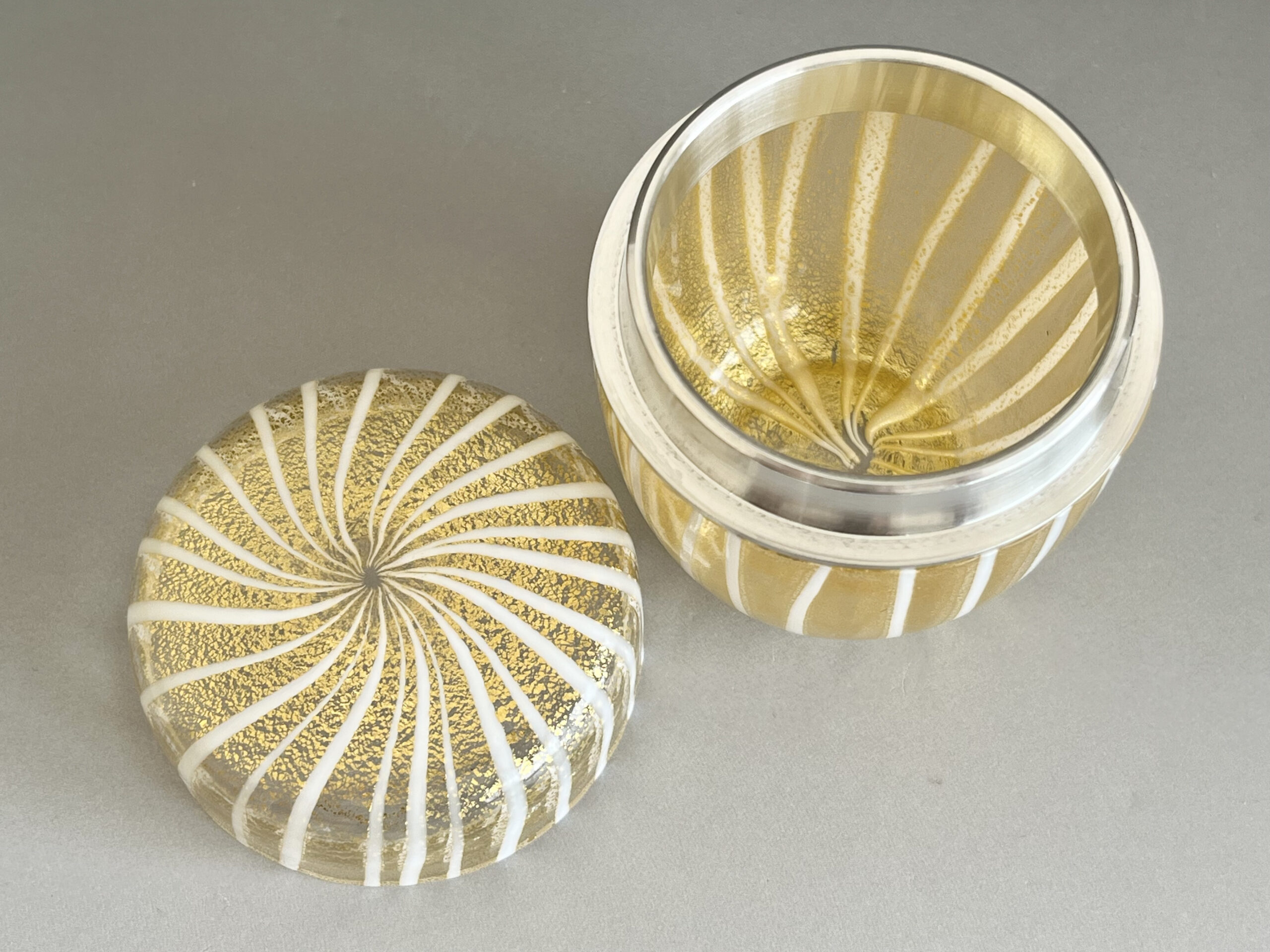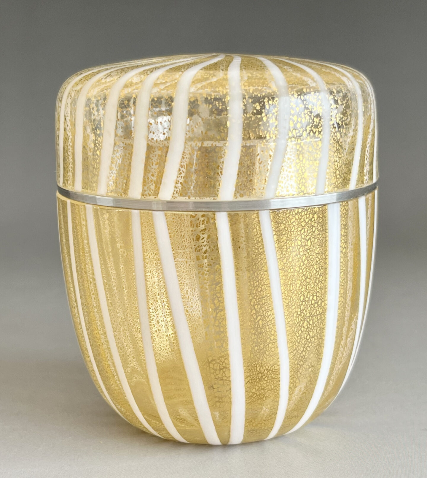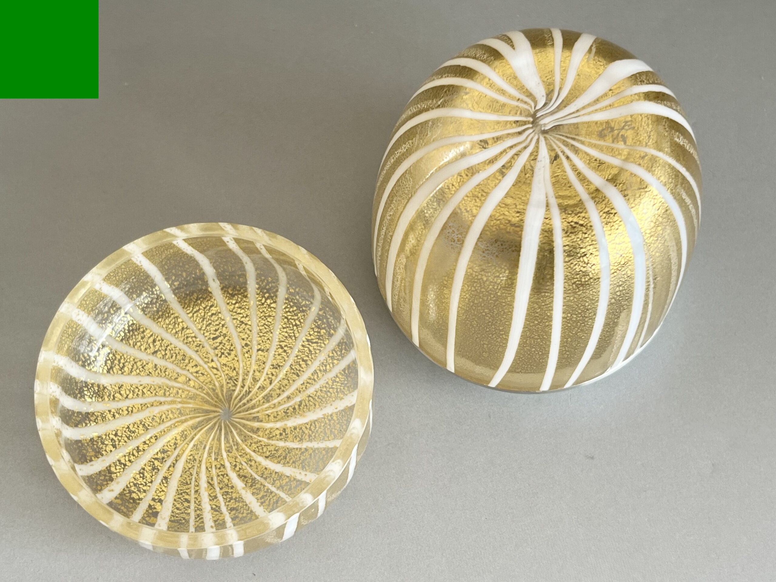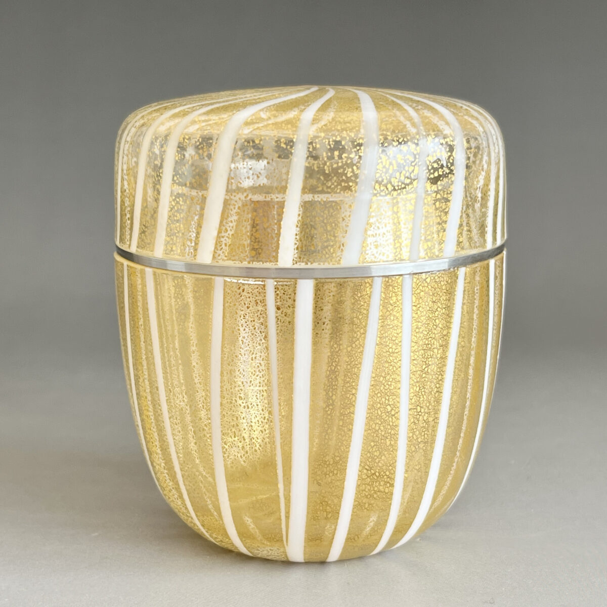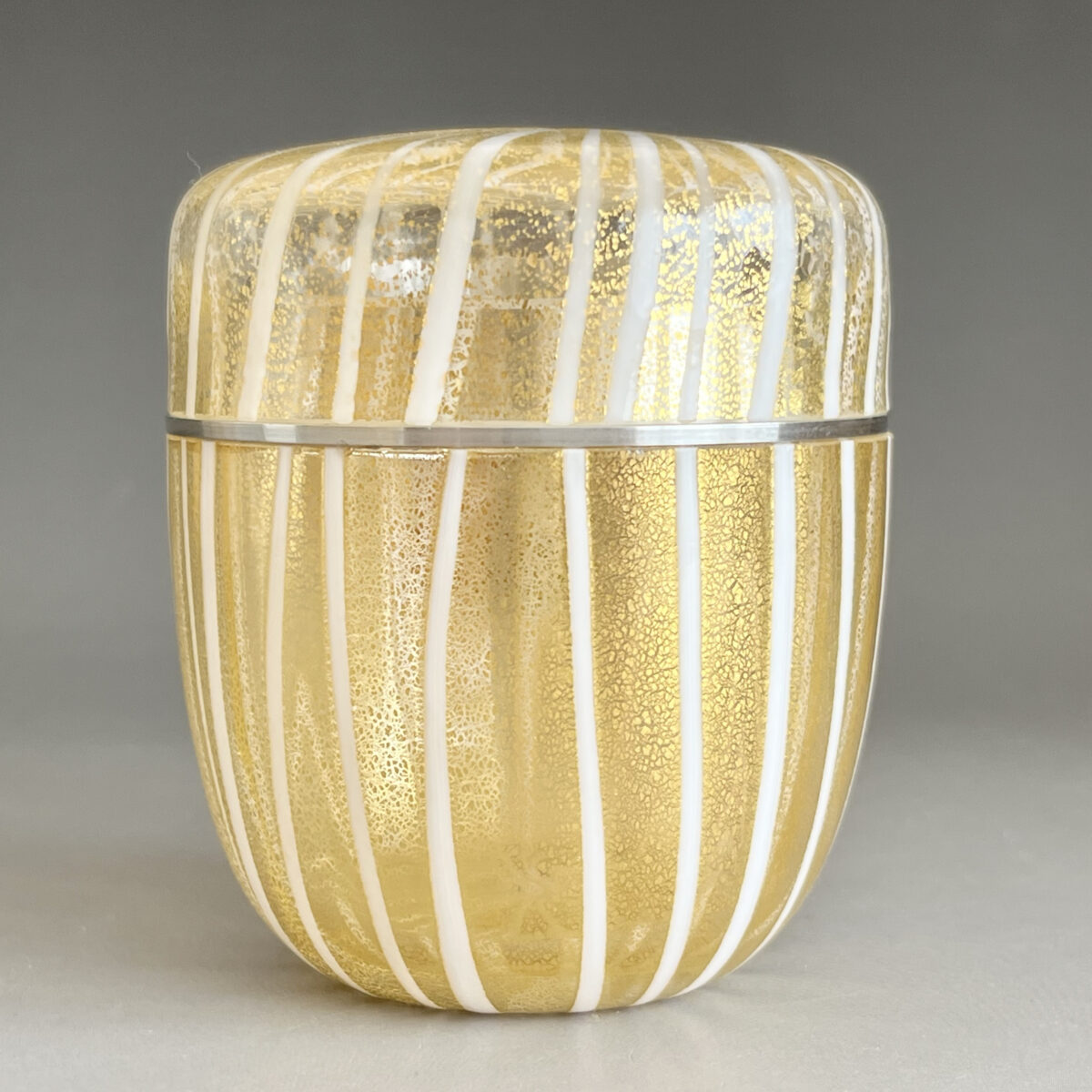 ● 新倉晴比古 金彩 レイユール紋 ガラス棗 硝子工芸 茶器 茶道具