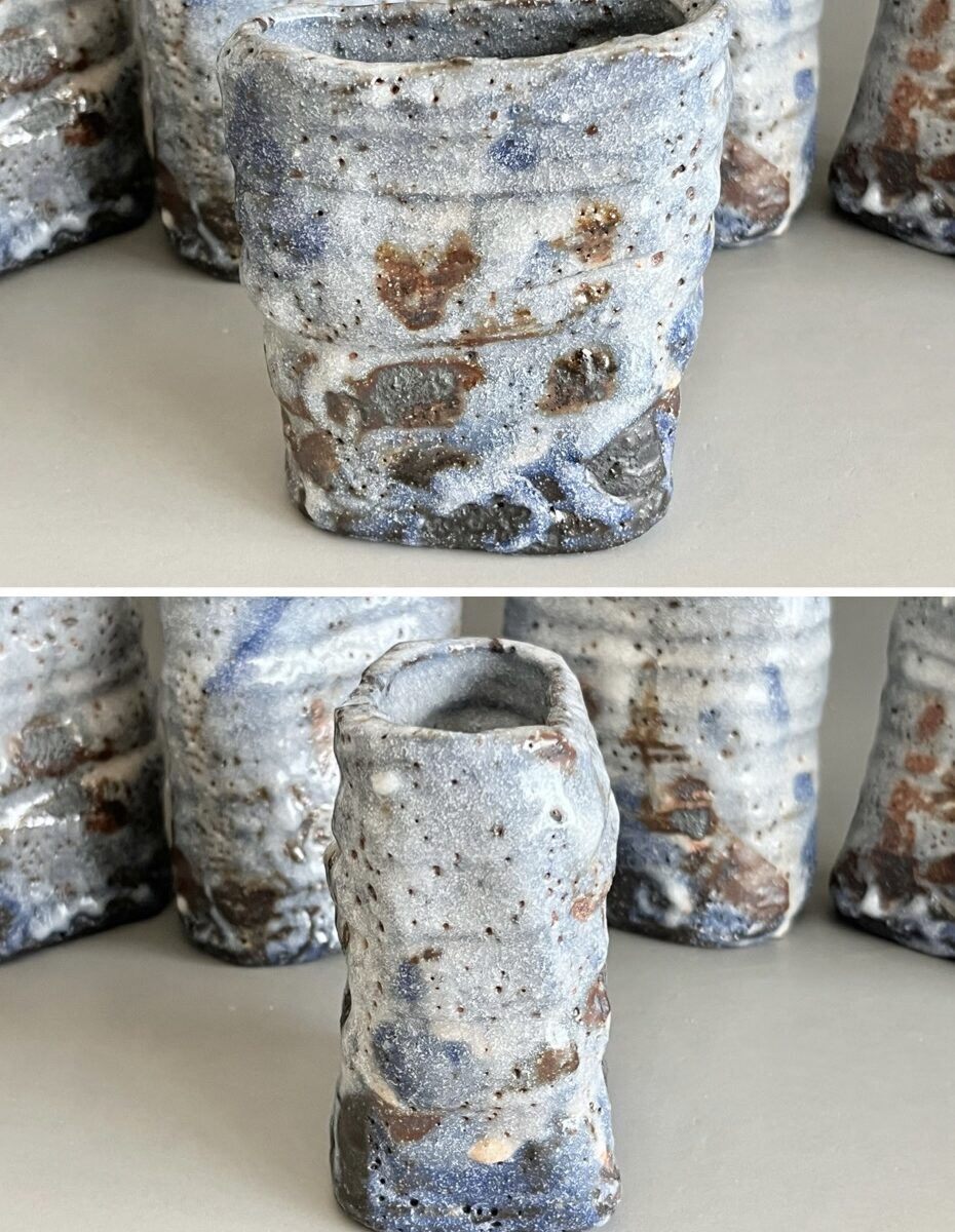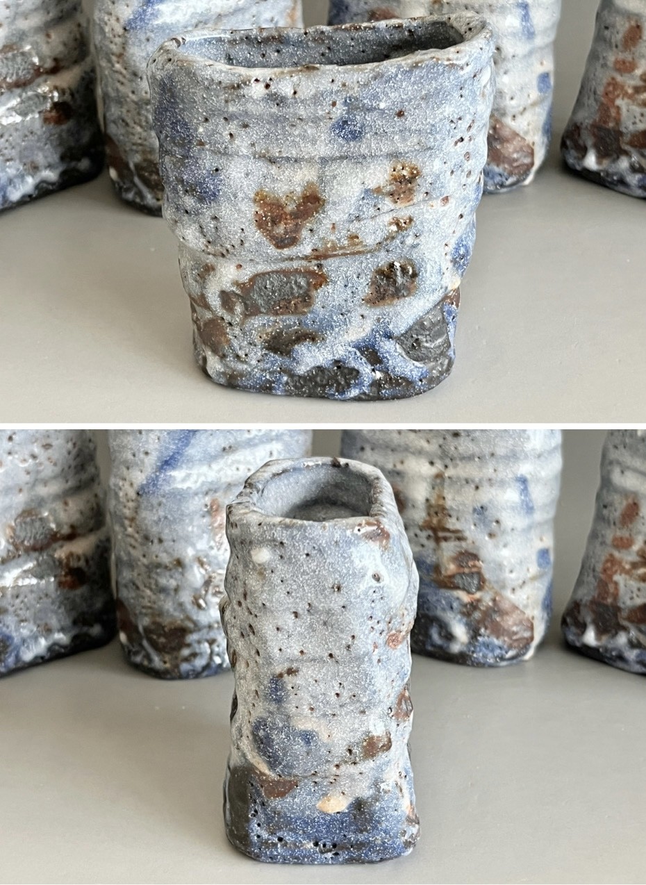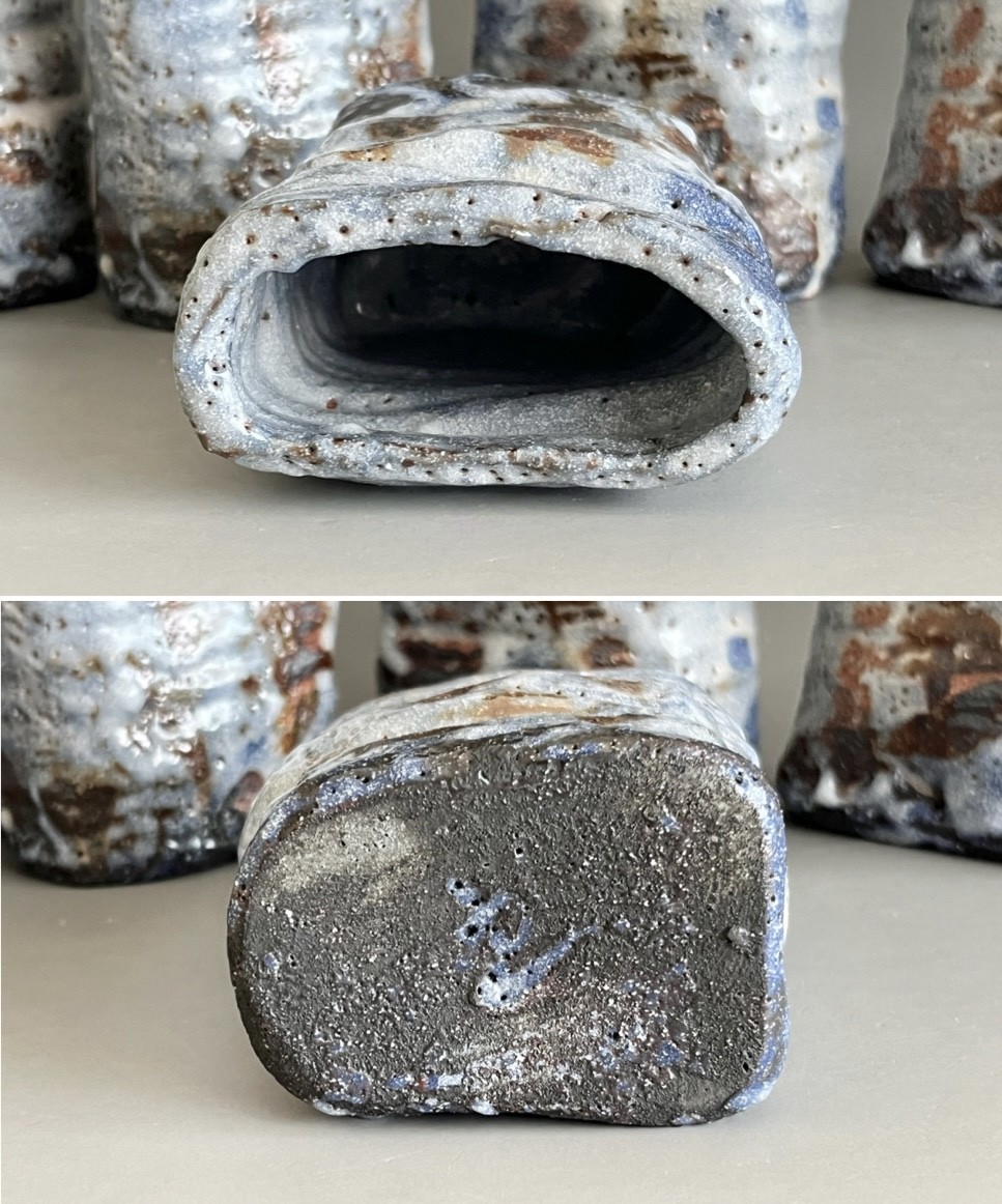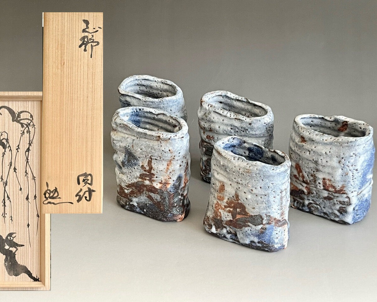鈴木五郎さんの作品のなかでも、青みがかった志野、更にこのような形の向付はあまり見たことがありません。この機会にぜひ。