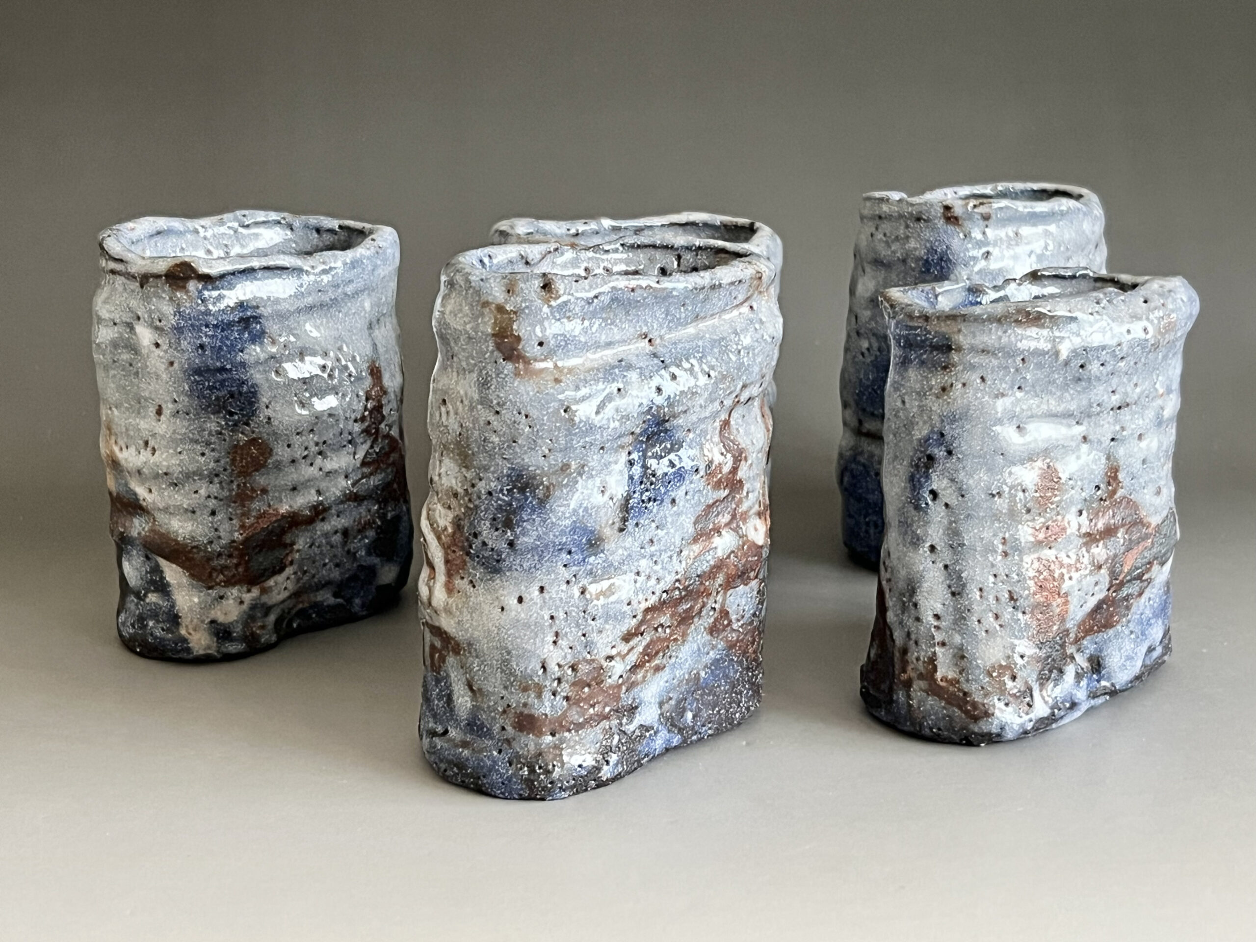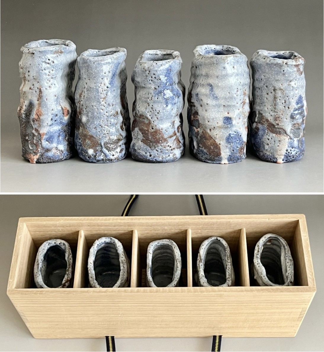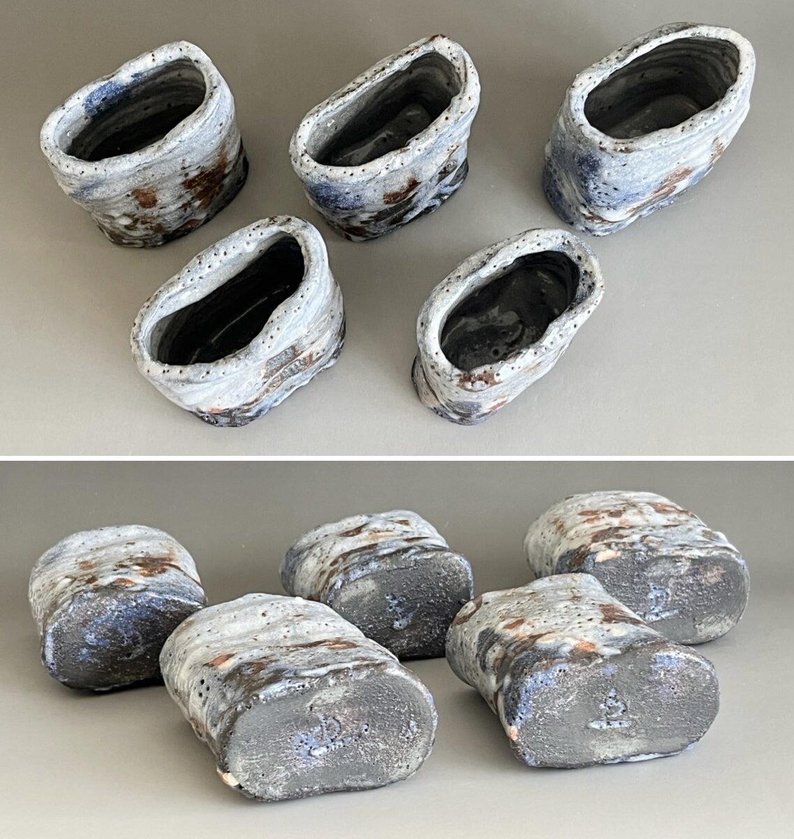 鈴木五郎さんの作品のなかでも、青みがかった志野、更にこのような形の向付はあまり見たことがありません。この機会にぜひ。