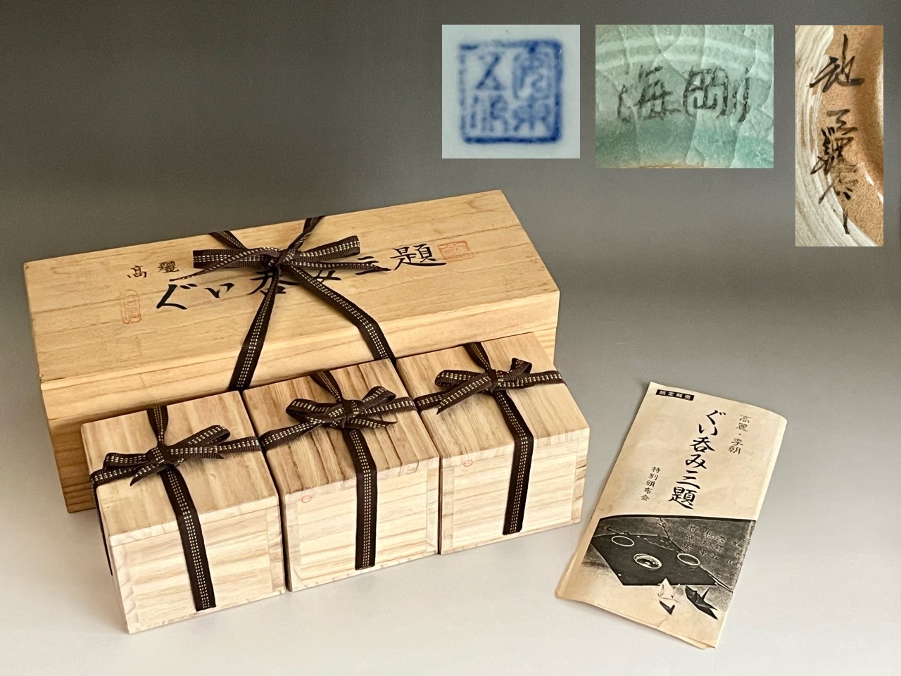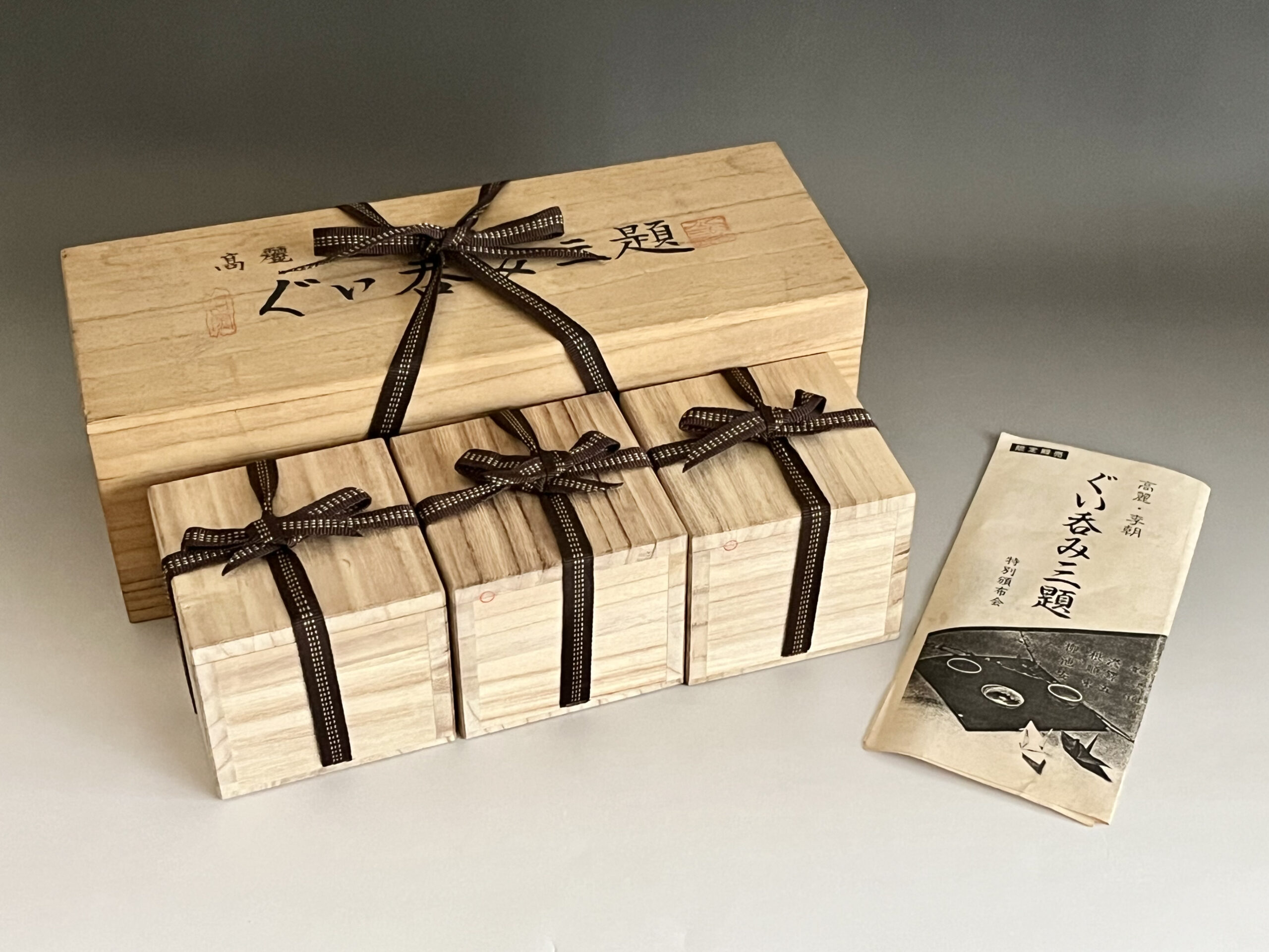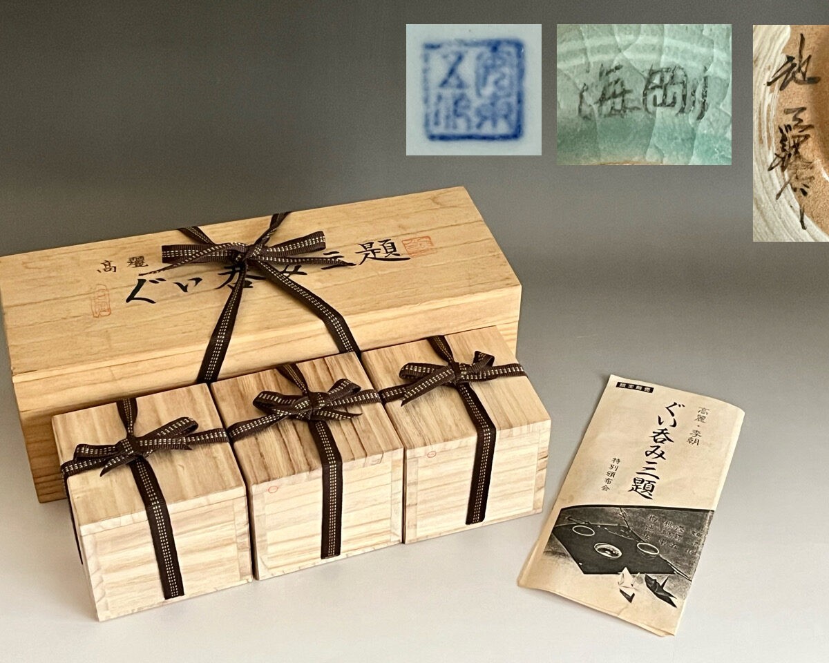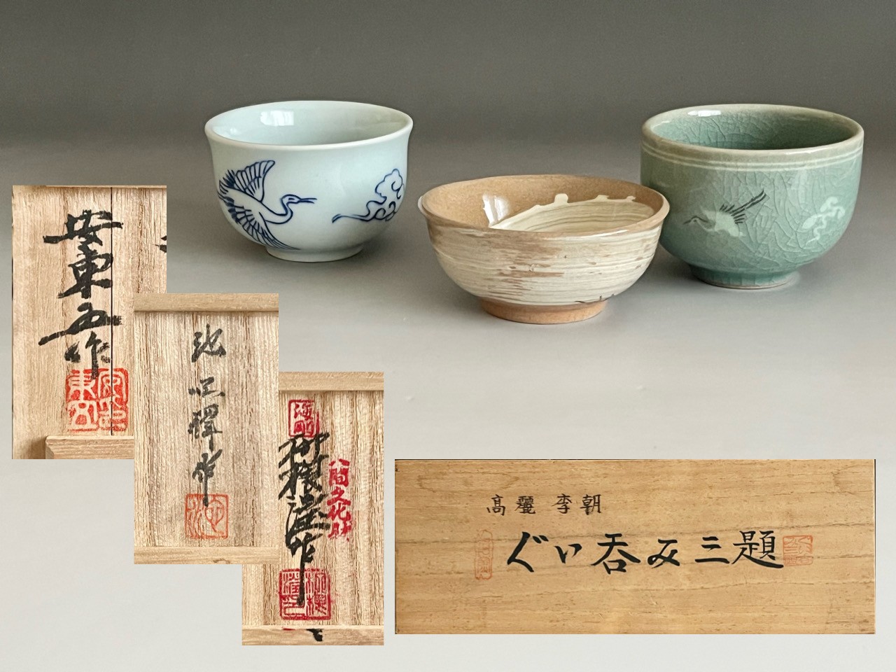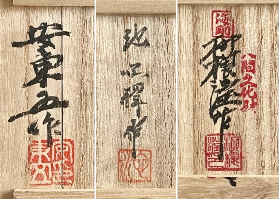 - 左から共箱に『安東五 池順鐸 柳根瀅』の字がございます
