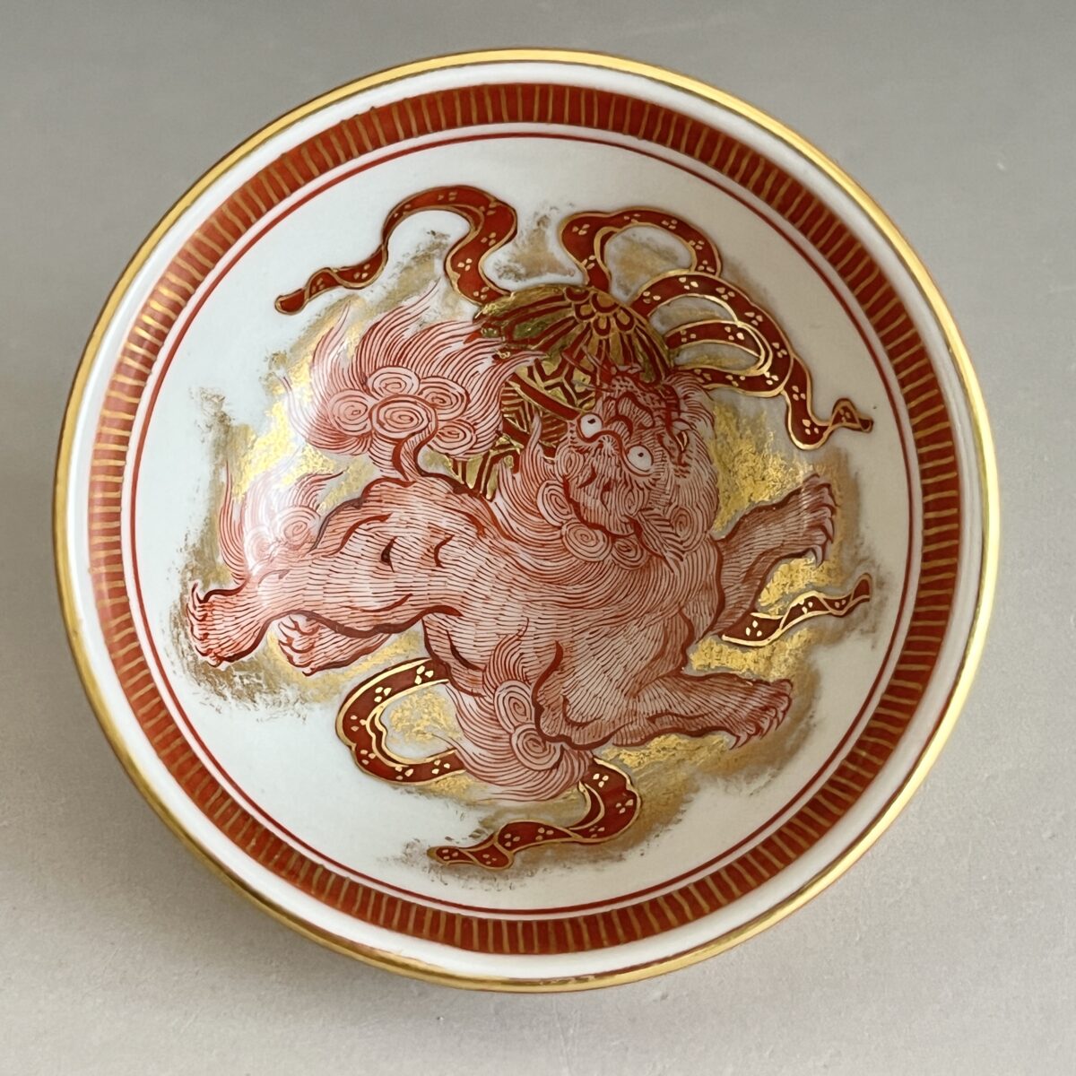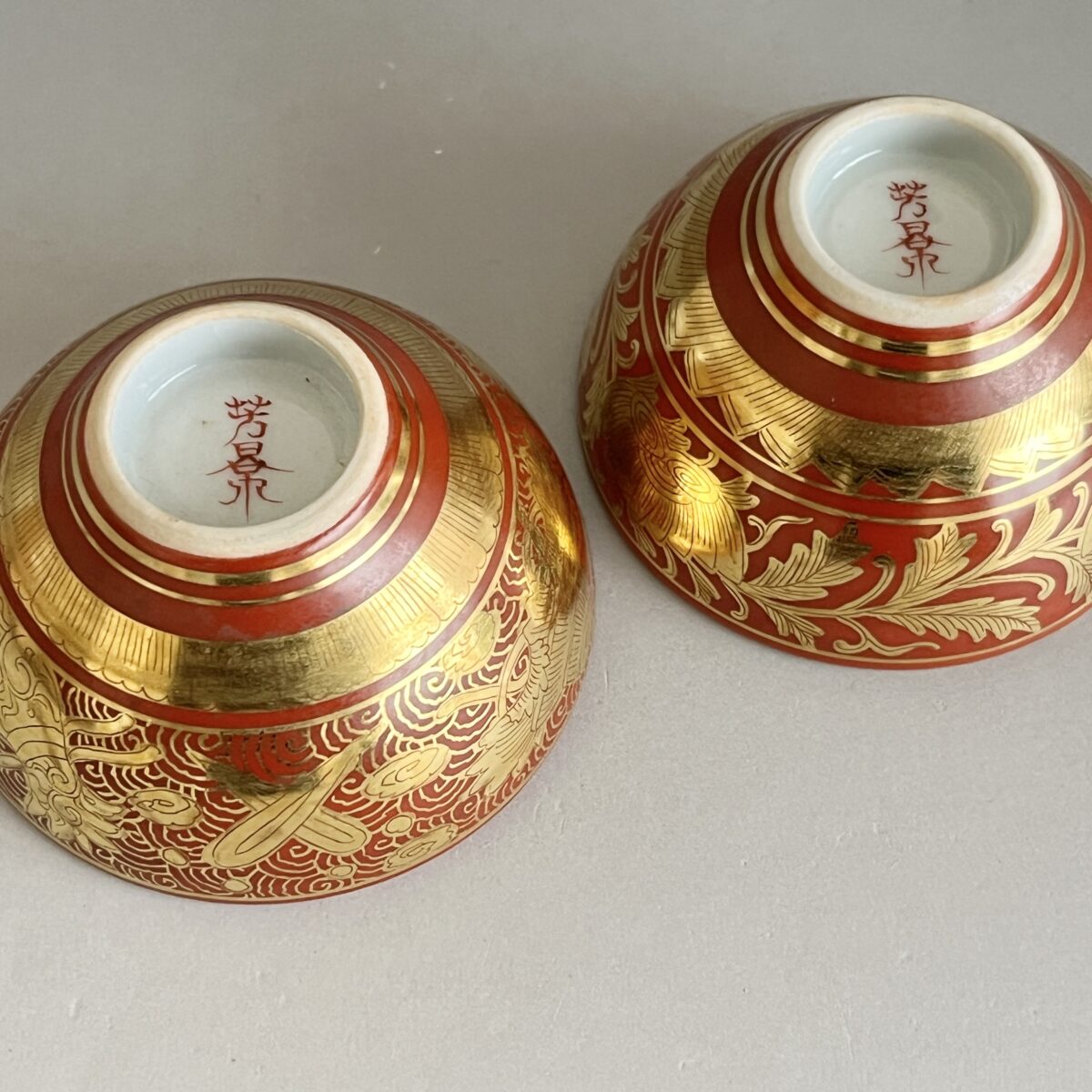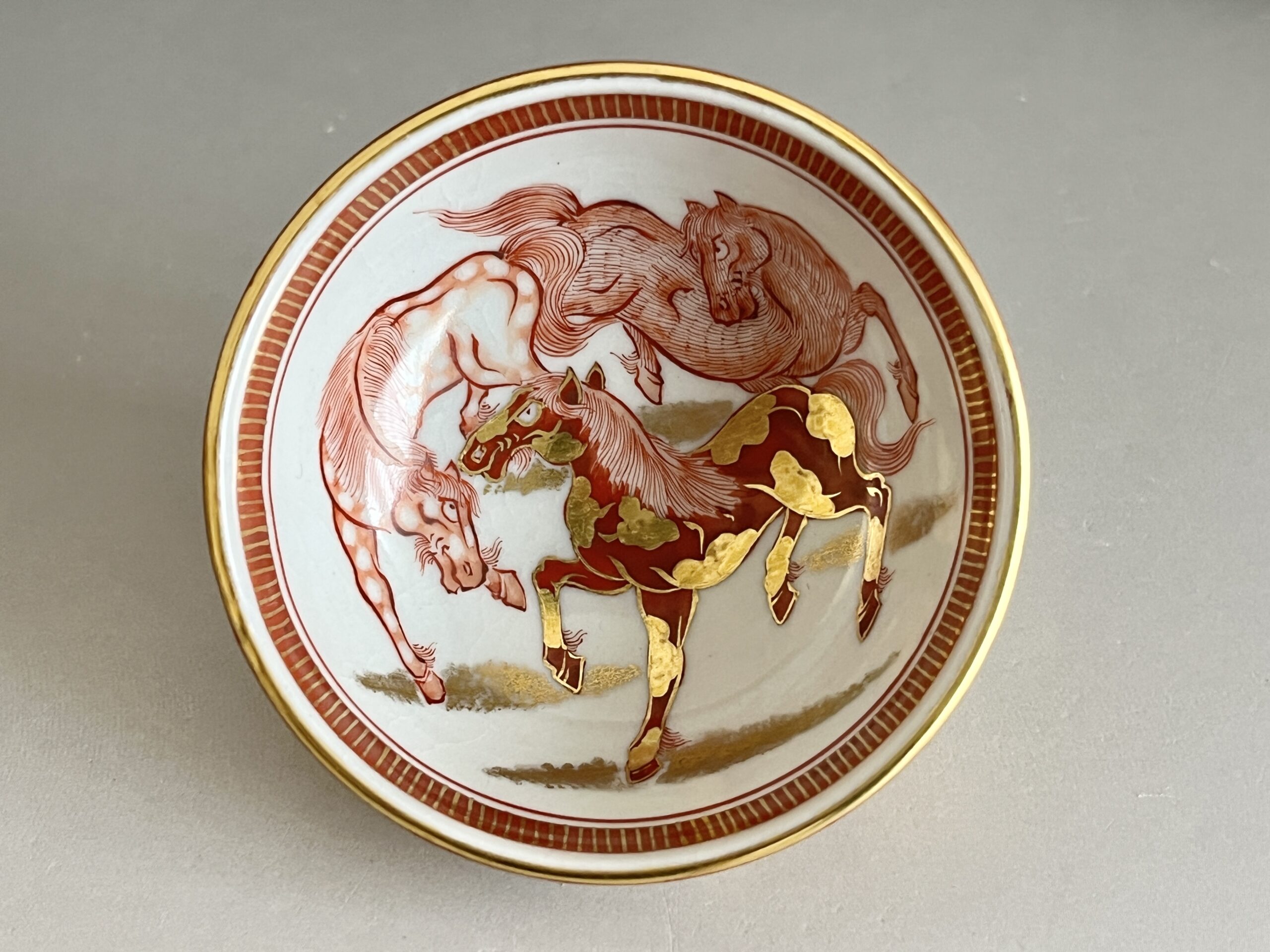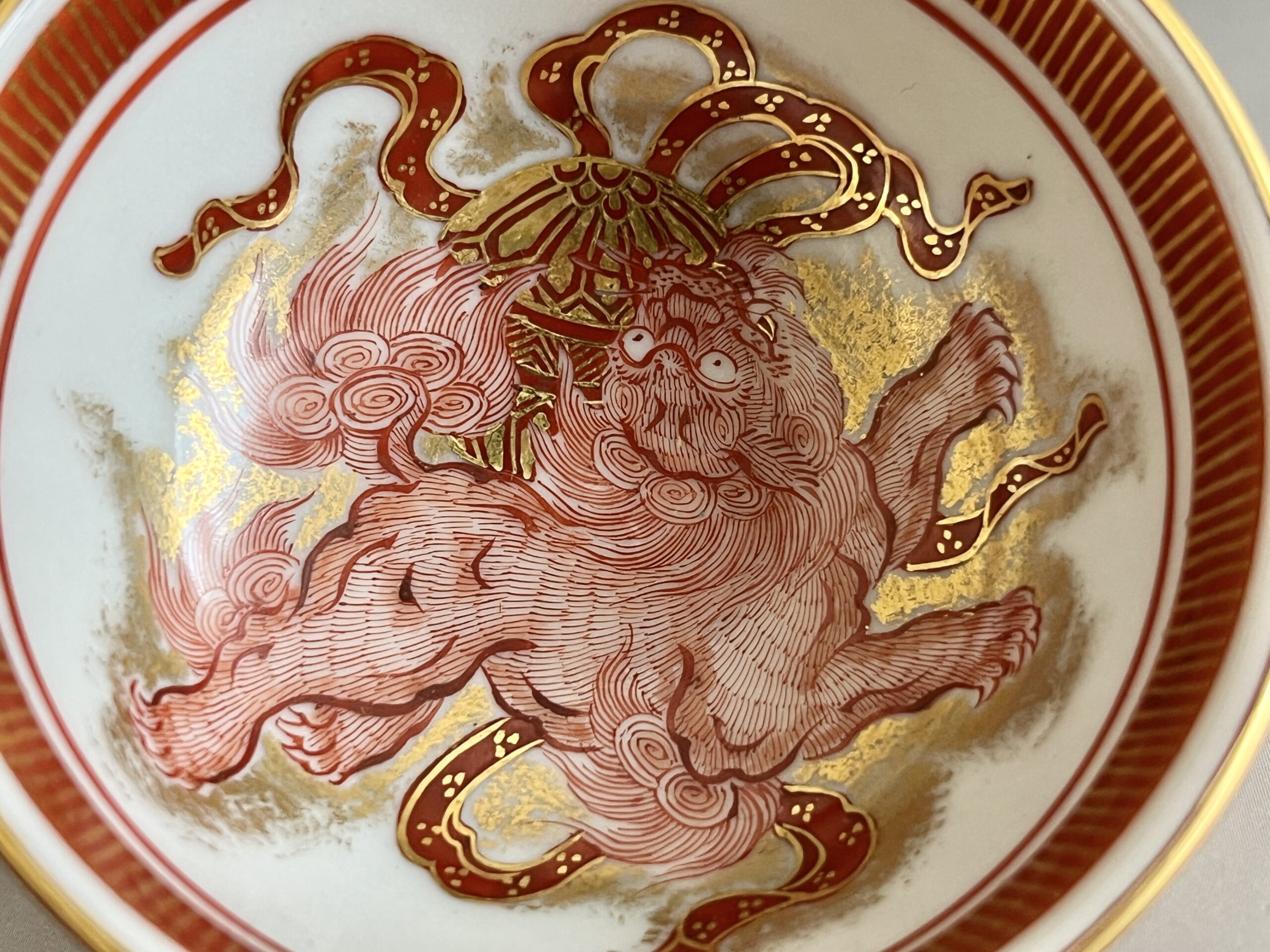 ⚫︎ 相上芳景 九谷焼 赤絵 金襴手 酒盃 一対 馬 獅子 ぐい呑 酒器 二客