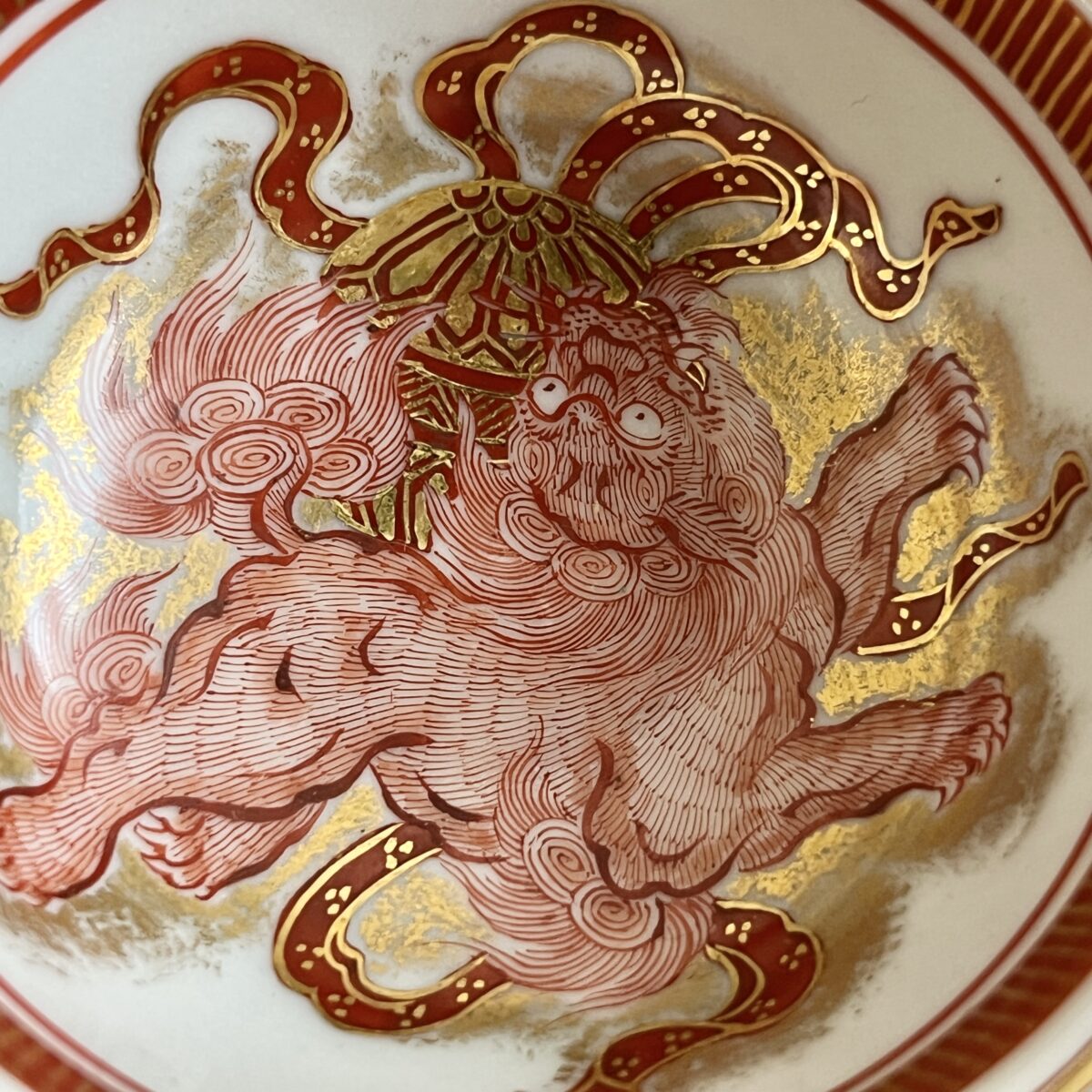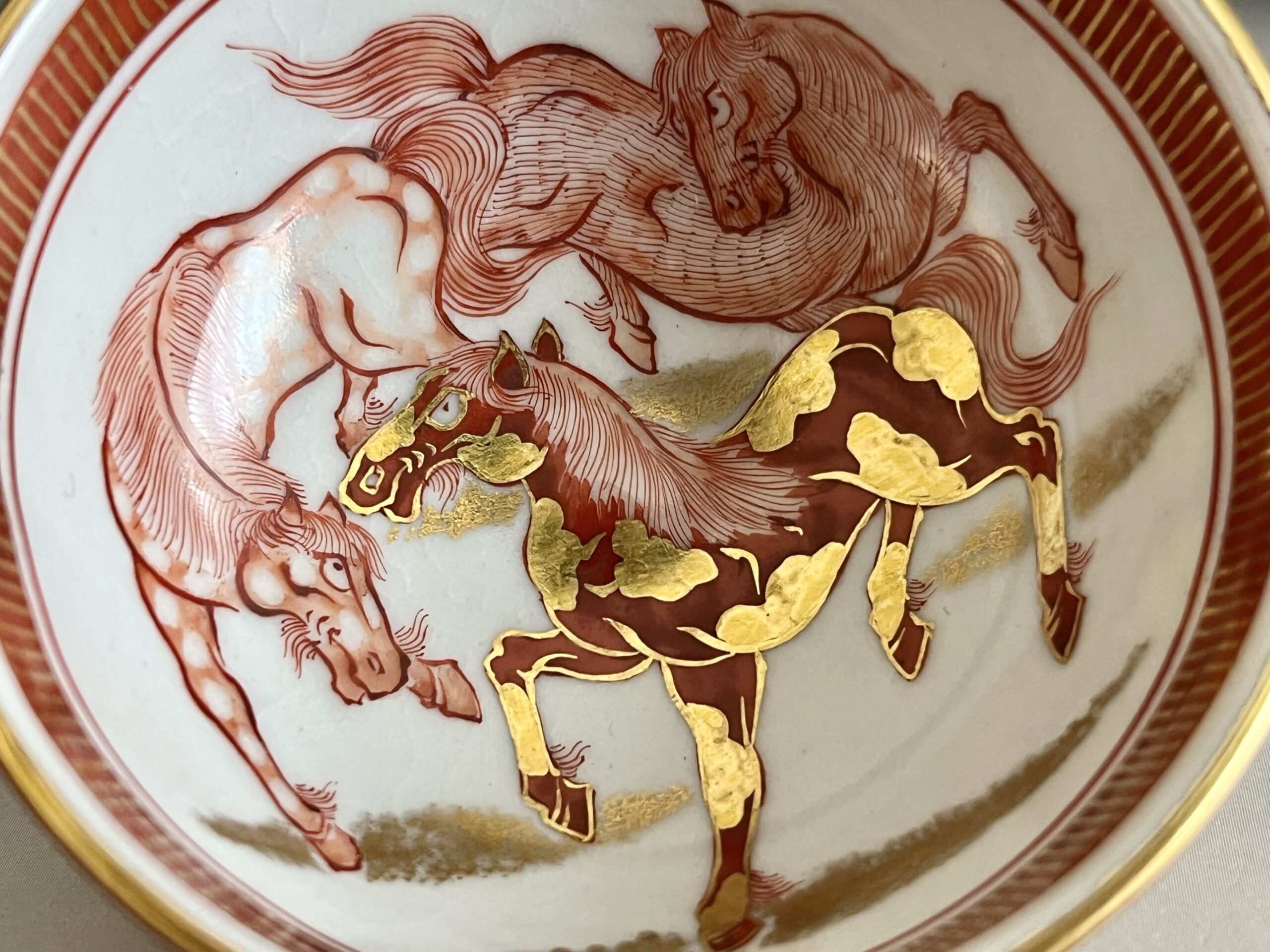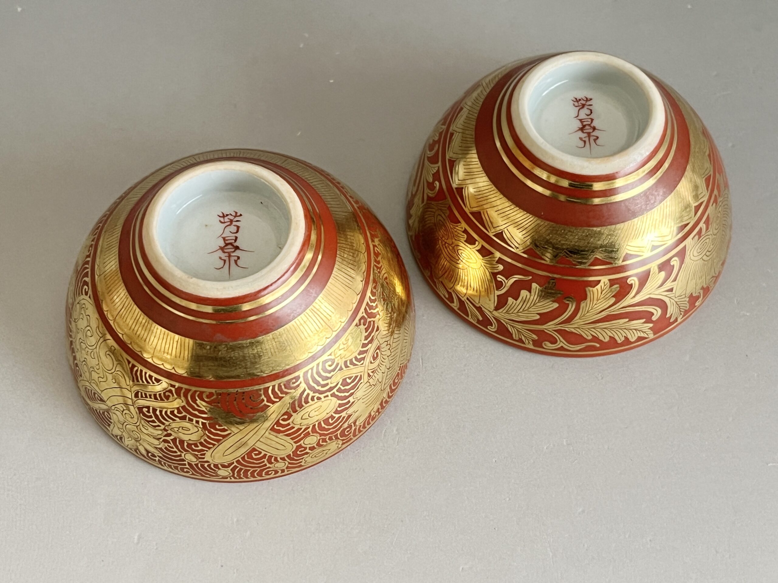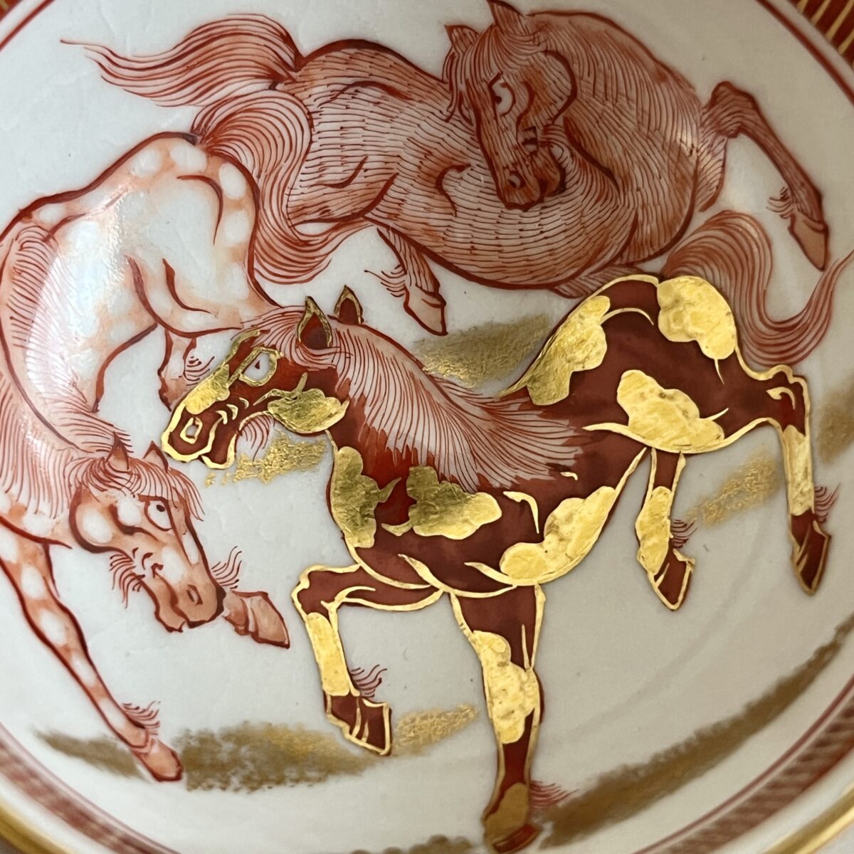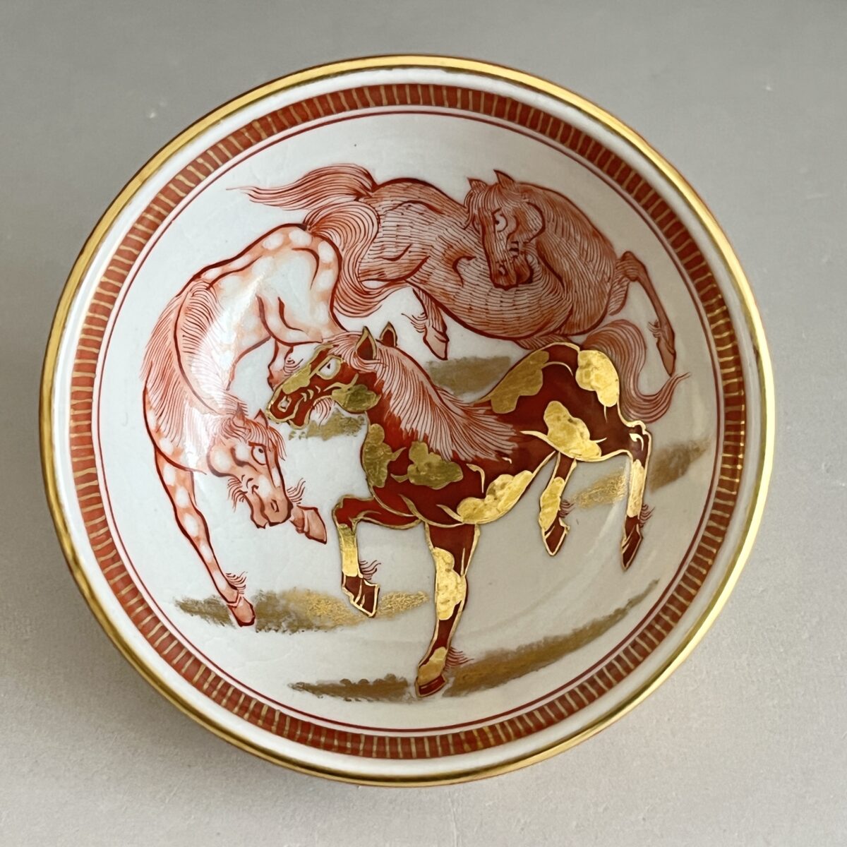 ⚫︎ 相上芳景 九谷焼 赤絵 金襴手 酒盃 一対 馬 獅子 ぐい呑 酒器 二客