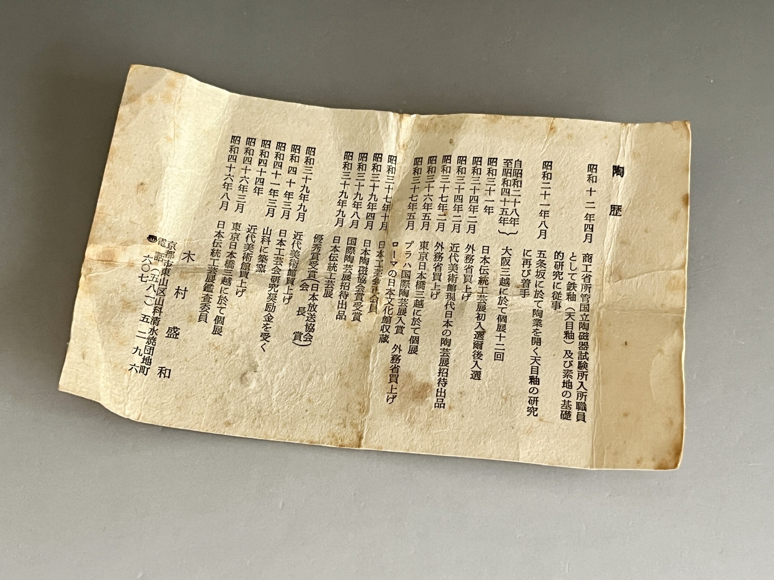 京都の陶芸家 木村盛和 氏の作品です 特筆すべき目立つ割れ、カケ、傷はございません