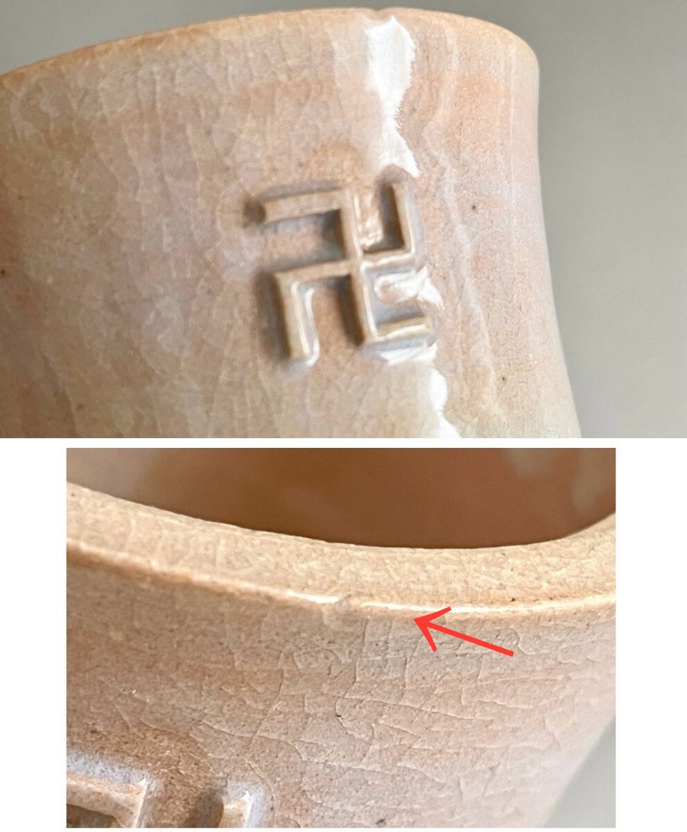 正面口縁、カケのように見える箇所がございますが、