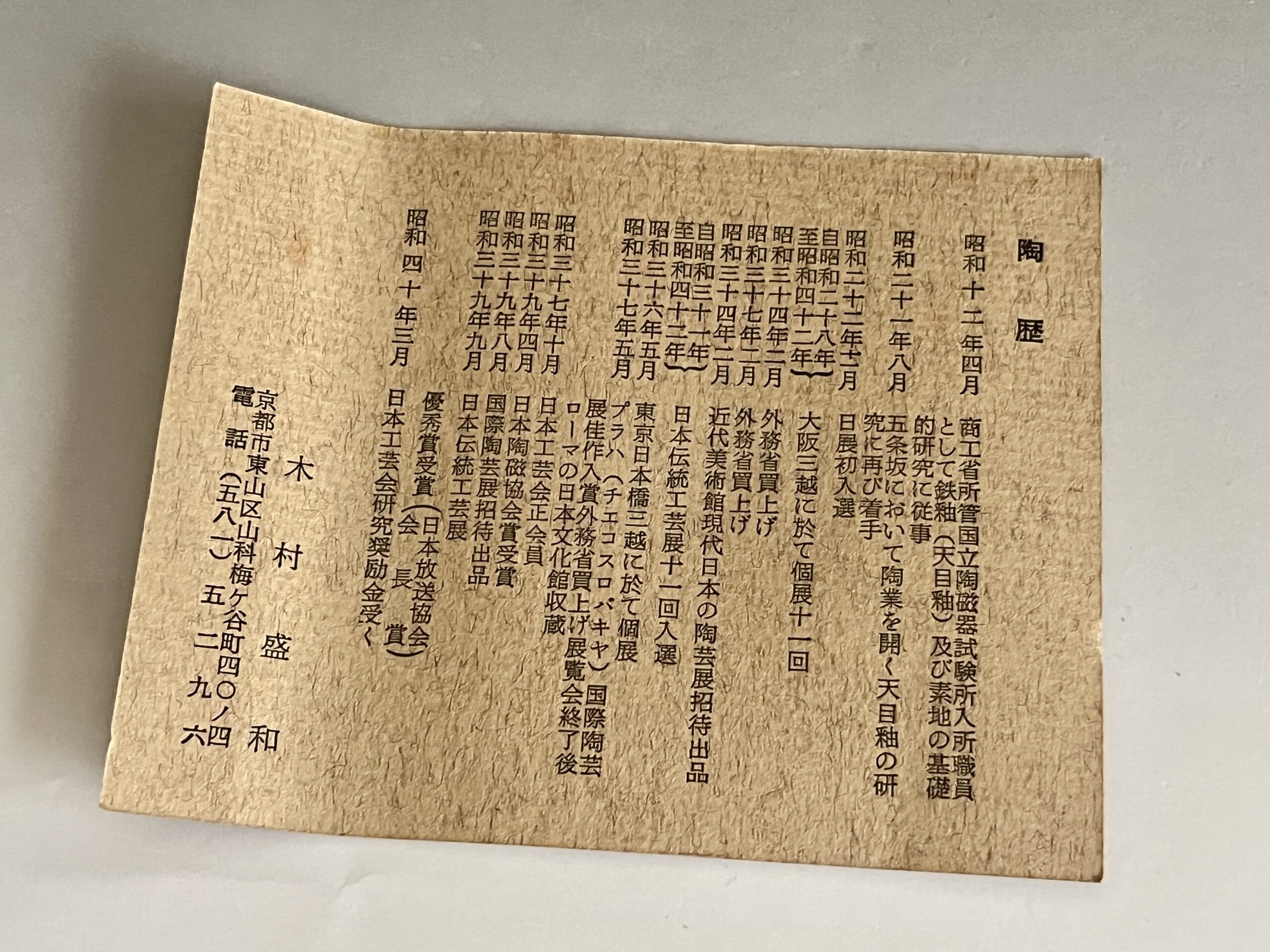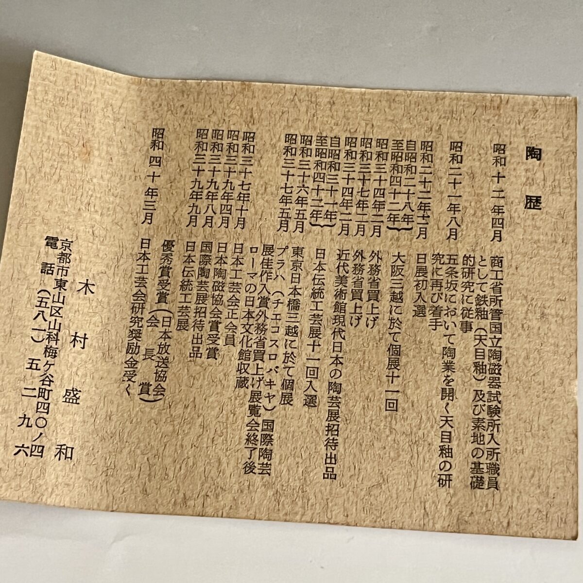 京都の陶芸家 木村盛和 氏の作品です 特筆すべき目立つ割れ、カケ、傷はございません