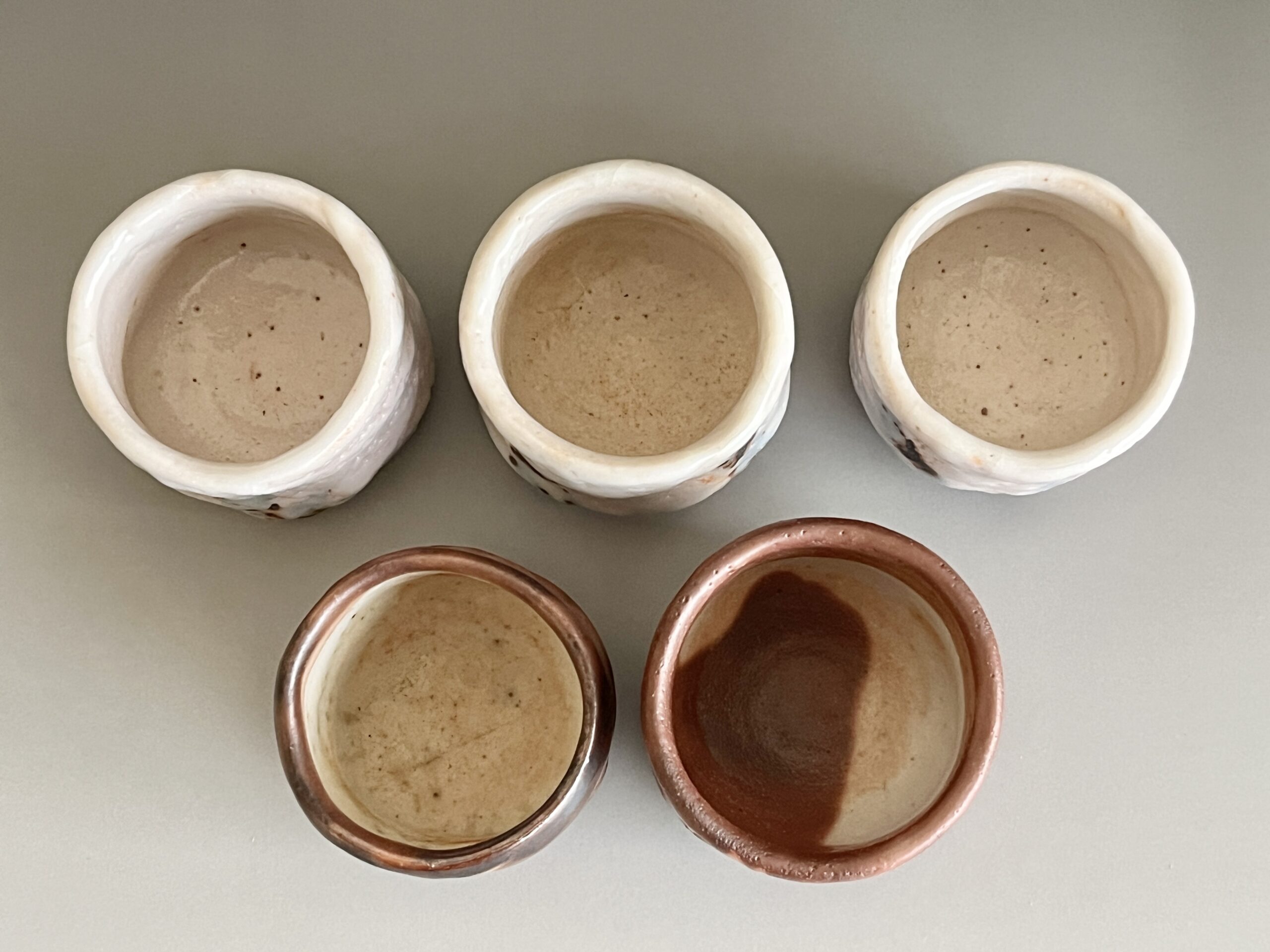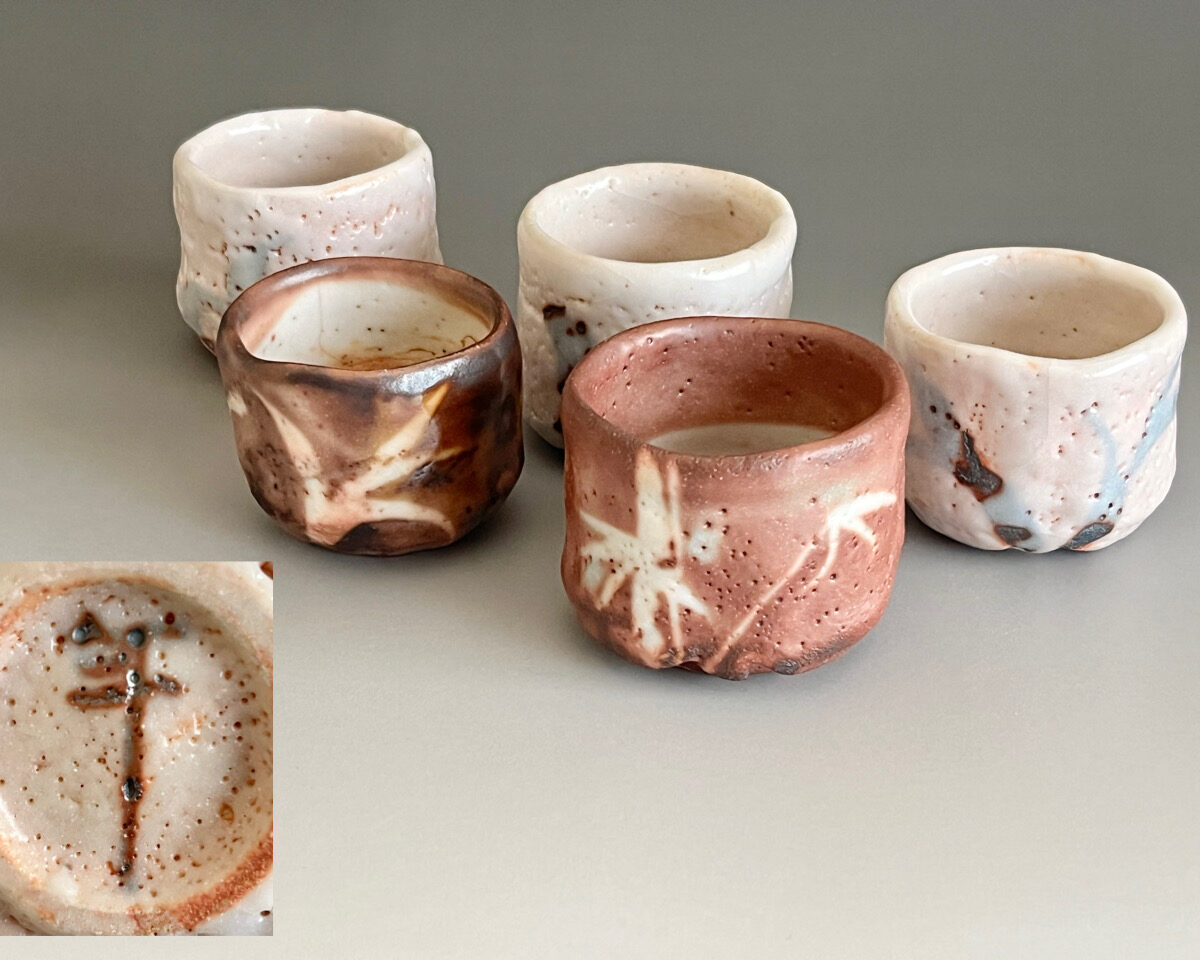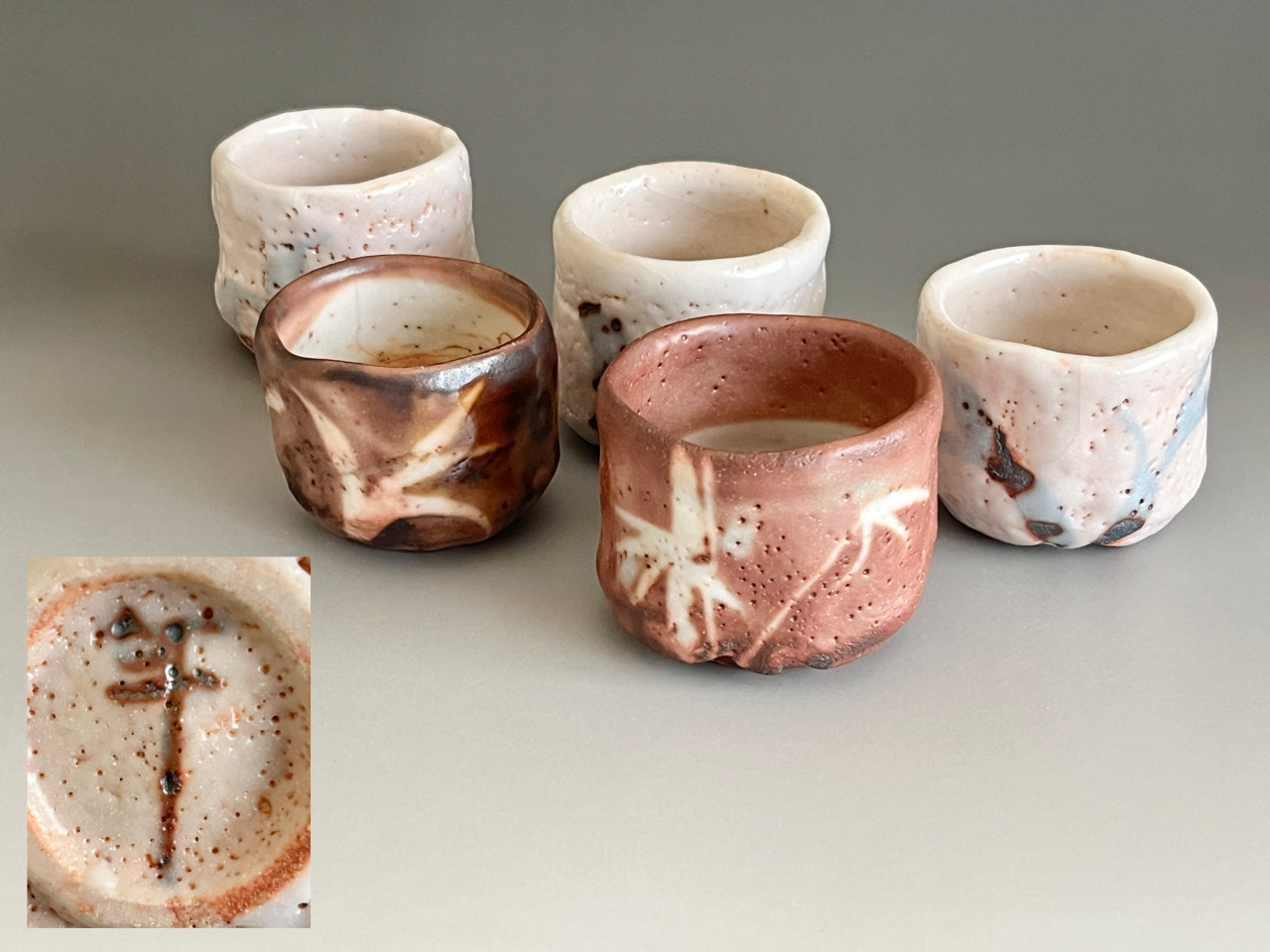 ★ 奥磯栄麓 志野 赤志野 ぐい呑 五客 酒盃 酒器 絵志野の陶印