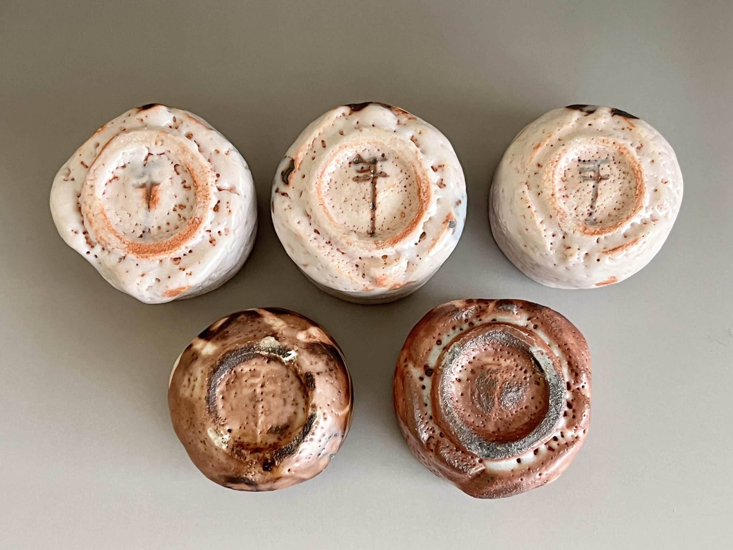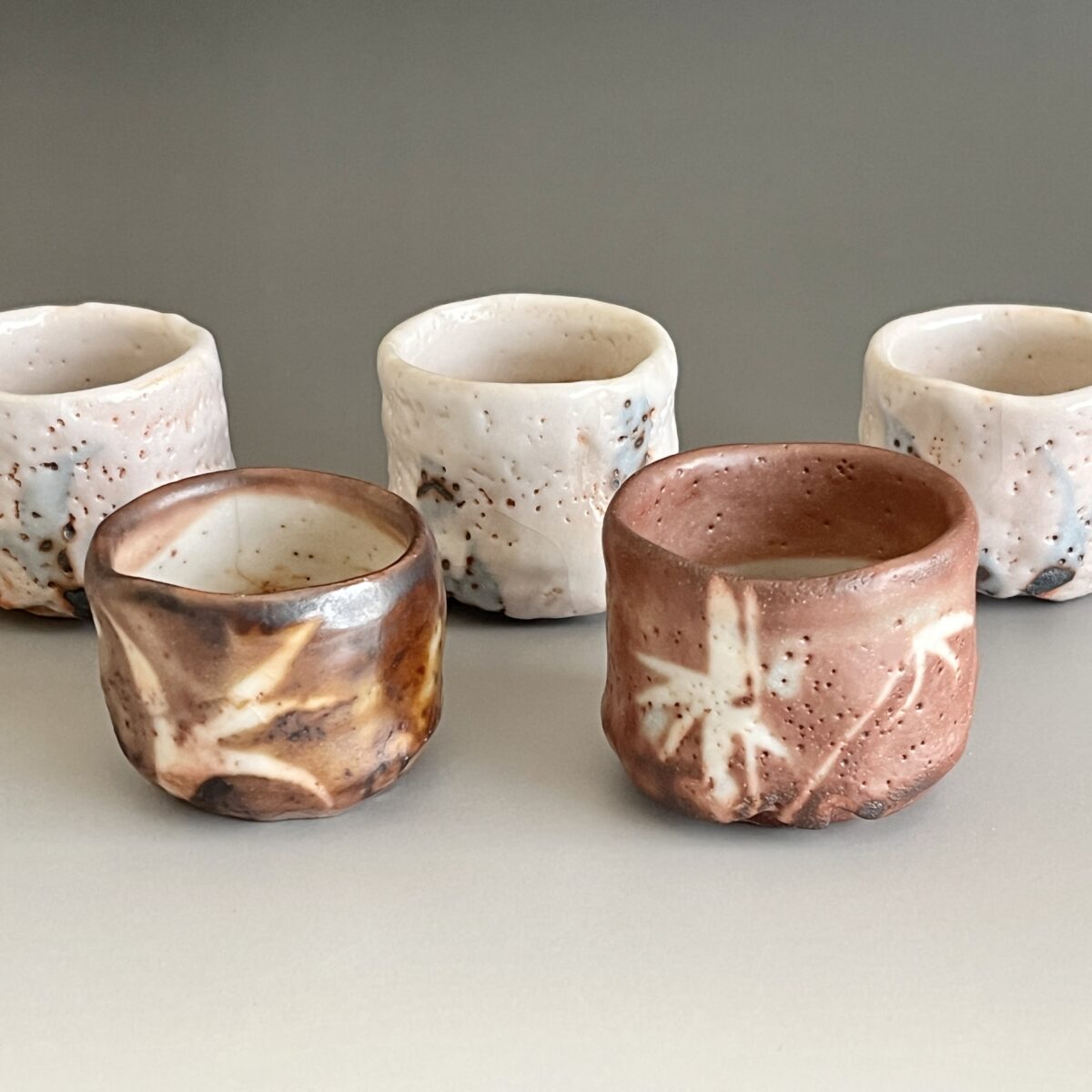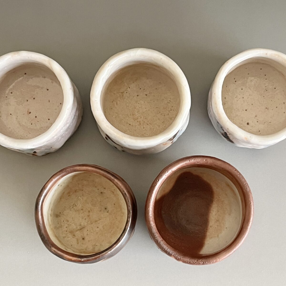 ★ 奥磯栄麓 志野 赤志野 ぐい呑 五客 酒盃 酒器 絵志野の陶印